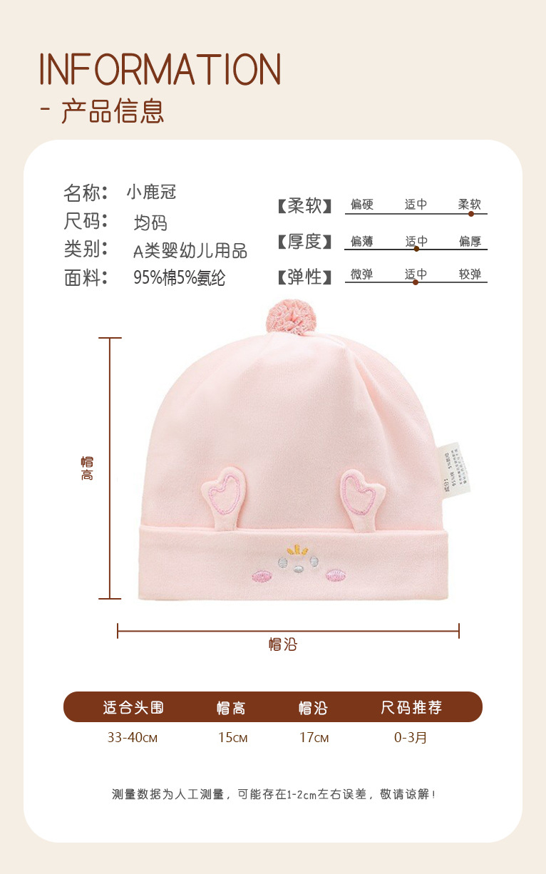 0-3개월 아기용 A급 모자, 봄/가을용 면 소재 남녀 아기 이중층 태아 모자, 천문 모자스토어 가기