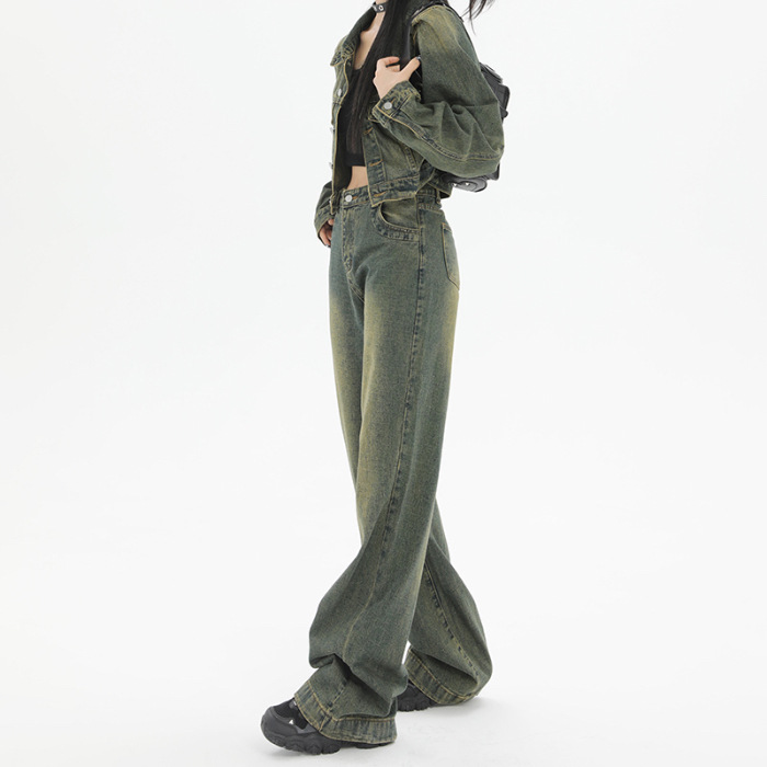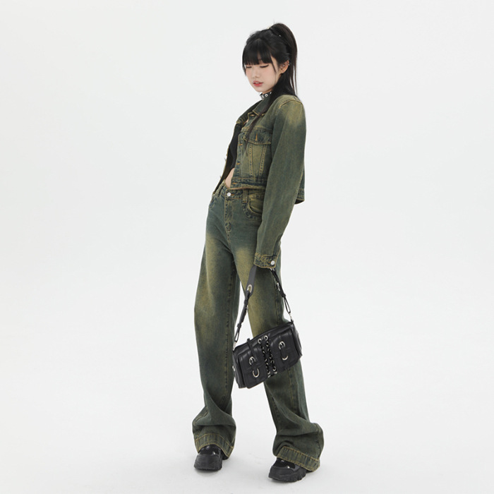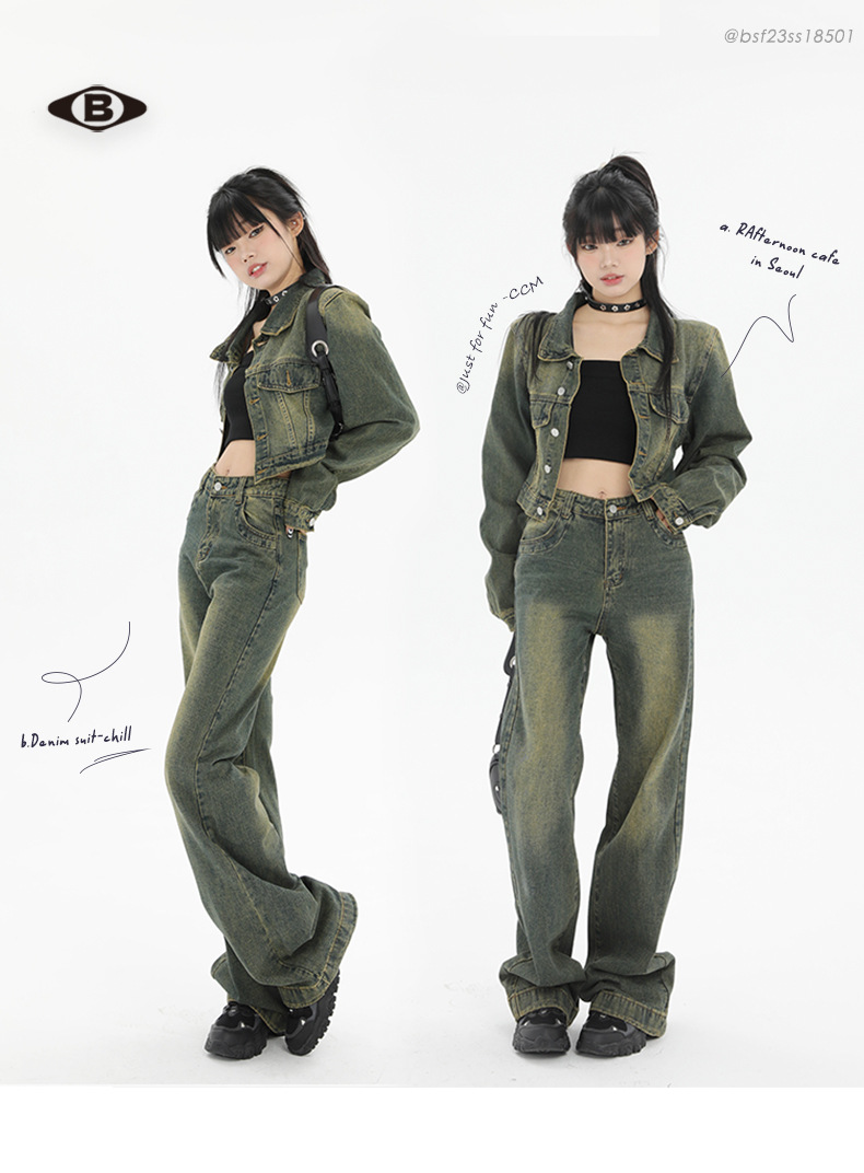 빈티지 세탁 오래 된 틈새 우아한 짧은 데님 재킷 여성의 초가을 새로운 올 매치 캐주얼 자켓스토어 가기