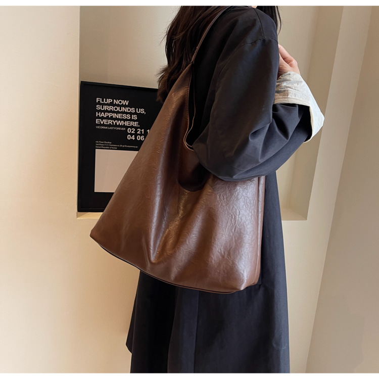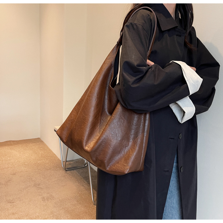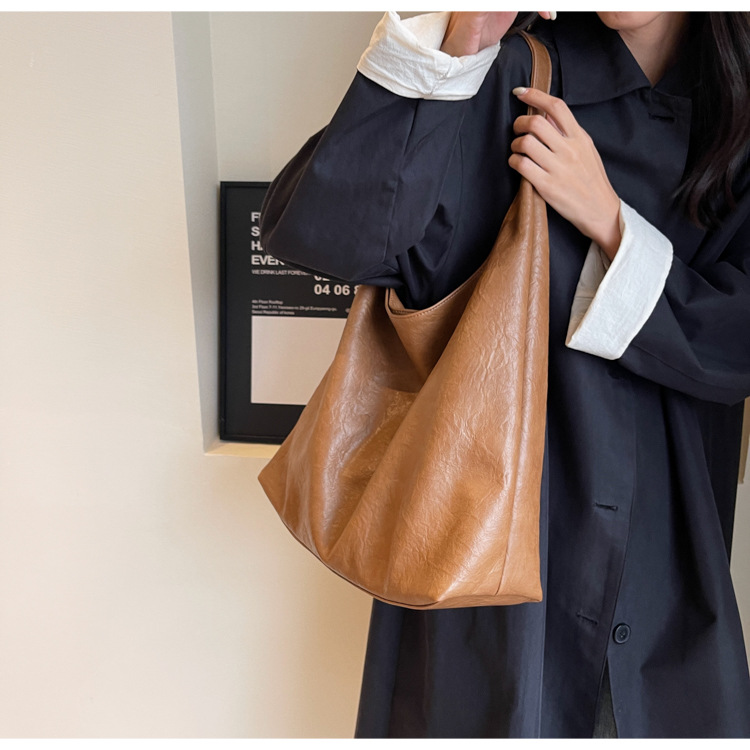 국경 간 소프트 가죽 대용량 가방 여성의 2024 가을 새로운 간단한 어깨 가방 질감 어머니-아이 통근 토트 가방스토어 가기