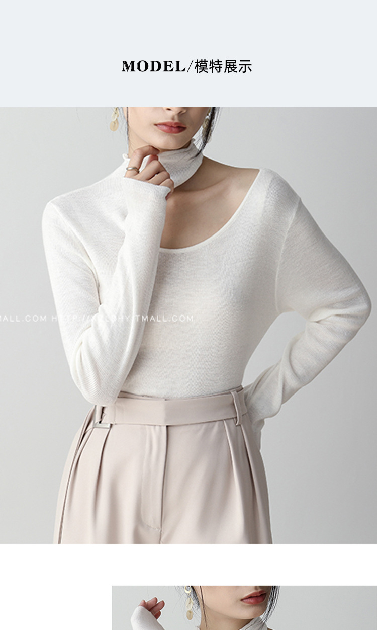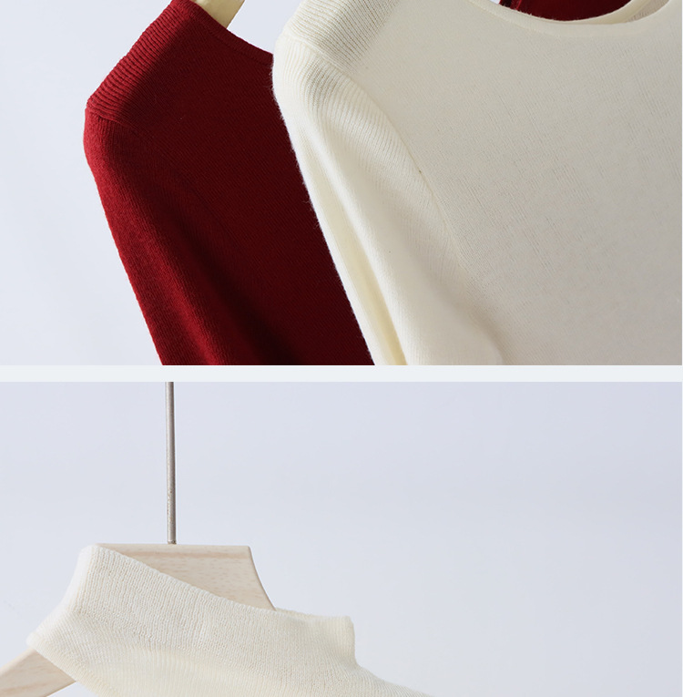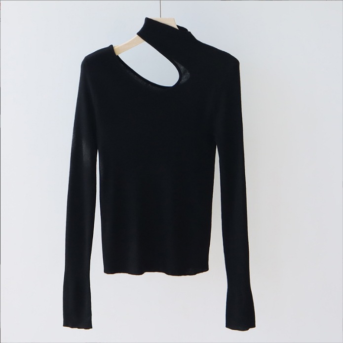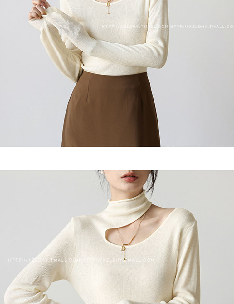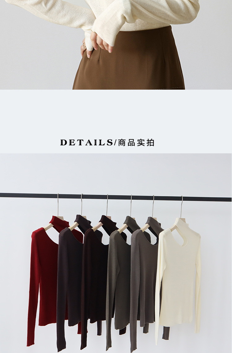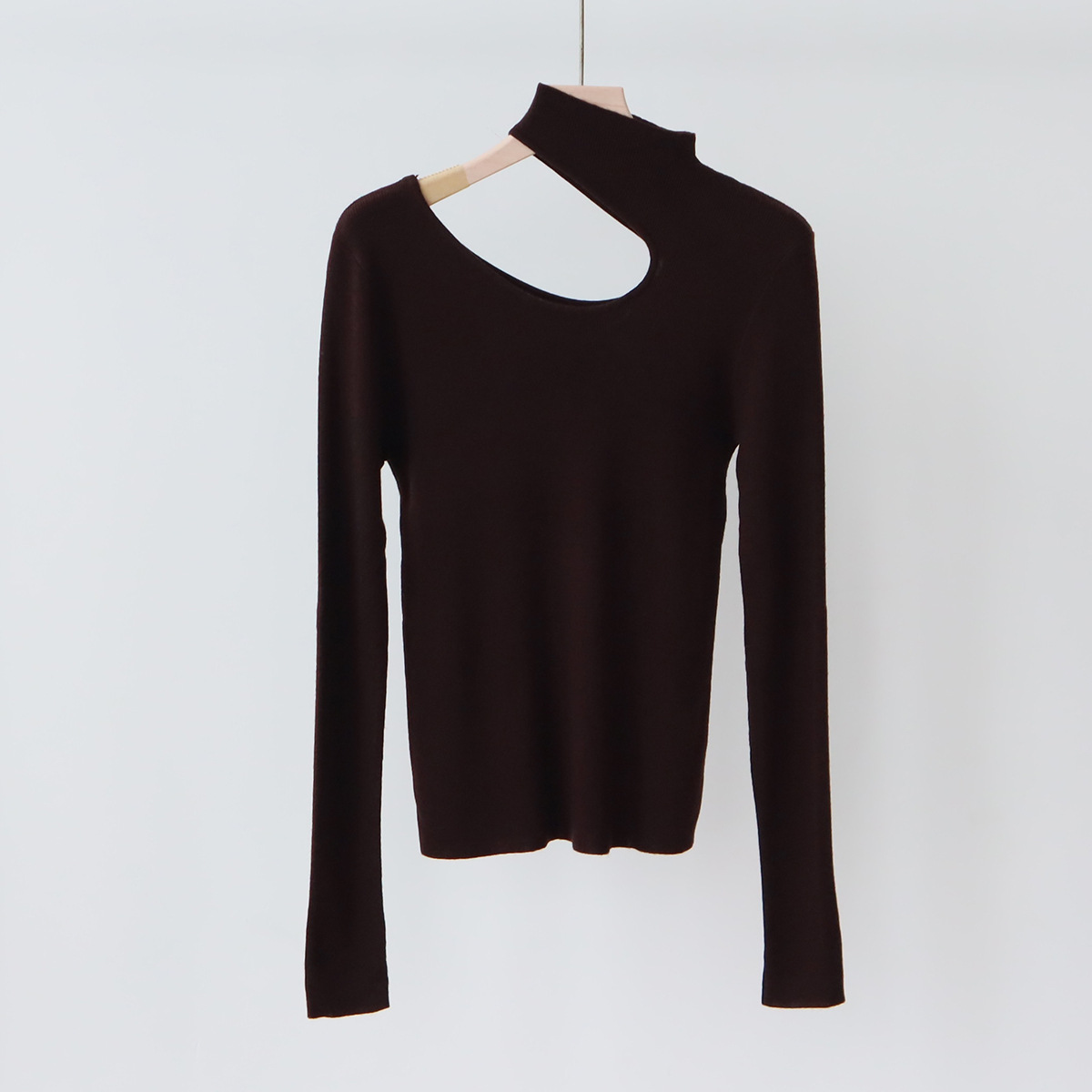 양모 블렌드 부드러운 바람 파는 어깨 높은 목 니트베이스 셔츠 여성용 겨울 새로운 탄성 슬림-핏 할로우 스웨터스토어 가기