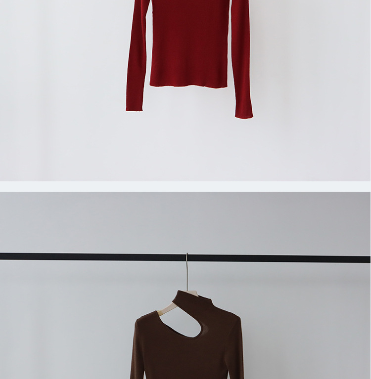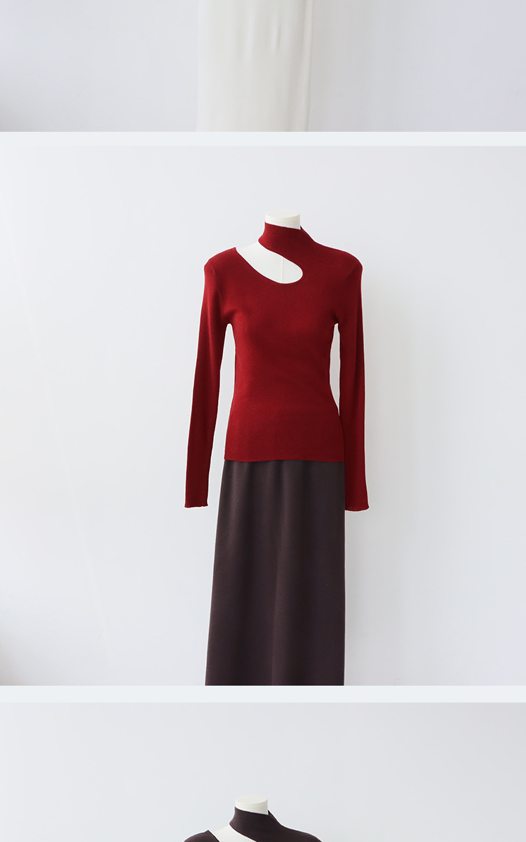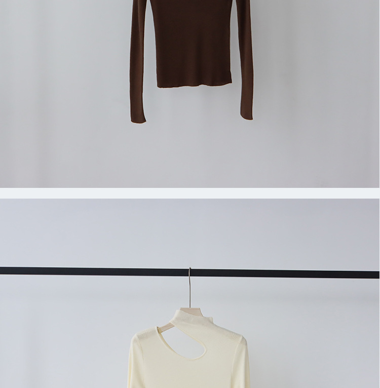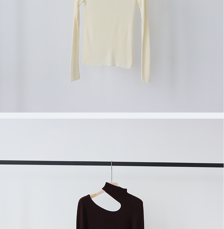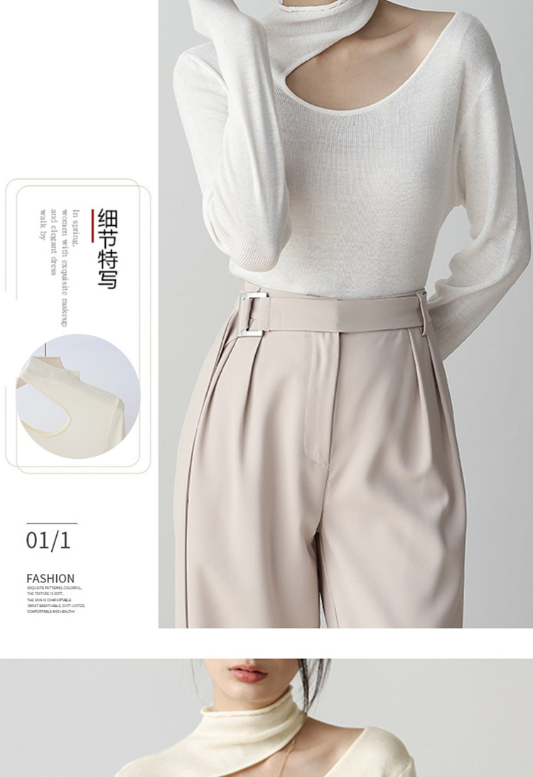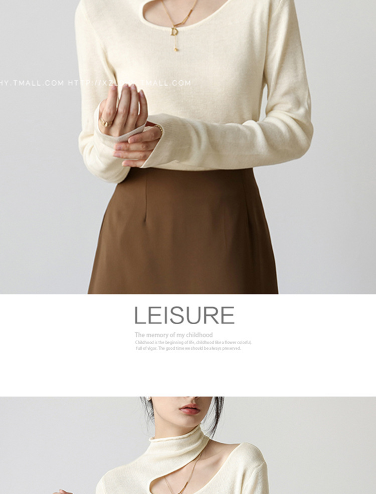 양모 블렌드 부드러운 바람 파는 어깨 높은 목 니트베이스 셔츠 여성용 겨울 새로운 탄성 슬림-핏 할로우 스웨터스토어 가기