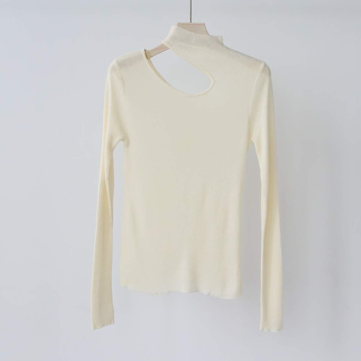 양모 블렌드 부드러운 바람 파는 어깨 높은 목 니트베이스 셔츠 여성용 겨울 새로운 탄성 슬림-핏 할로우 스웨터