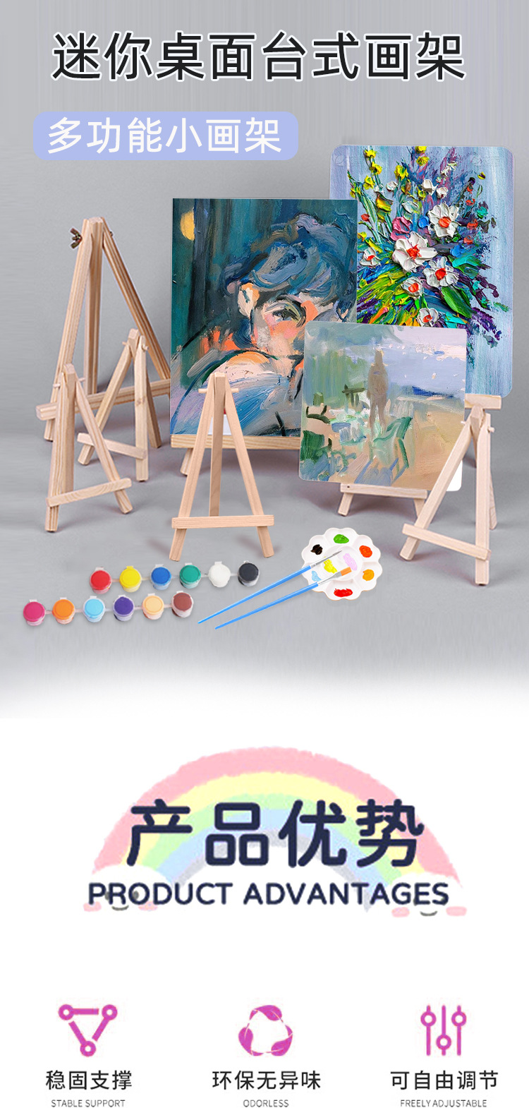 나무 작은 이젤 부드러운 가시가없는 어린이 예술 그림 데스크탑 미니 작은 이젤 나무 접이식 삼각형 이젤