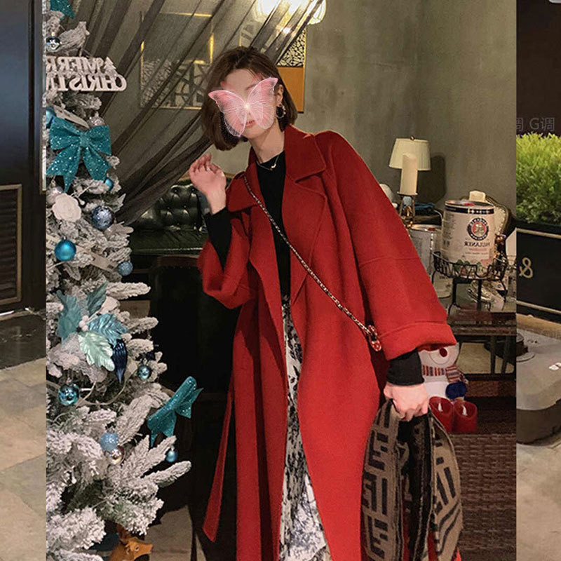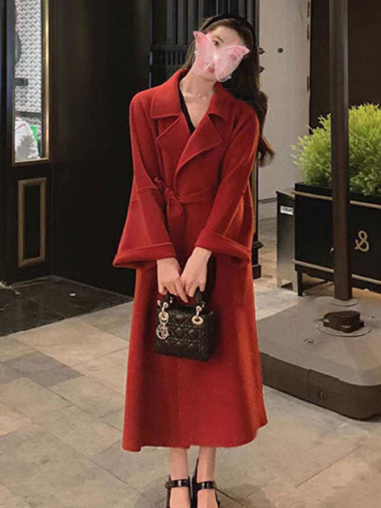 [시칠리아] 2025 가을 겨울 여성용 신상 양면 모직 코트 중간 길이 고급 루즈 울 코트