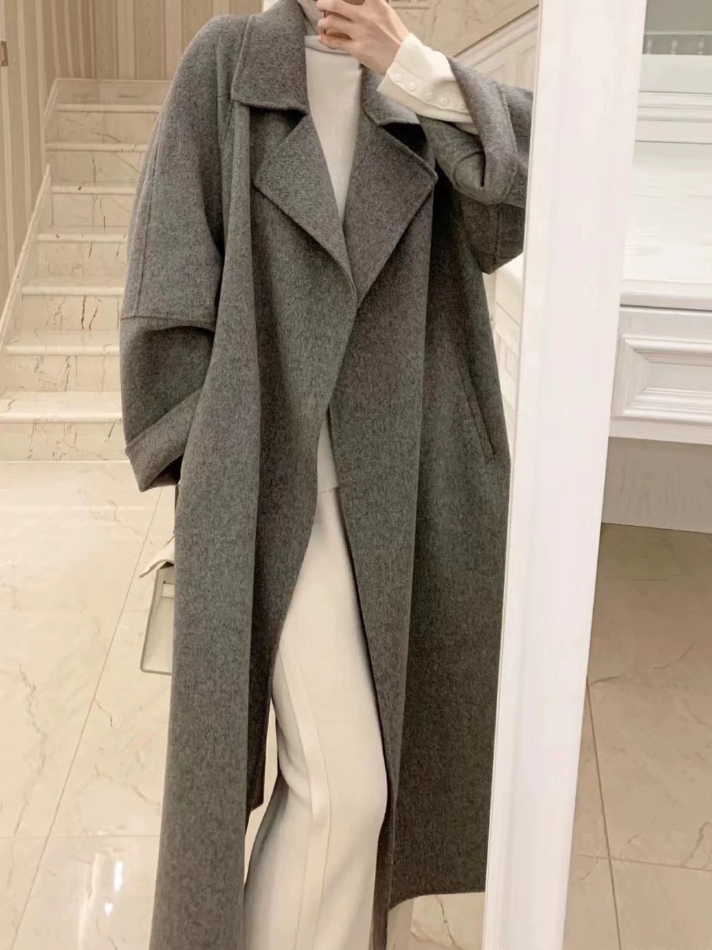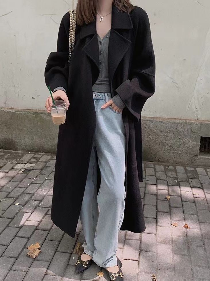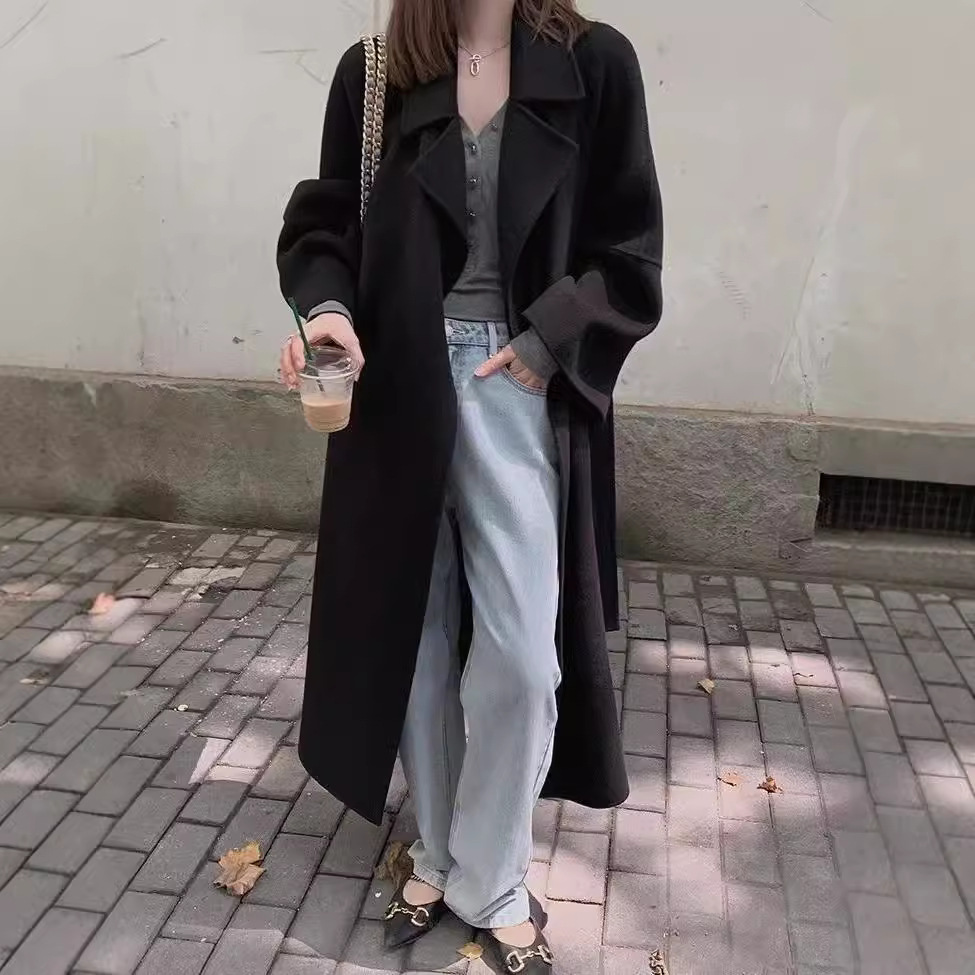 [시칠리아] 2025 가을 겨울 여성용 신상 양면 모직 코트 중간 길이 고급 루즈 울 코트스토어 가기
