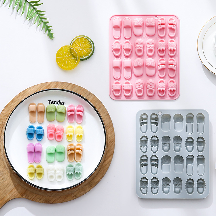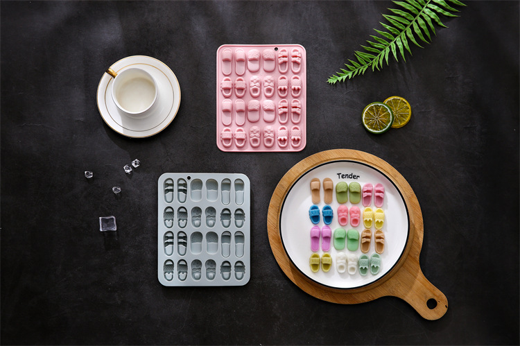 6가지 다른 슬리퍼 모양의 실리콘 몰드 아이스 트레이 초콜릿 소프트 캔디 몰드 케이크 몰드 24개 발견스토어 가기