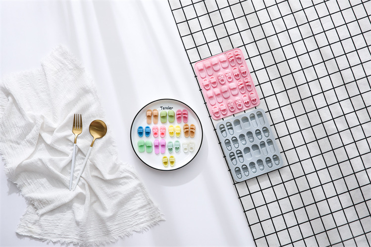 6가지 다른 슬리퍼 모양의 실리콘 몰드 아이스 트레이 초콜릿 소프트 캔디 몰드 케이크 몰드 24개 발견