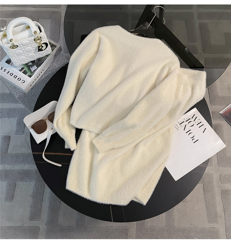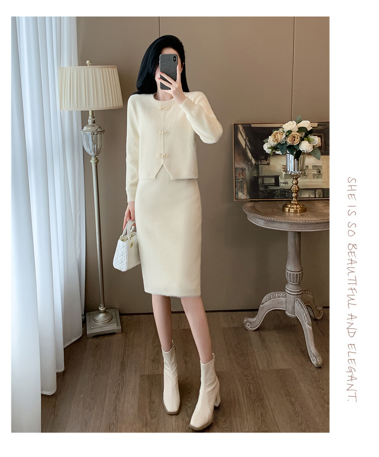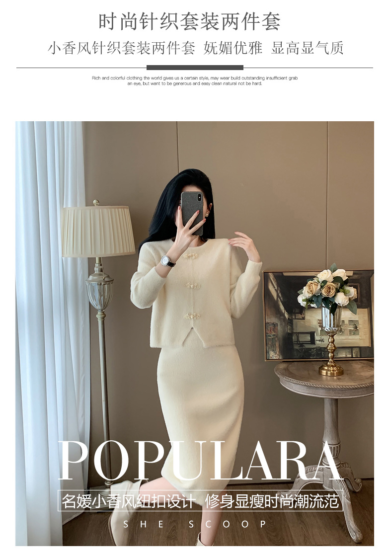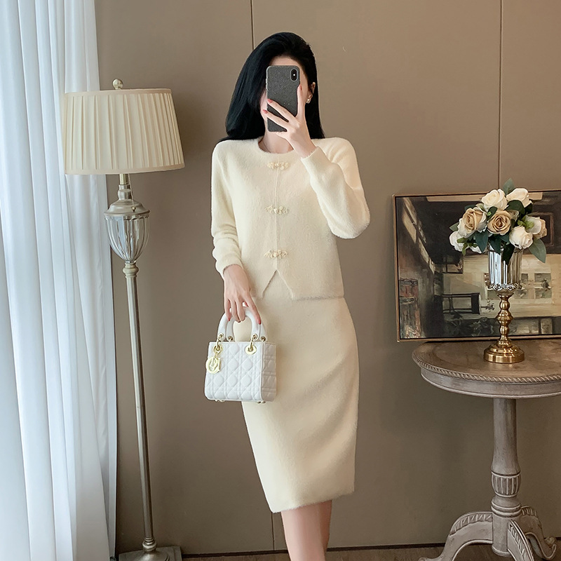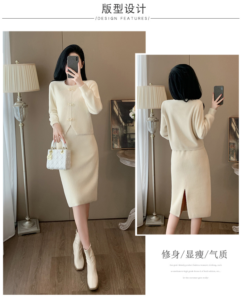 패션 캐주얼 원피스 여성의 가을과 겨울 모방 밍크 버클 새로운 중국 최고 치마 니트 투피스 원피스스토어 가기
