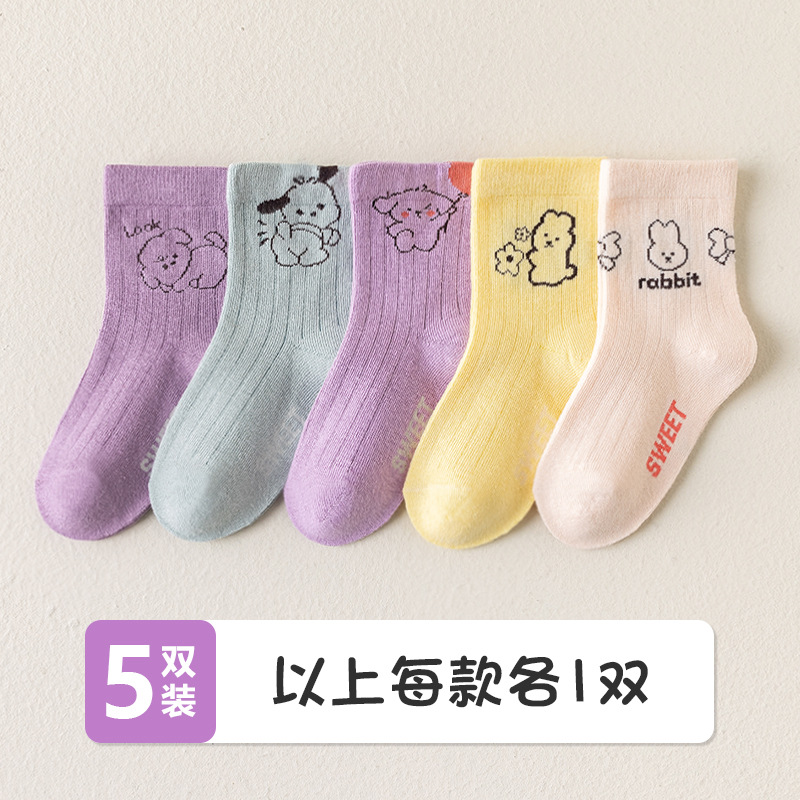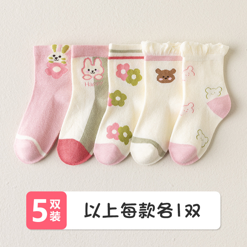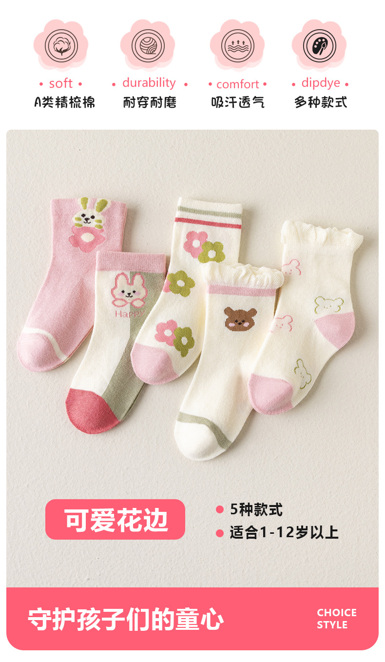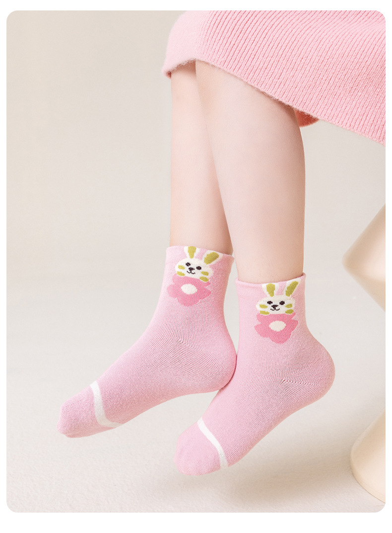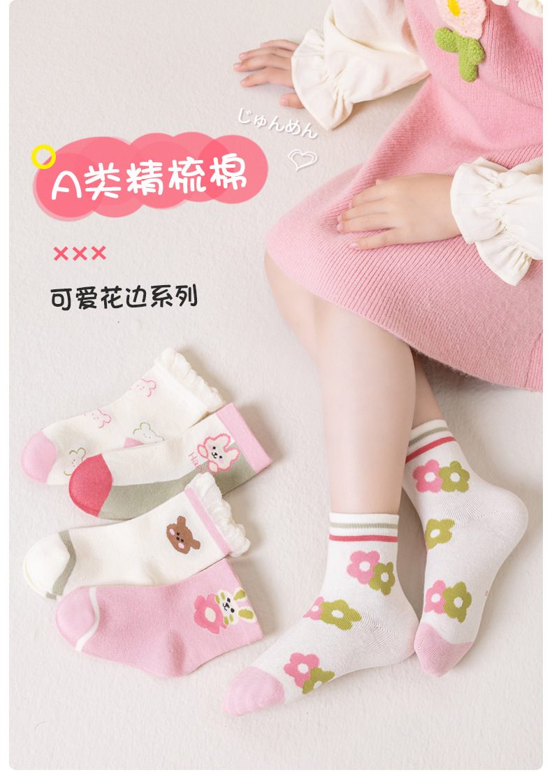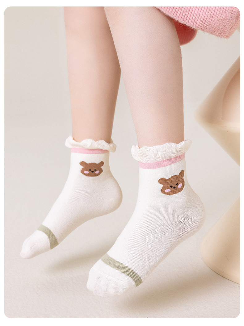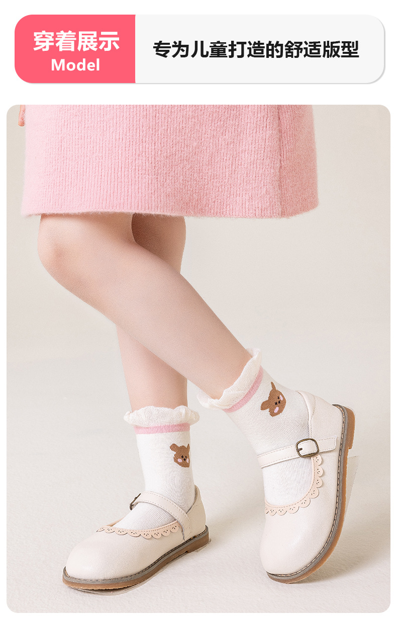 어린이 양말 가을과 겨울 뼈없는 안티 필링 빗질면 어린이 만화 곰 레이스 소녀 양말 미드 튜브 양말스토어 가기