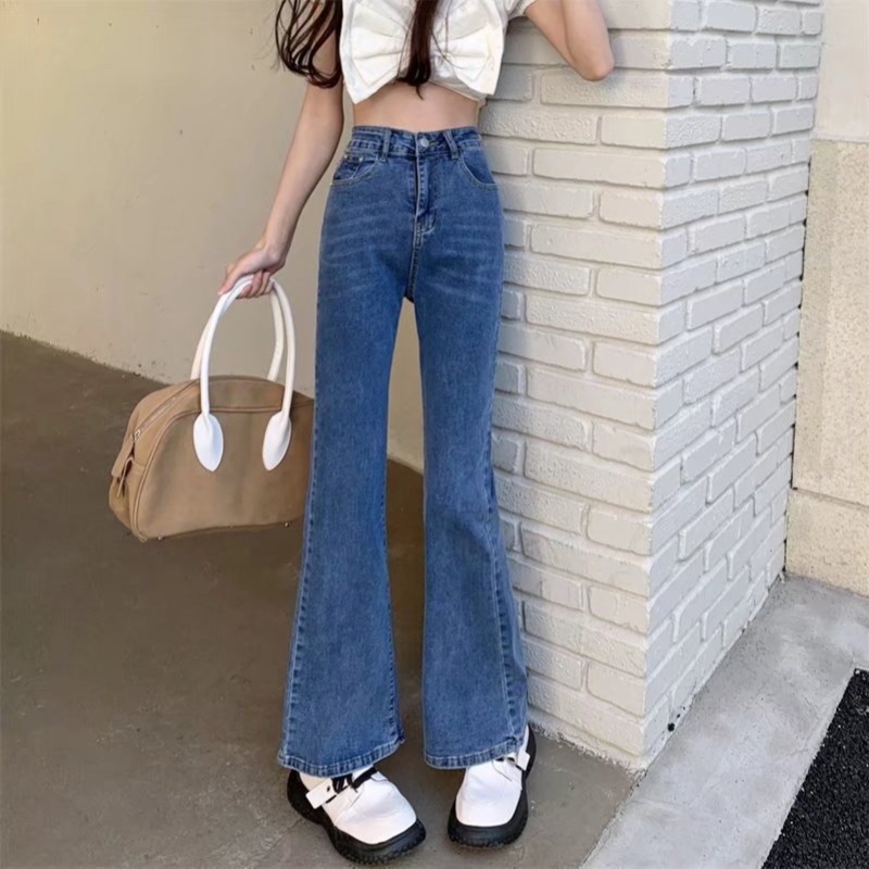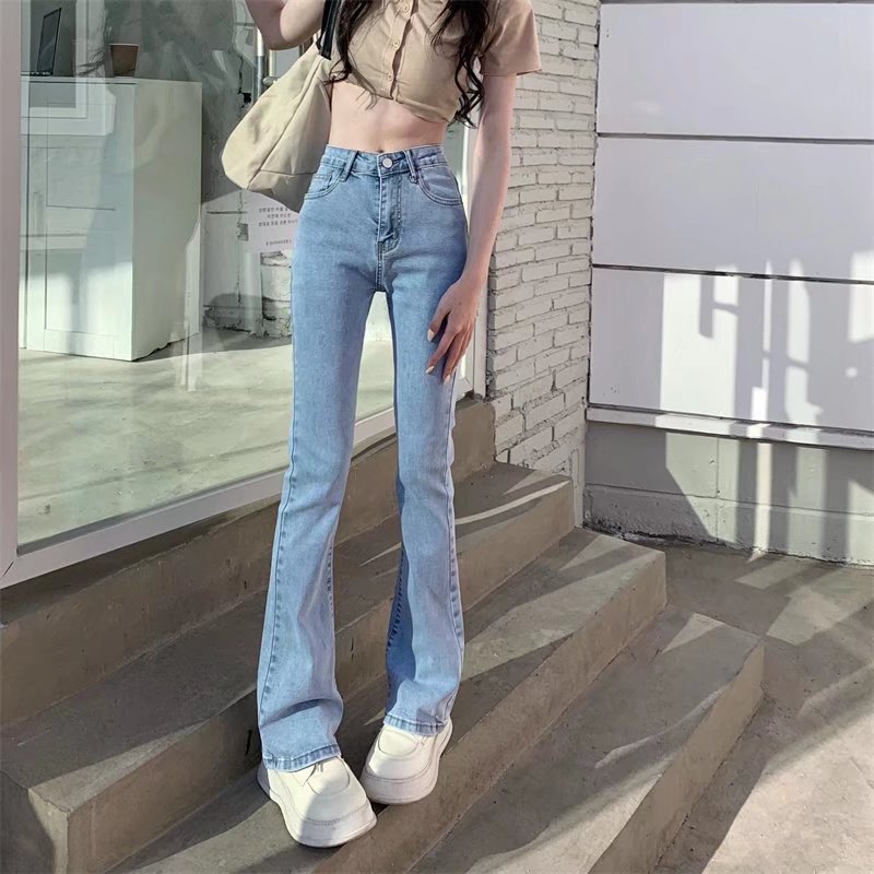 마이크로 플레어 청바지 여성의 가을과 겨울 새로운 높은 허리 스트레이트 슬림 핏 슬림 플러스 사이즈 통통녀 기모 넓은 다리 긴 바지스토어 가기