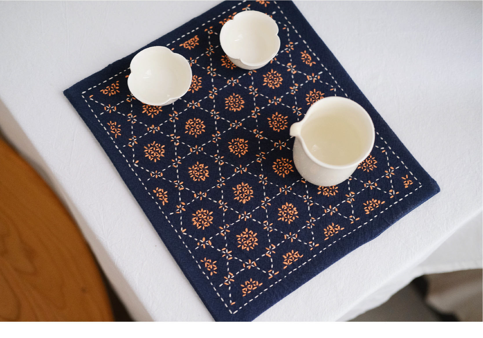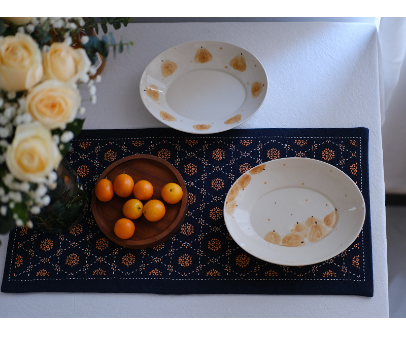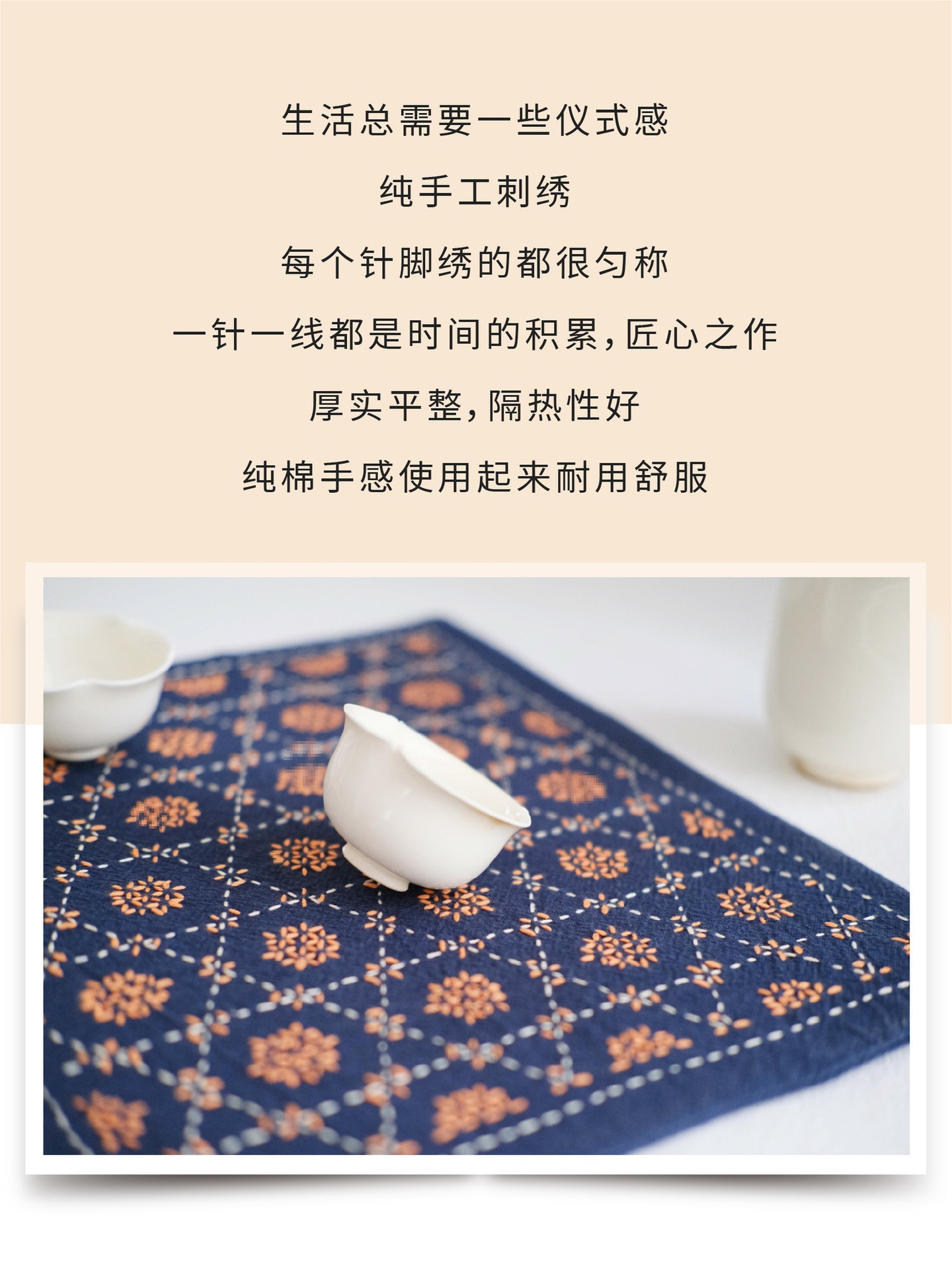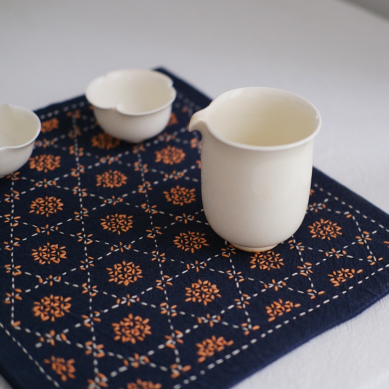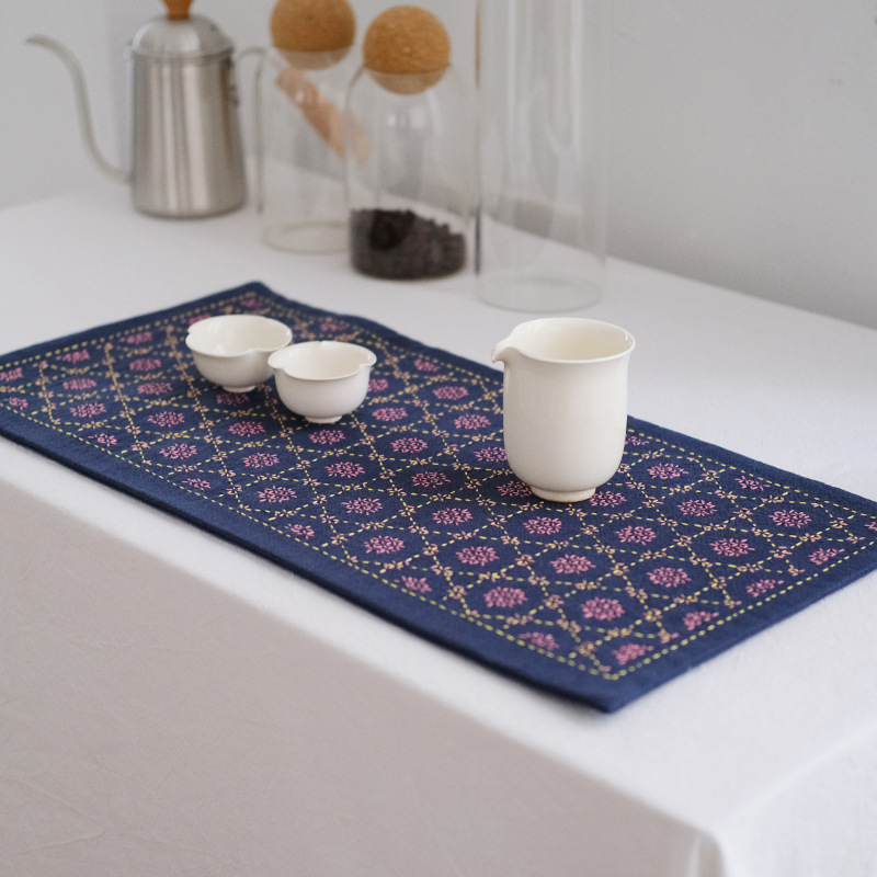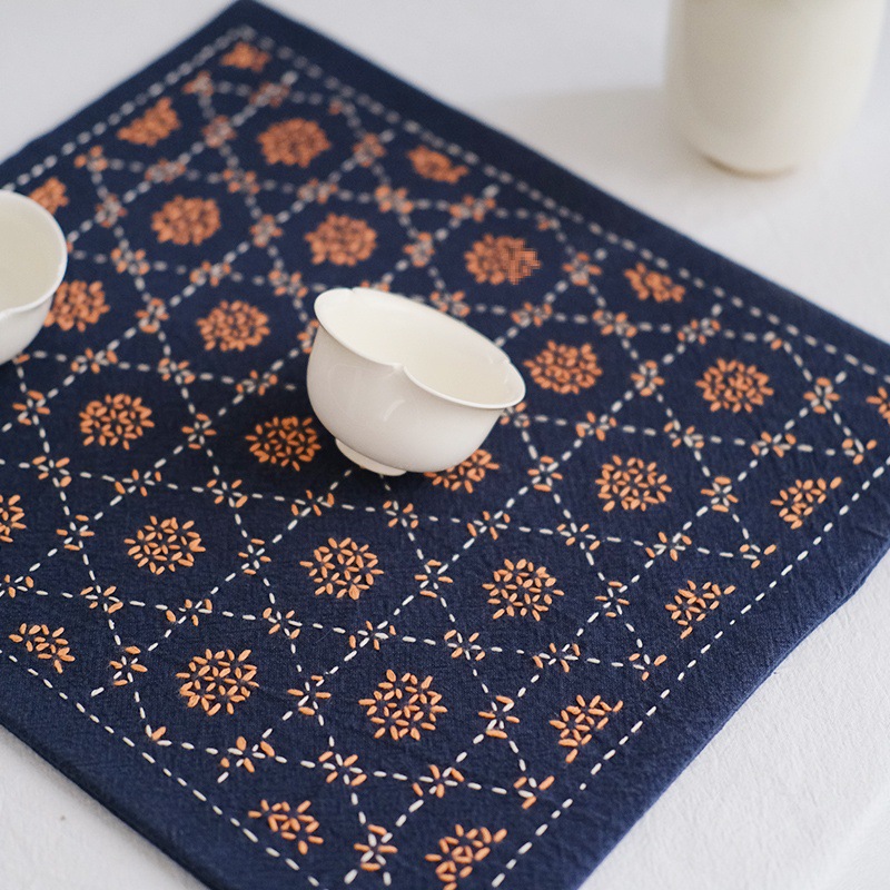 Chuangu 순수 수제 스티치 자수 차 매트 차 매트 일본식 테이블 매트 단열 매트 드라이 버블 홈 차 매트 다도 제로스토어 가기