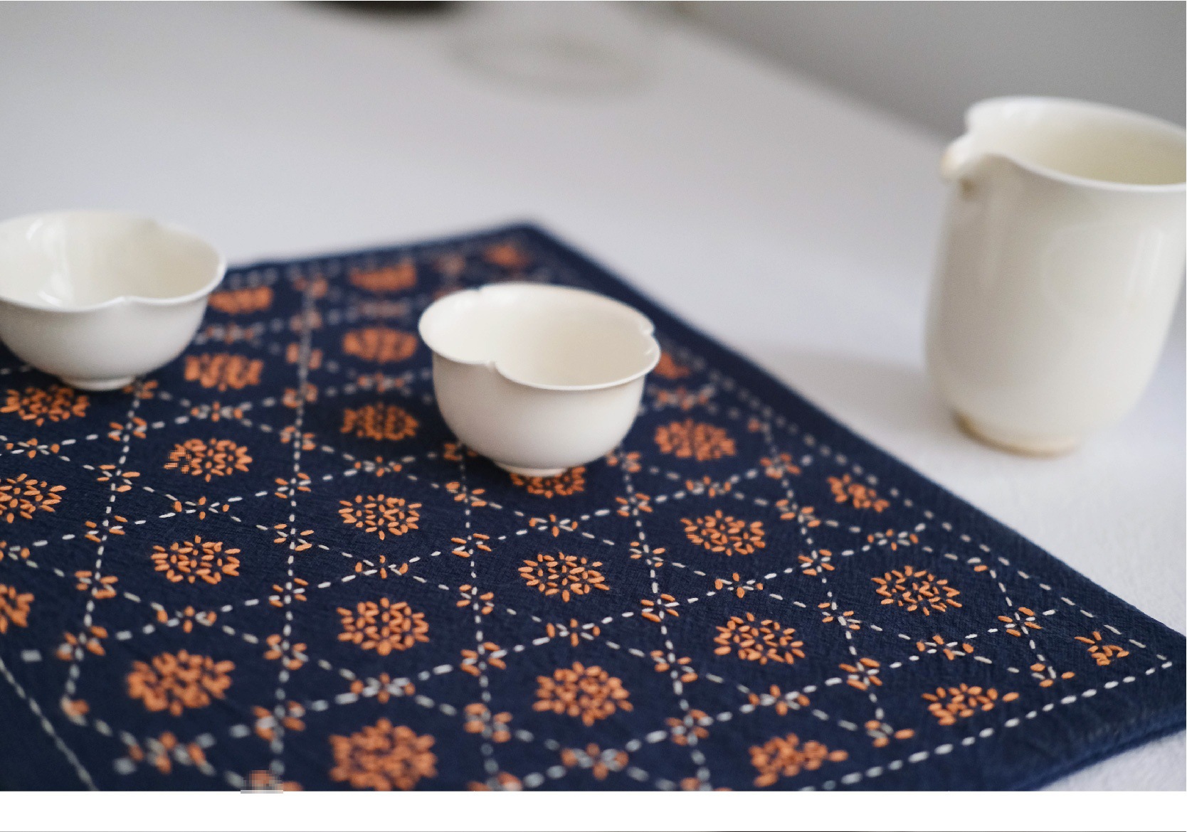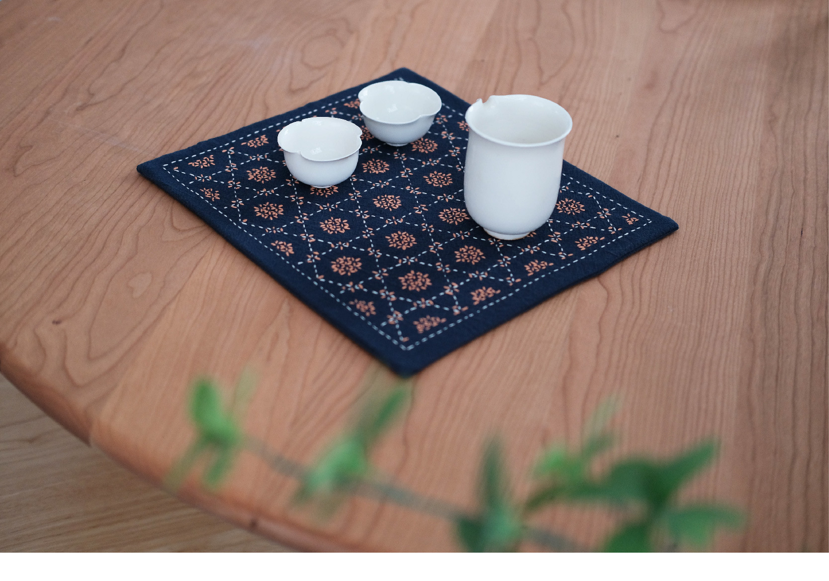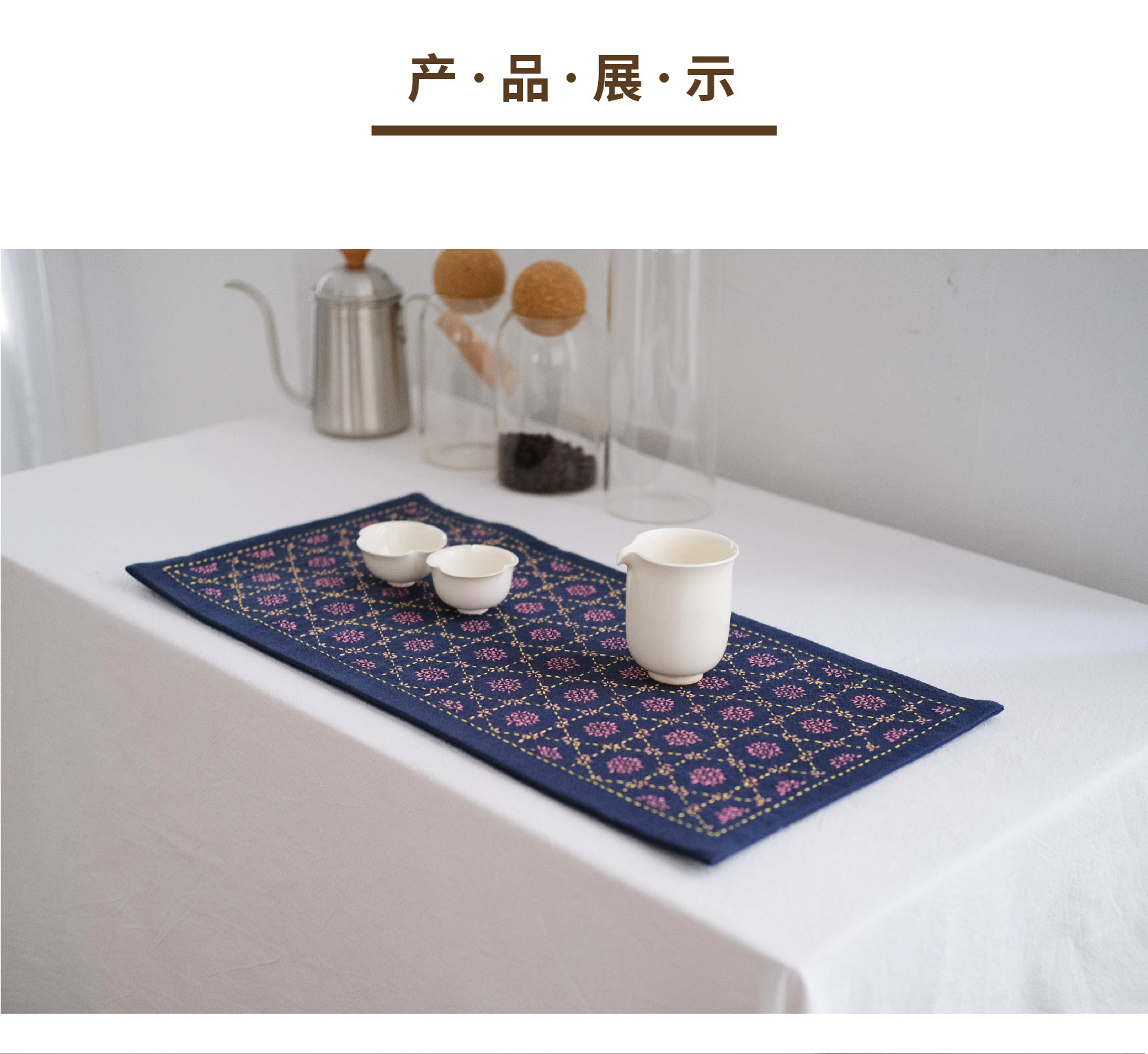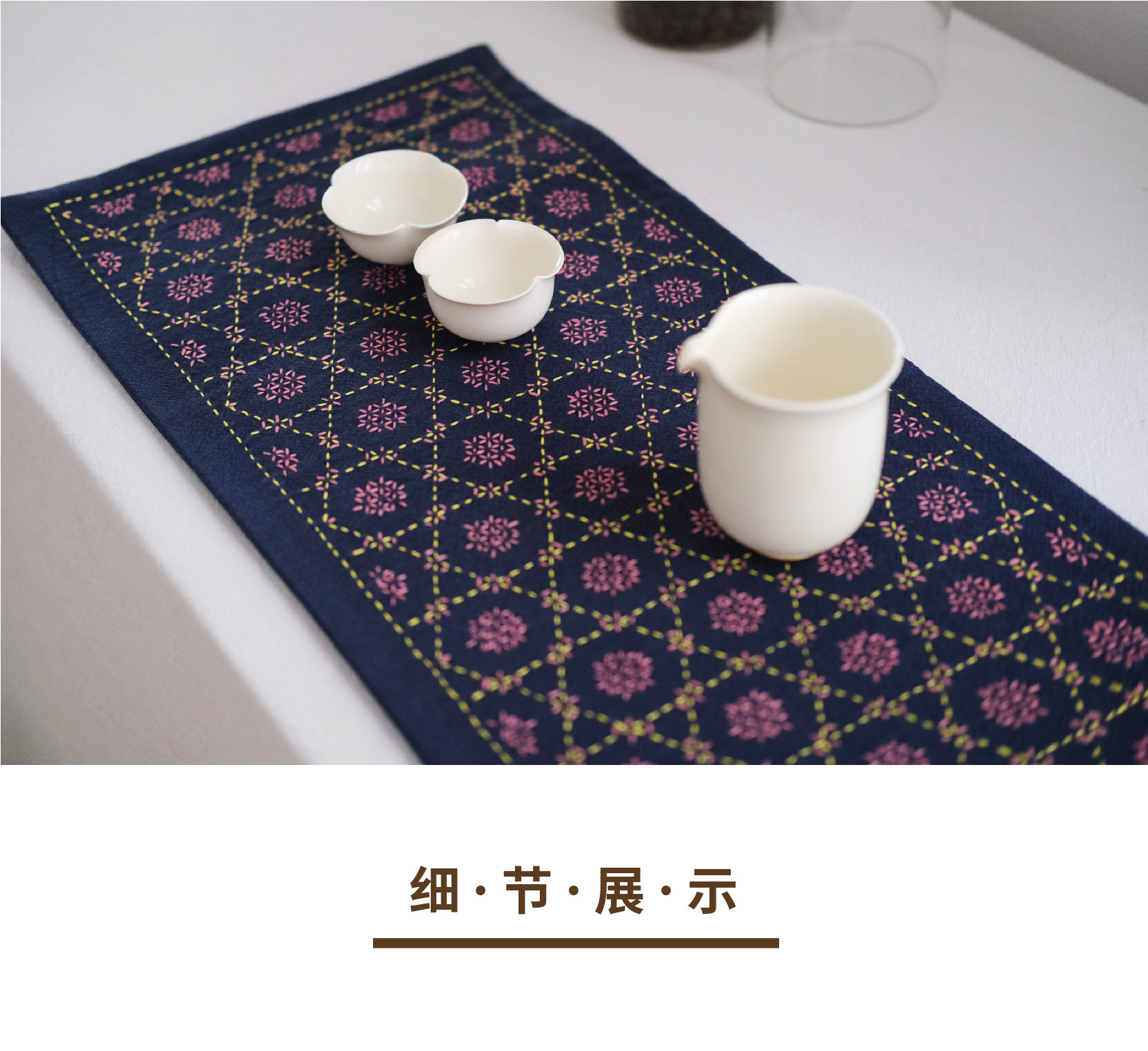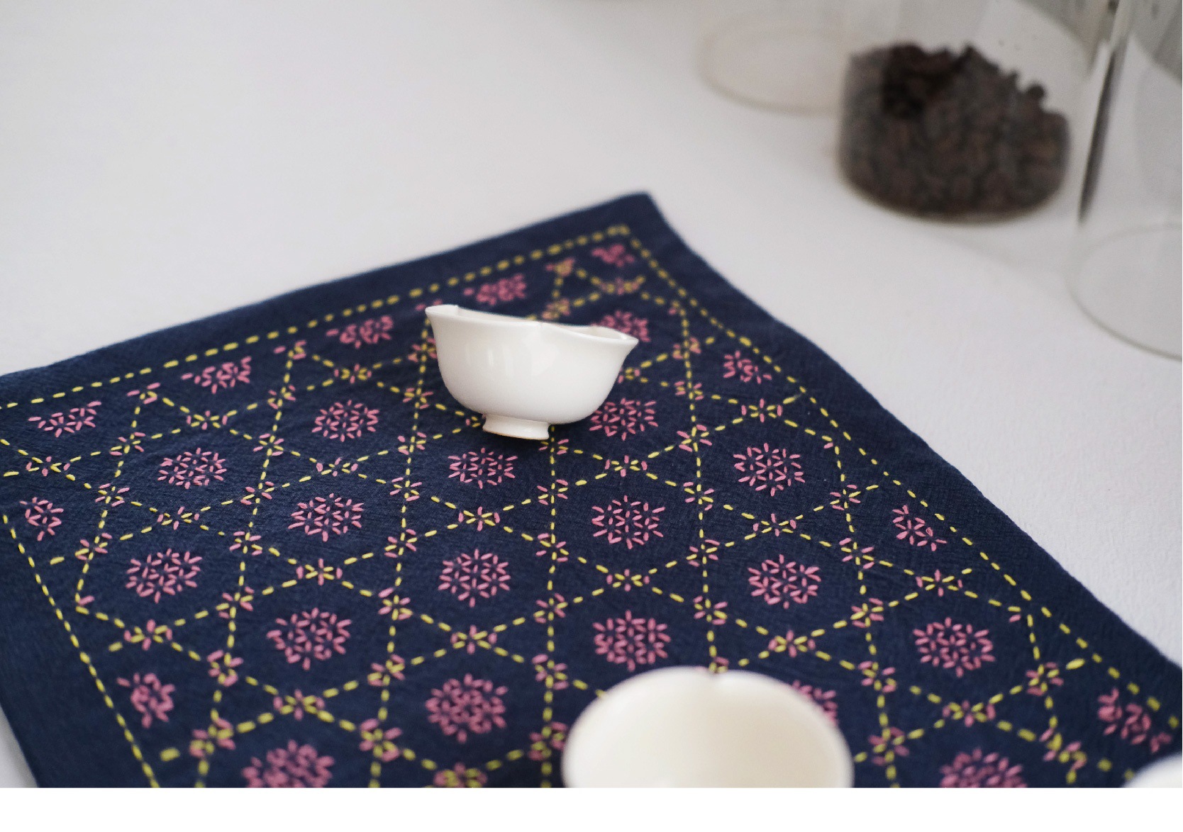 Chuangu 순수 수제 스티치 자수 차 매트 차 매트 일본식 테이블 매트 단열 매트 드라이 버블 홈 차 매트 다도 제로스토어 가기