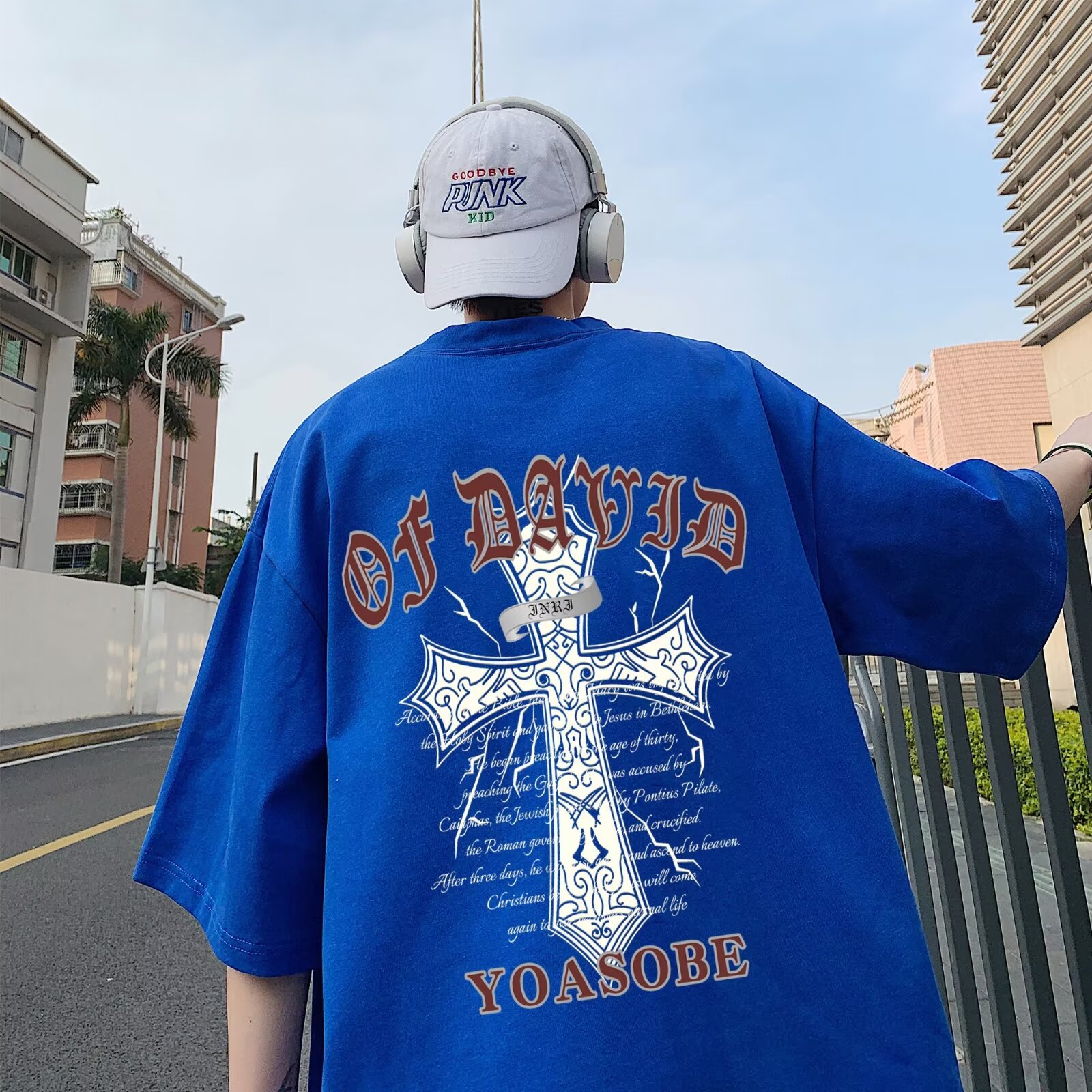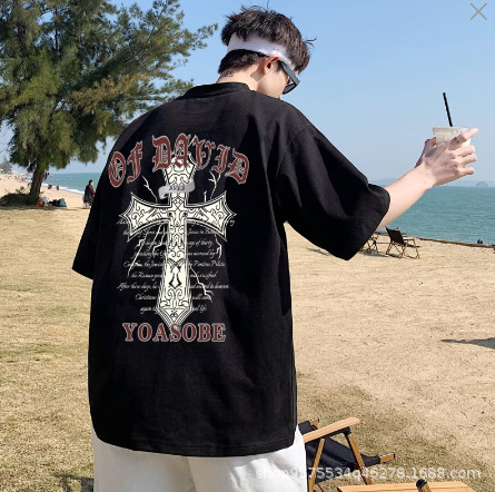 아메리칸 스타일 디자인 센스 프린트 헤비 듀티 반팔 티셔츠 남성 여름 트렌디 브랜드 스트리트 스타일 캐주얼 베이스 셔츠 탑스토어 가기