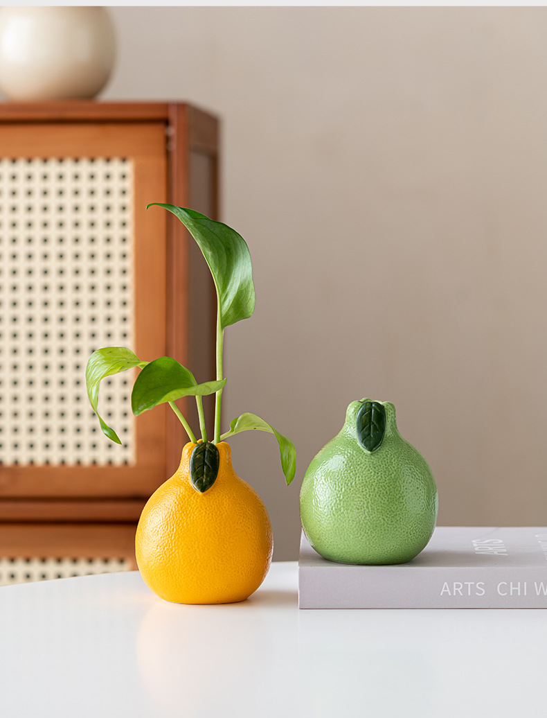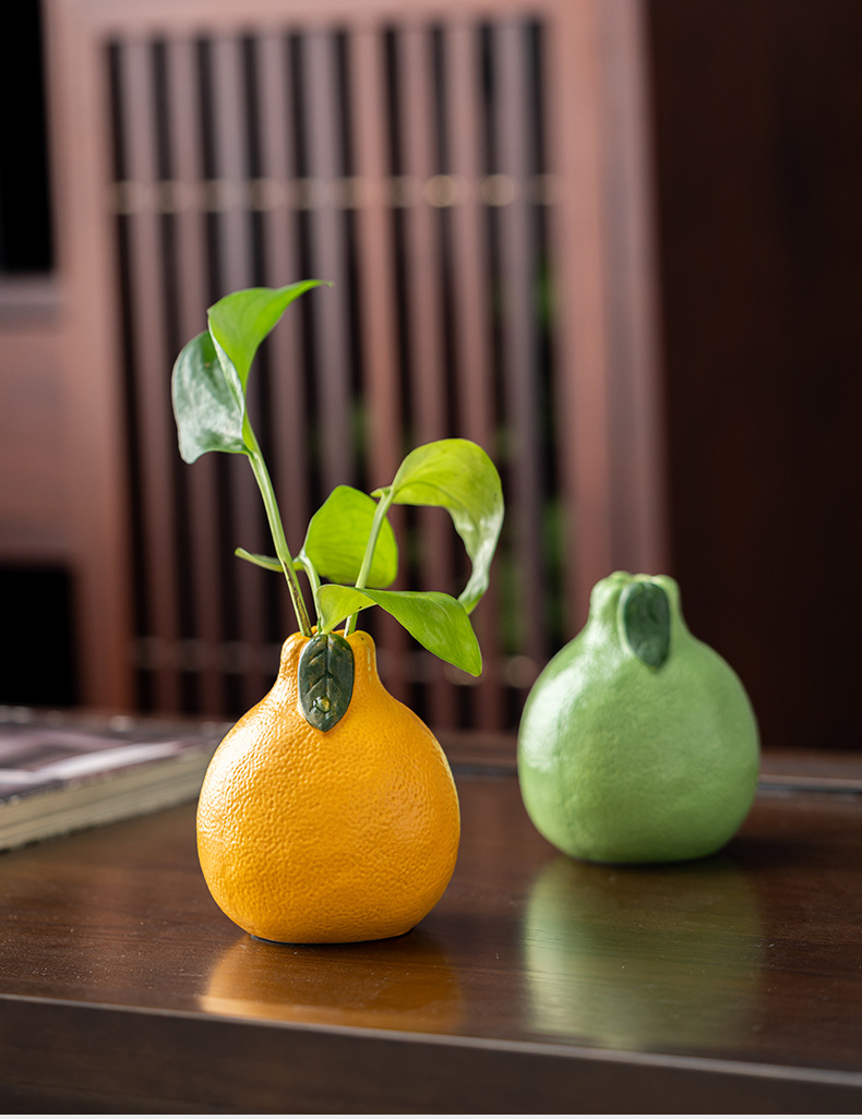 크리 에이 티브 오렌지 꽃병 세라믹 물 올리기 그린 로즈 수경 꽃 냄비 꽃 꽃병 거실 데스크탑 데스크 장식품