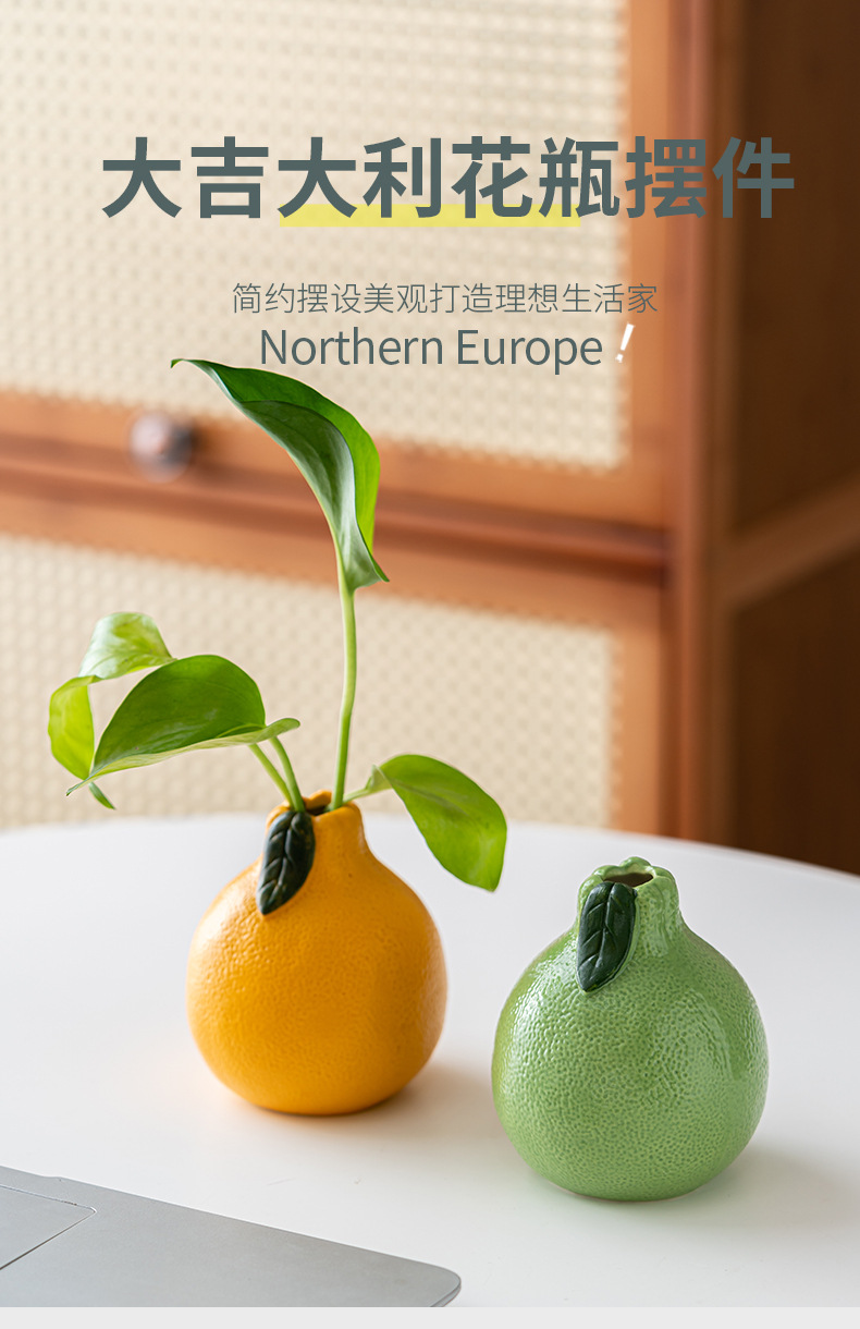 크리 에이 티브 오렌지 꽃병 세라믹 물 올리기 그린 로즈 수경 꽃 냄비 꽃 꽃병 거실 데스크탑 데스크 장식품스토어 가기