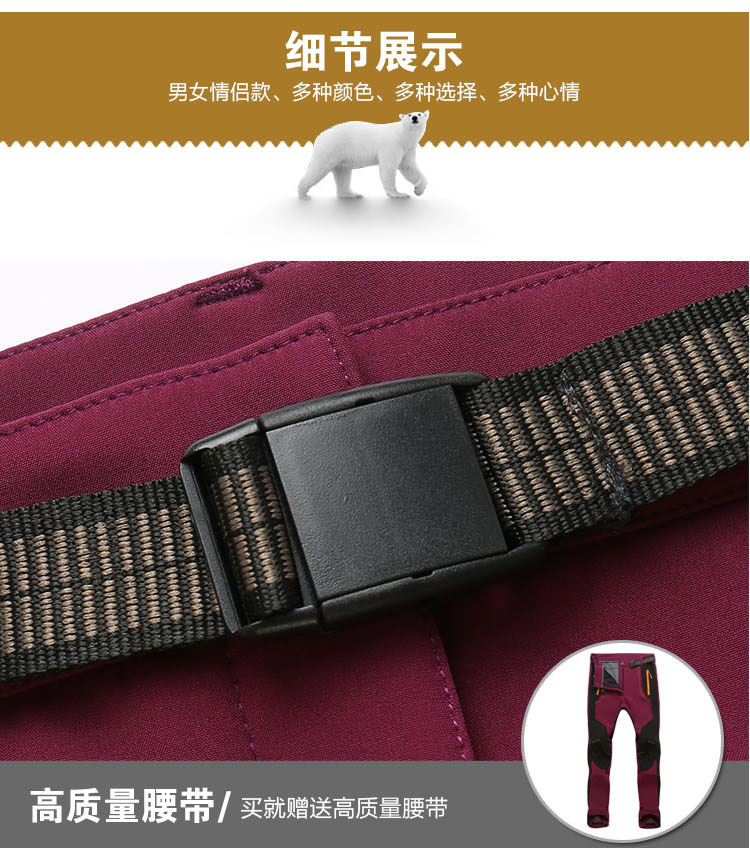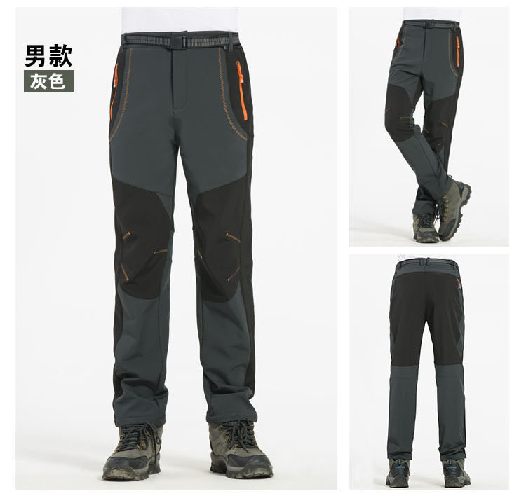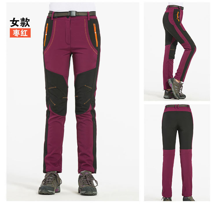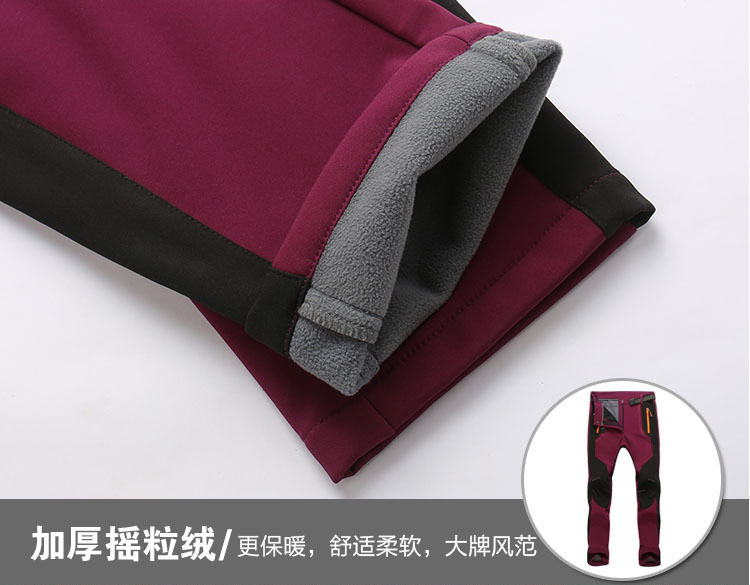 겨울 한랭 스노우 마운틴 따뜻한 러스크 바지 남성과 여성을위한 두꺼운 양털 방풍 방수 하이킹 소프트 쉘 바지
