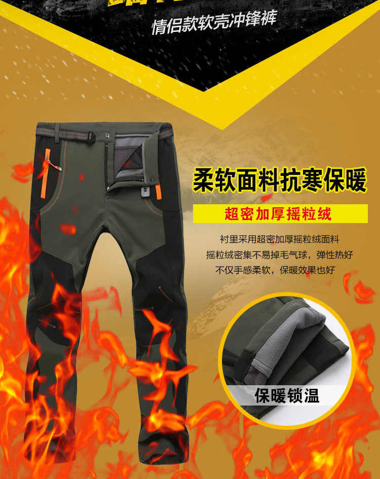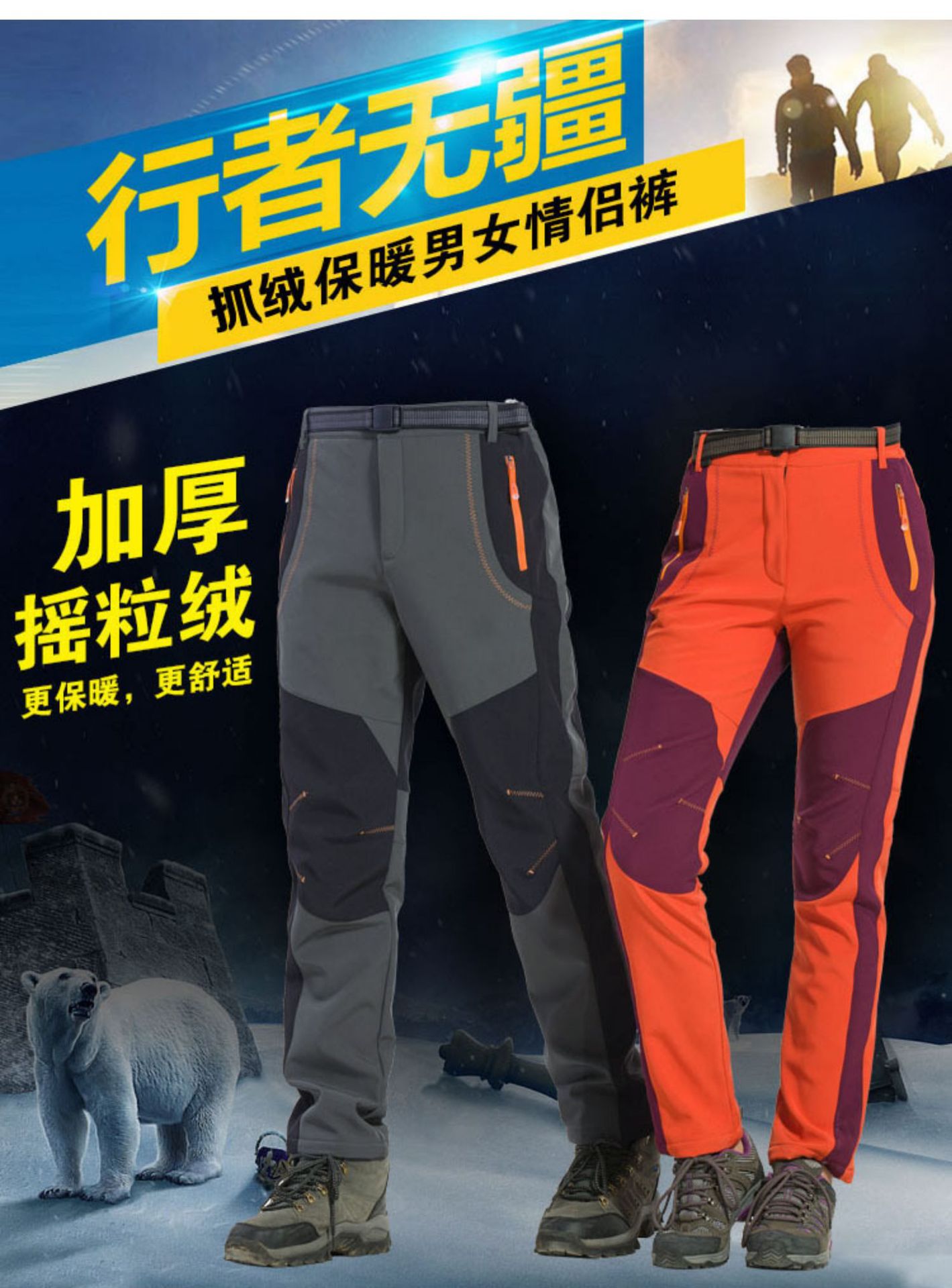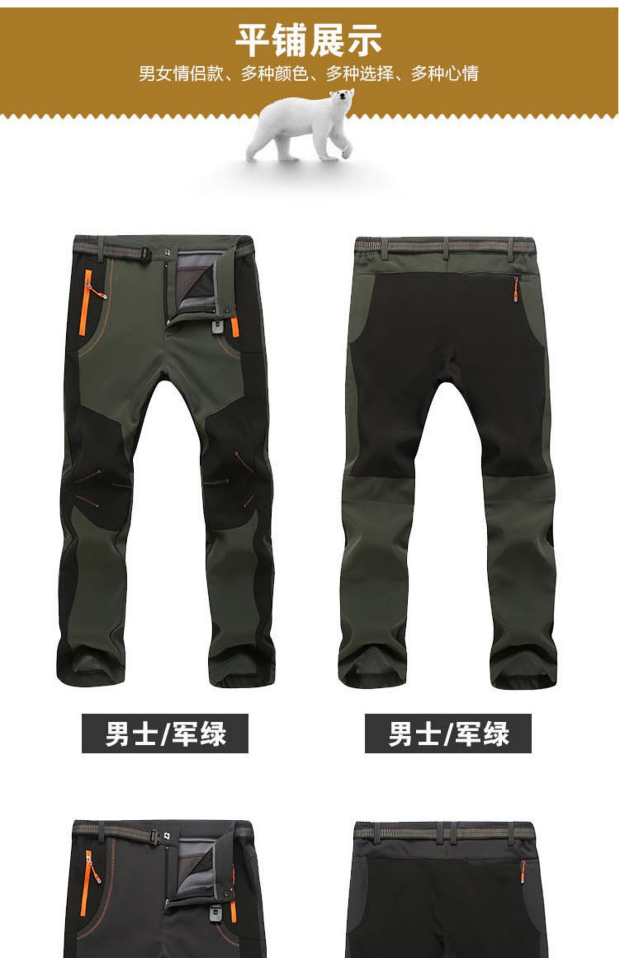 겨울 한랭 스노우 마운틴 따뜻한 러스크 바지 남성과 여성을위한 두꺼운 양털 방풍 방수 하이킹 소프트 쉘 바지스토어 가기