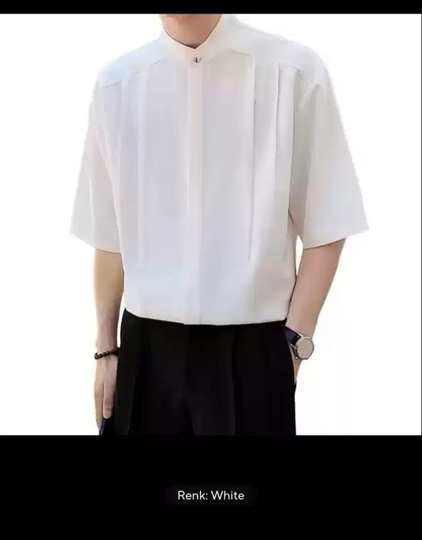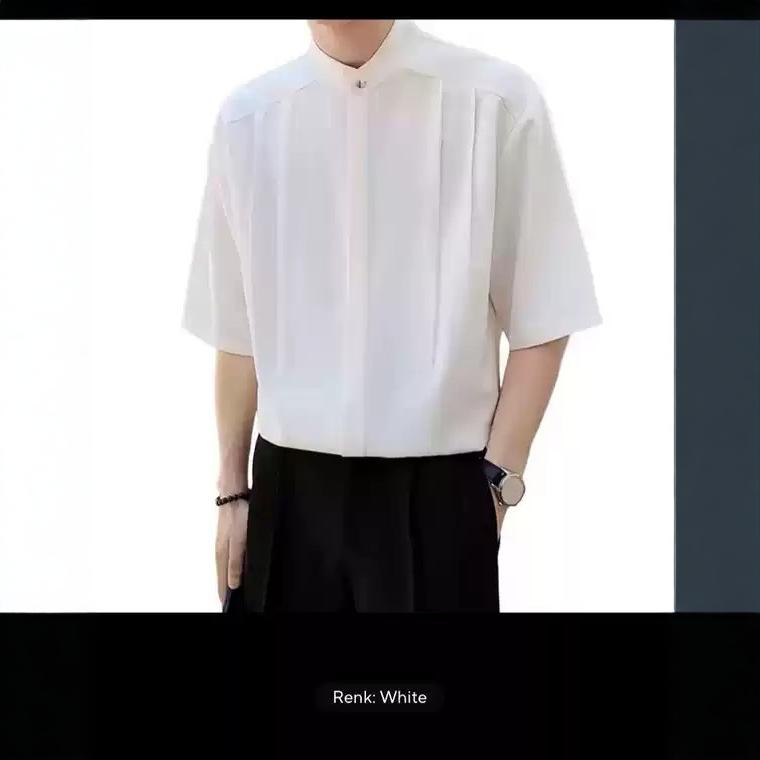 남자 2024 여름 새로운 스타일 수직 칼라 셔츠 남자의 얇은 느슨한 단색 청소년 반소매 하이 엔드 짧은 소매 셔츠스토어 가기