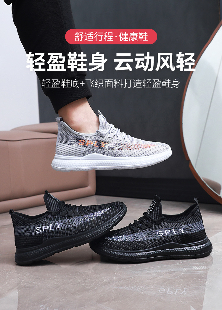 남자의 새로운 미끄럼 소프트 단독 가을 및 겨울 신발 중년 및 노인 워킹 신발 아빠 신발 플라이 짠 통기성 캐주얼 스포츠 코코넛 신발