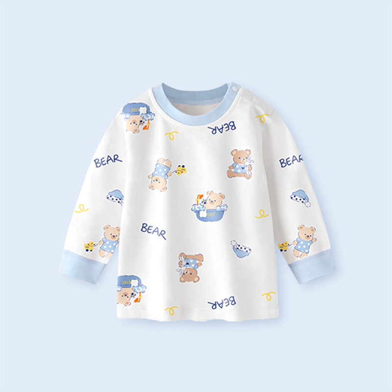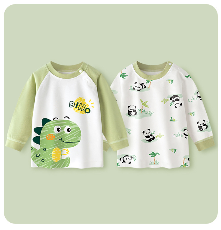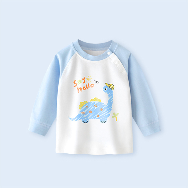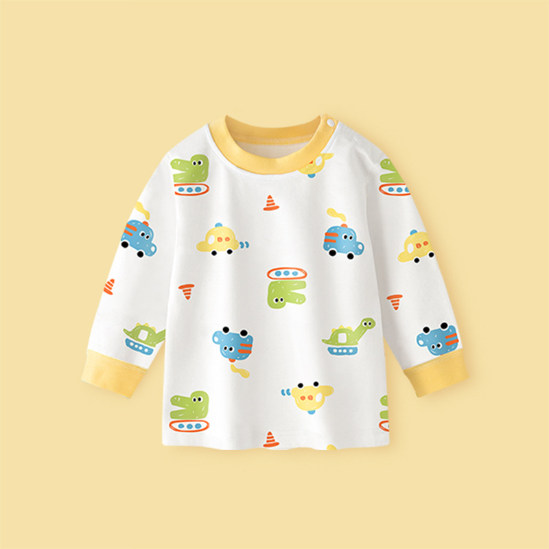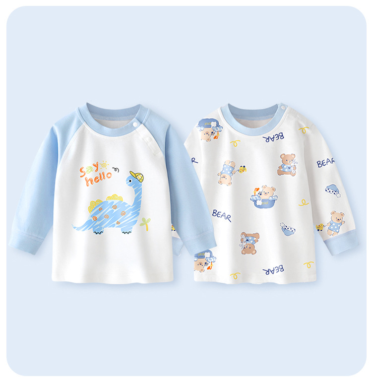 아기 티셔츠 긴팔 옷 이른 가을 어린이 싱글 피스 탑 여자 순수한 면 옷 소년 아기 봄과 가을베이스 셔츠스토어 가기
