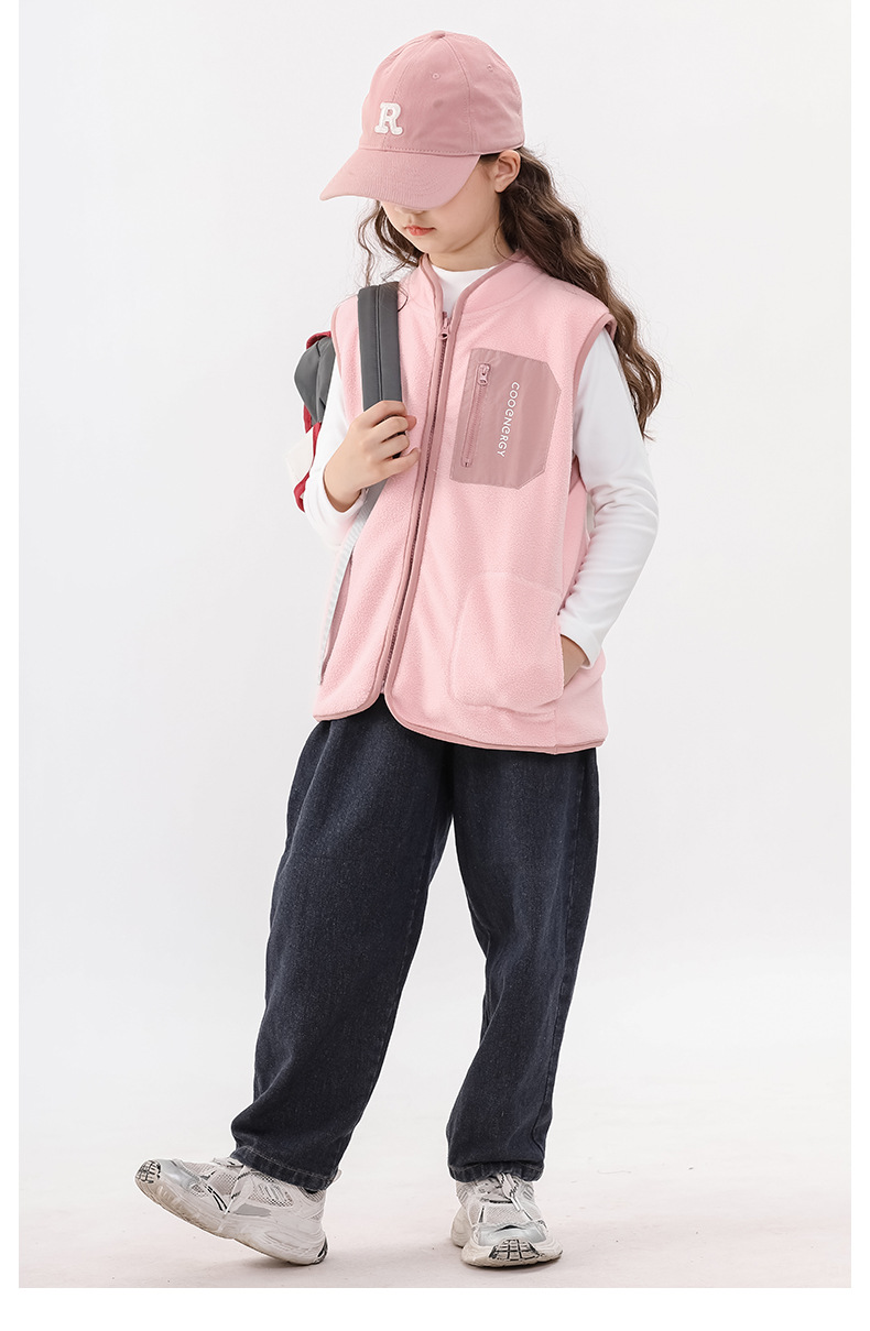 아동 조끼 2025 가을, 겨울 새로운 폴라 플리스 소년 따뜻한 야외 스포츠 플러스 벨벳 소녀 조끼 카테고리 a