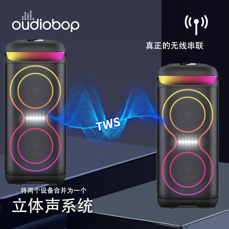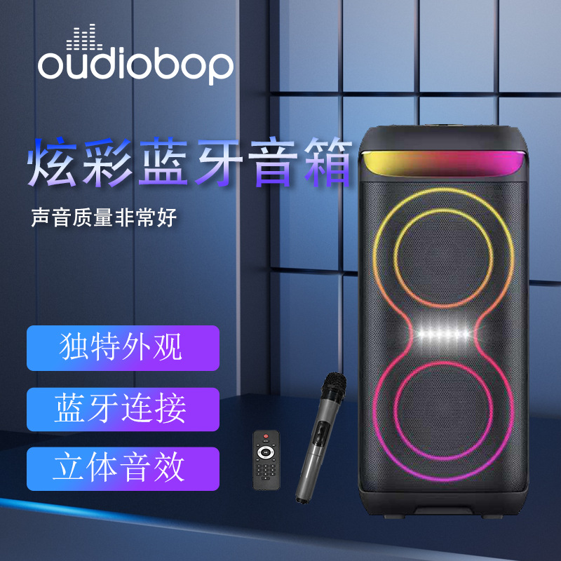 국경을 넘는 인기 판매 블루투스 스피커 RGB 조명 휴대용 무선 마이크 TWS 시리즈 중저음 강화 스피커