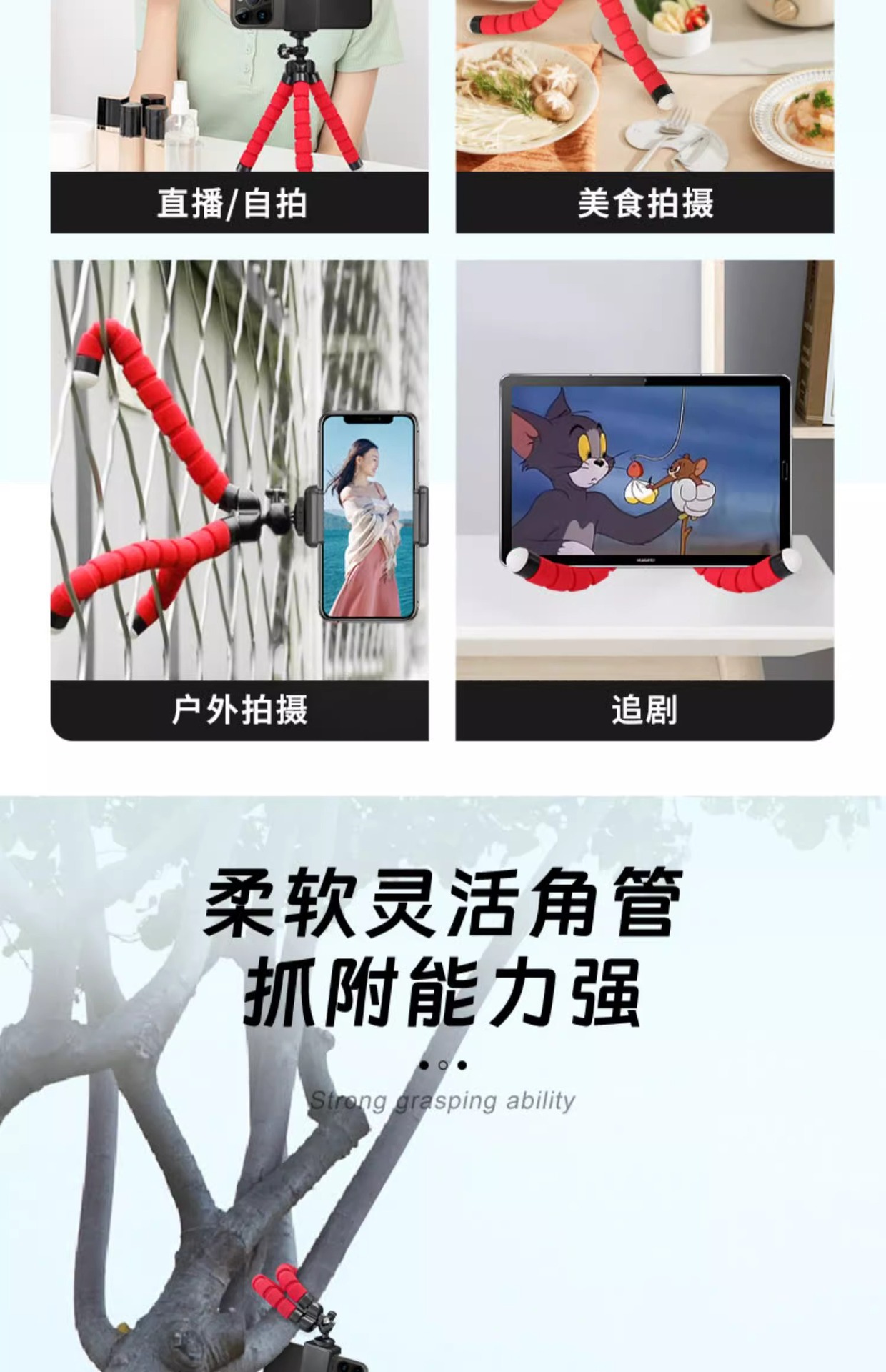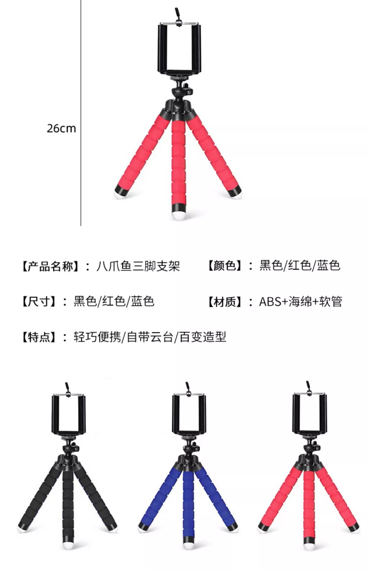 문어 휴대 전화 스탠드 데스크탑 게으른 삼각대 라이브 삼각형 클립 다기능 야외 촬영 셀카 스탠드스토어 가기