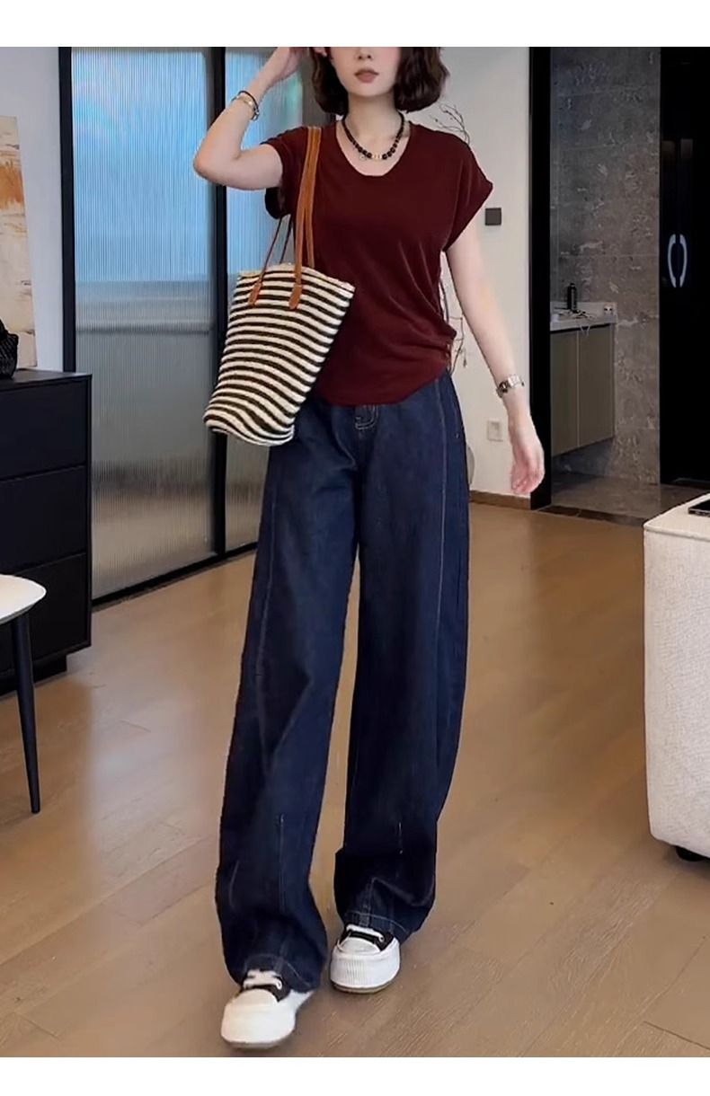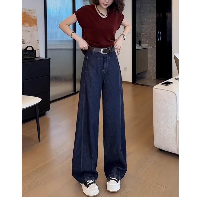 청바지 여성 테이퍼 마체 테 바지 가을 2024 새로운 느슨한 가을 넓은 다리 높은 허리 할란 바나나 바지 얇은스토어 가기