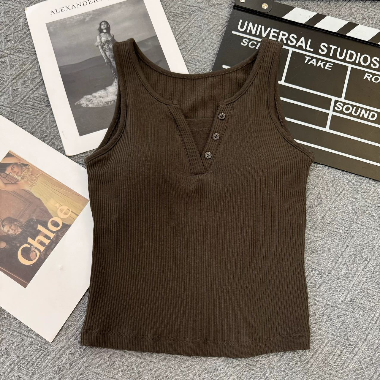 가을과 겨울 빛과 따뜻한 면 가짜 투피스 카미솔 고정 컵 올 매치 버튼 디자인 센스 슬림 핏 슬리밍 탑스토어 가기