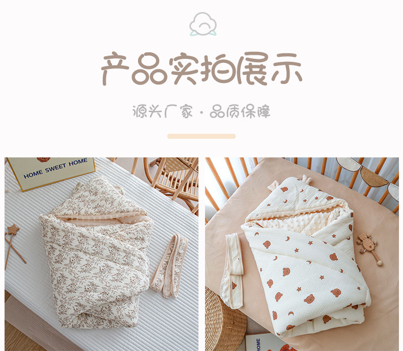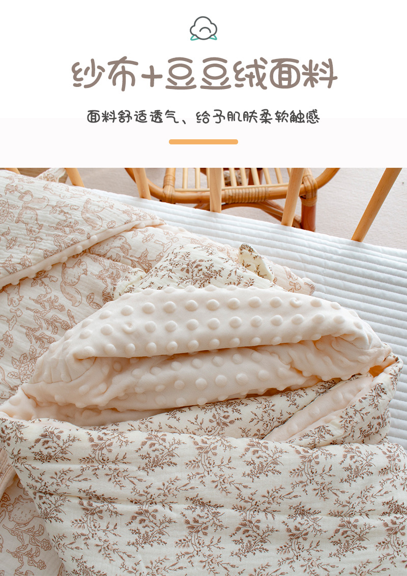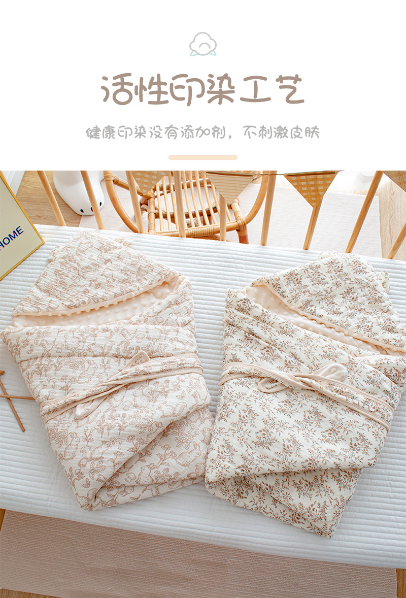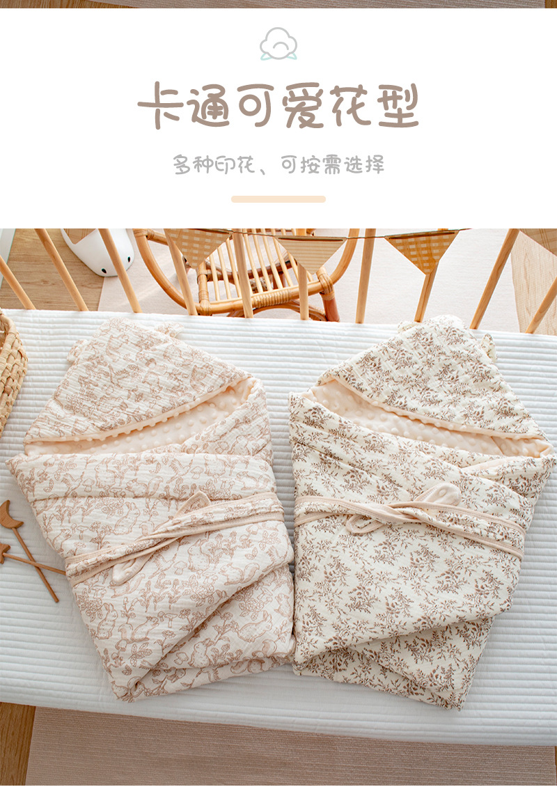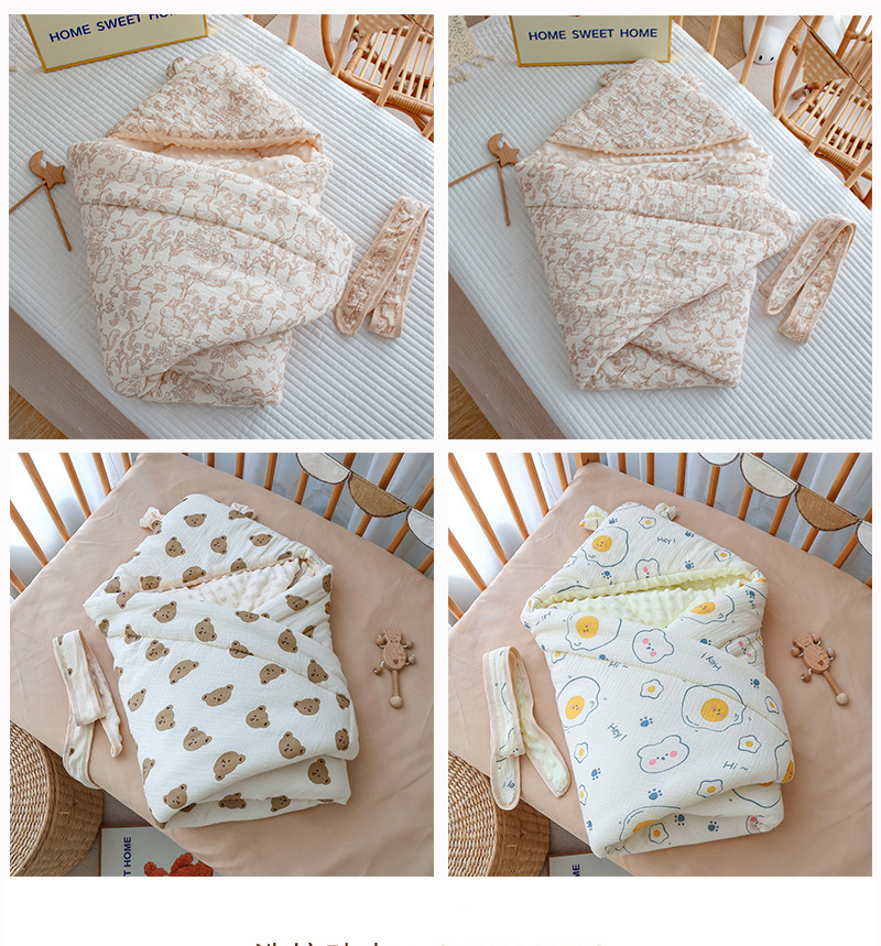 아기 거즈 퀼트 패딩 두꺼운 가을과 겨울 따뜻한 귀여운 짧은 귀 신생아 가방 완두콩 양털스토어 가기
