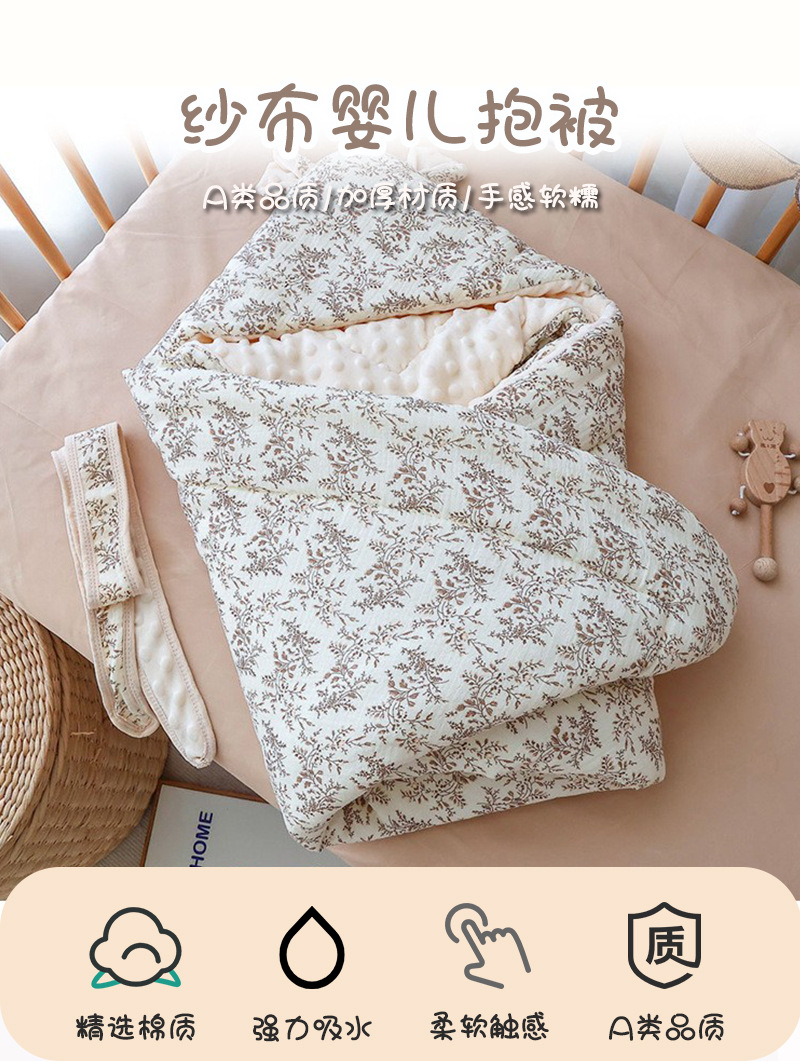아기 거즈 퀼트 패딩 두꺼운 가을과 겨울 따뜻한 귀여운 짧은 귀 신생아 가방 완두콩 양털