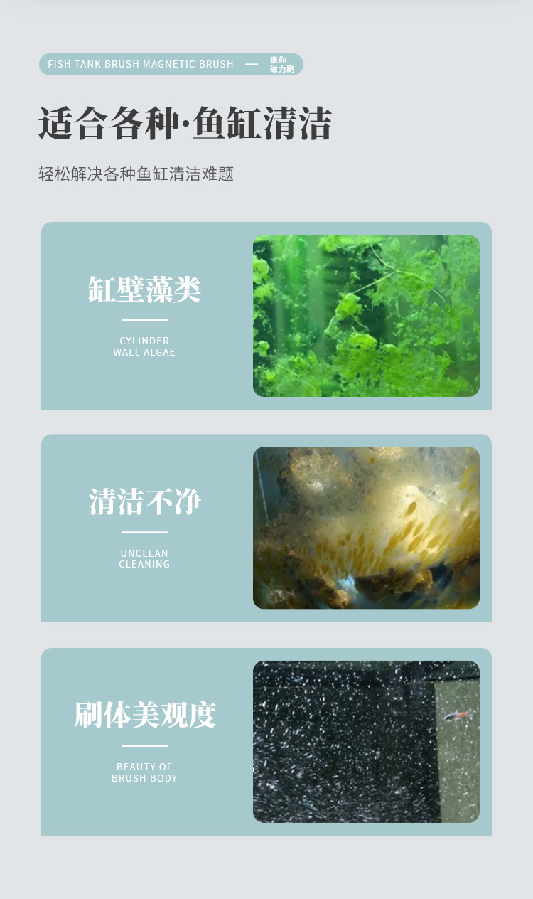 작은 미니 마그네틱 브러시 생선 탱크 브러시 조류 제거 유리 브러시 청소 도구 이끼 그린 조류 슈퍼 흡입
