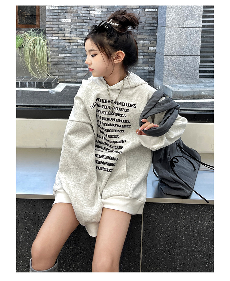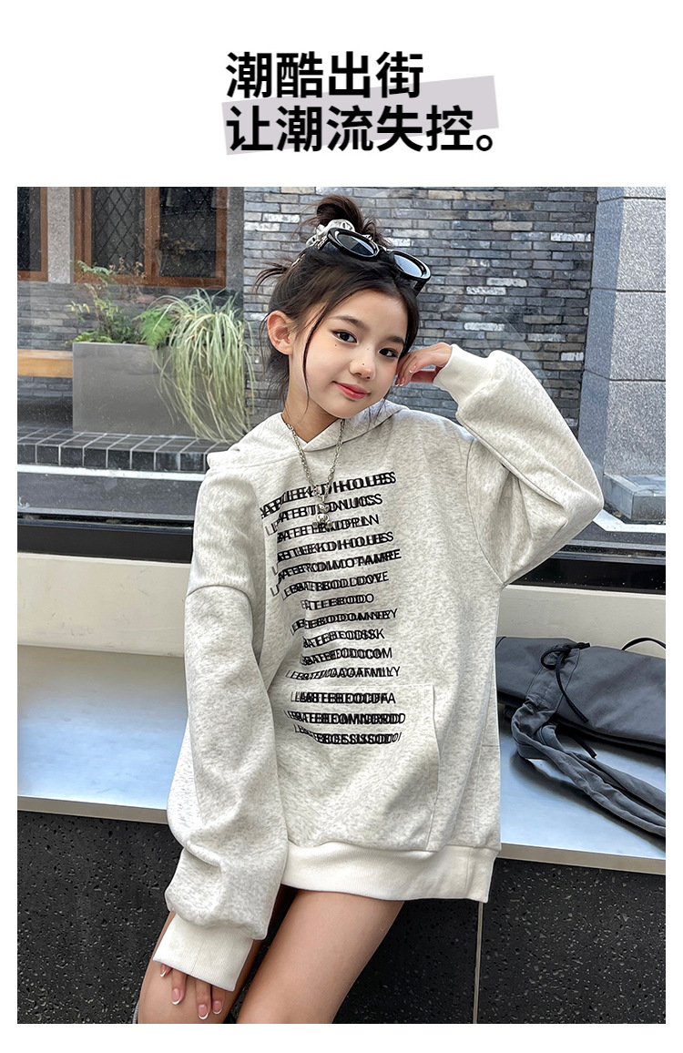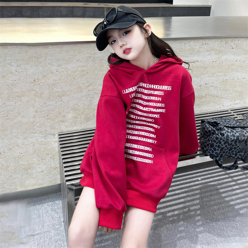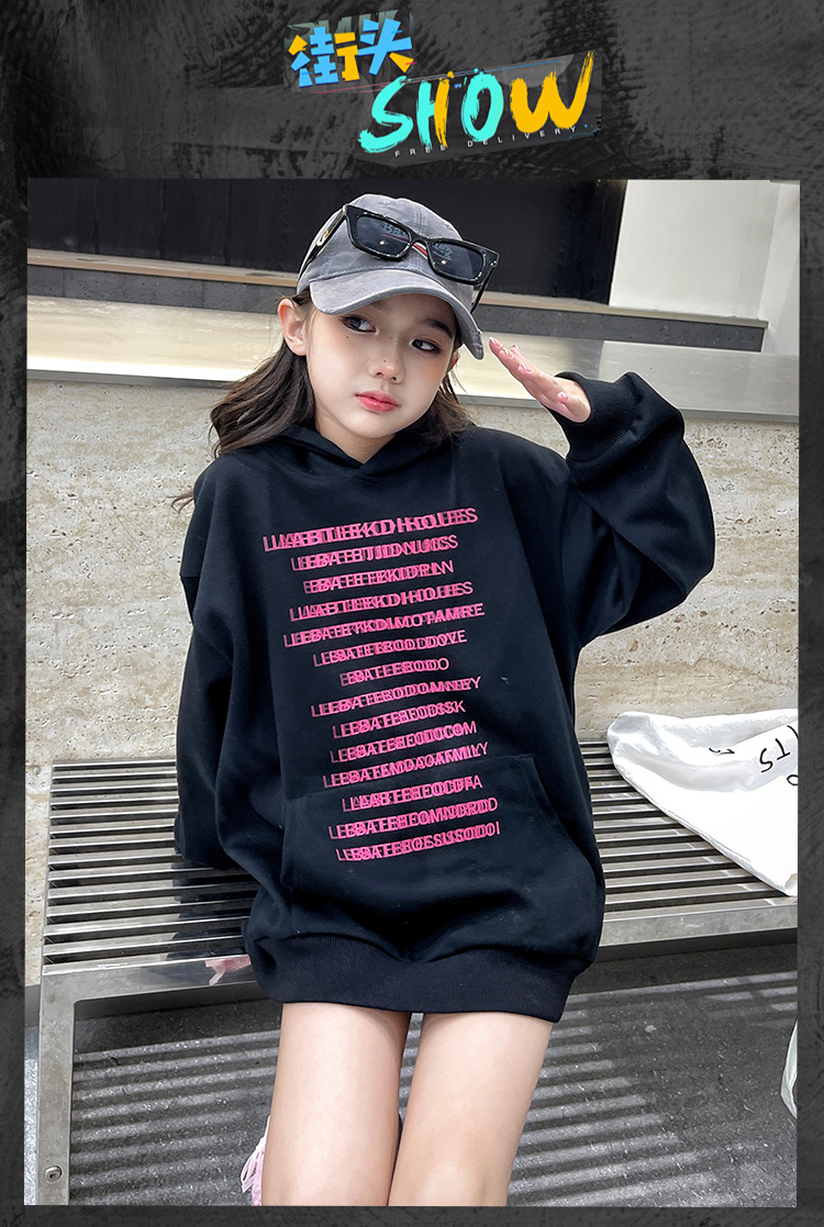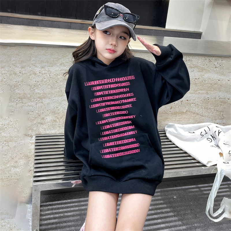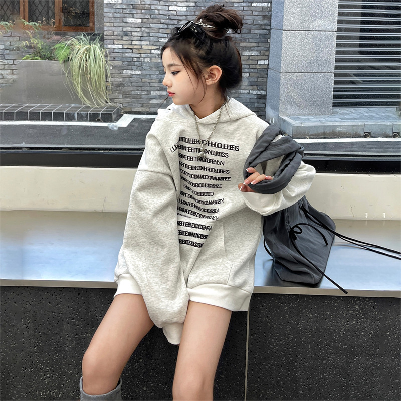 봄과 가을을위한 소녀 스웨터 2024 새로운 스타일 어린이 서양식 긴팔 가을 옷 어린이 가을 중간 길이 후드 탑스토어 가기