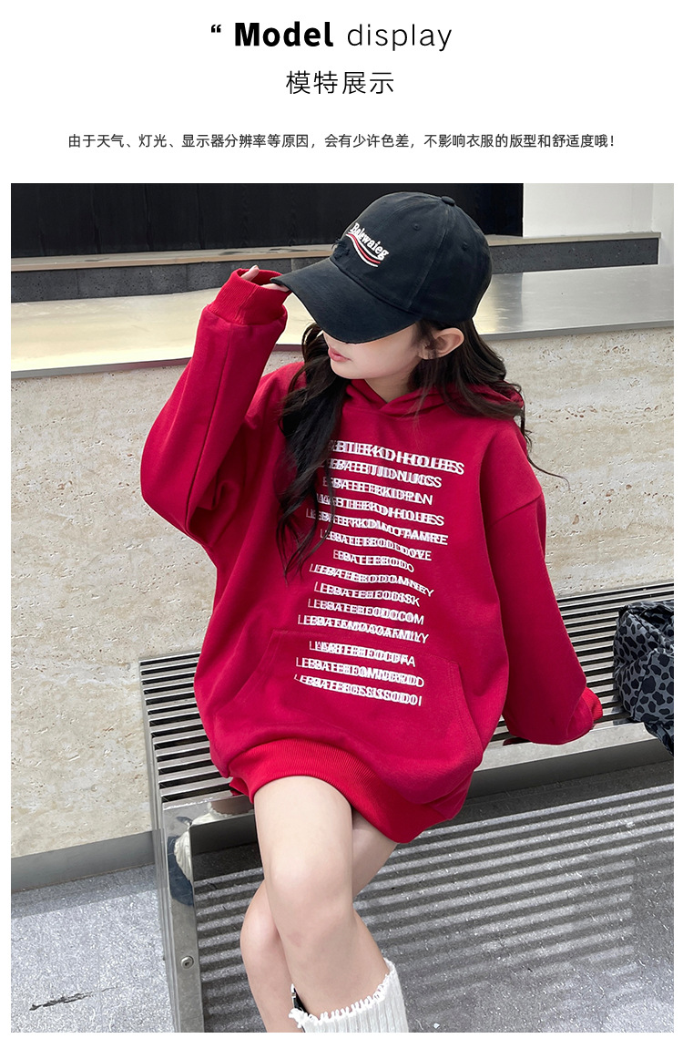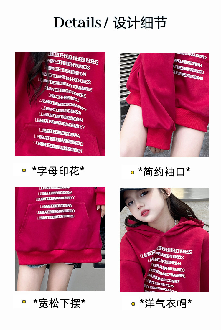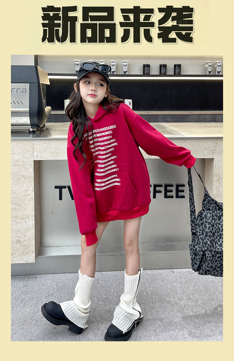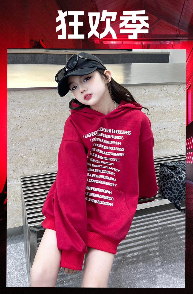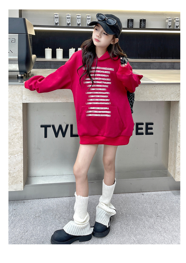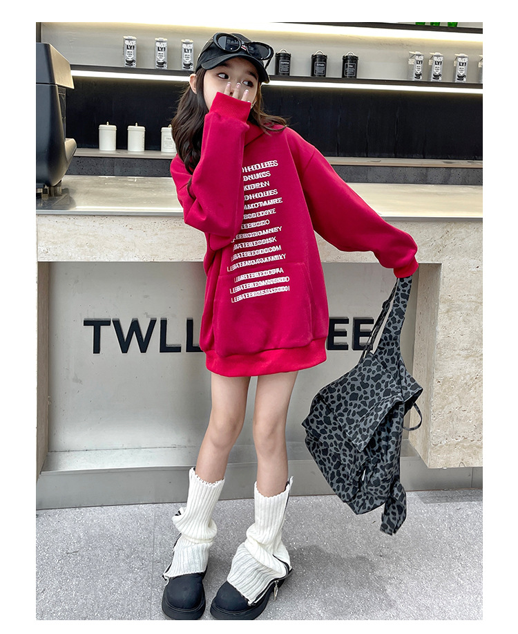 봄과 가을을위한 소녀 스웨터 2024 새로운 스타일 어린이 서양식 긴팔 가을 옷 어린이 가을 중간 길이 후드 탑스토어 가기