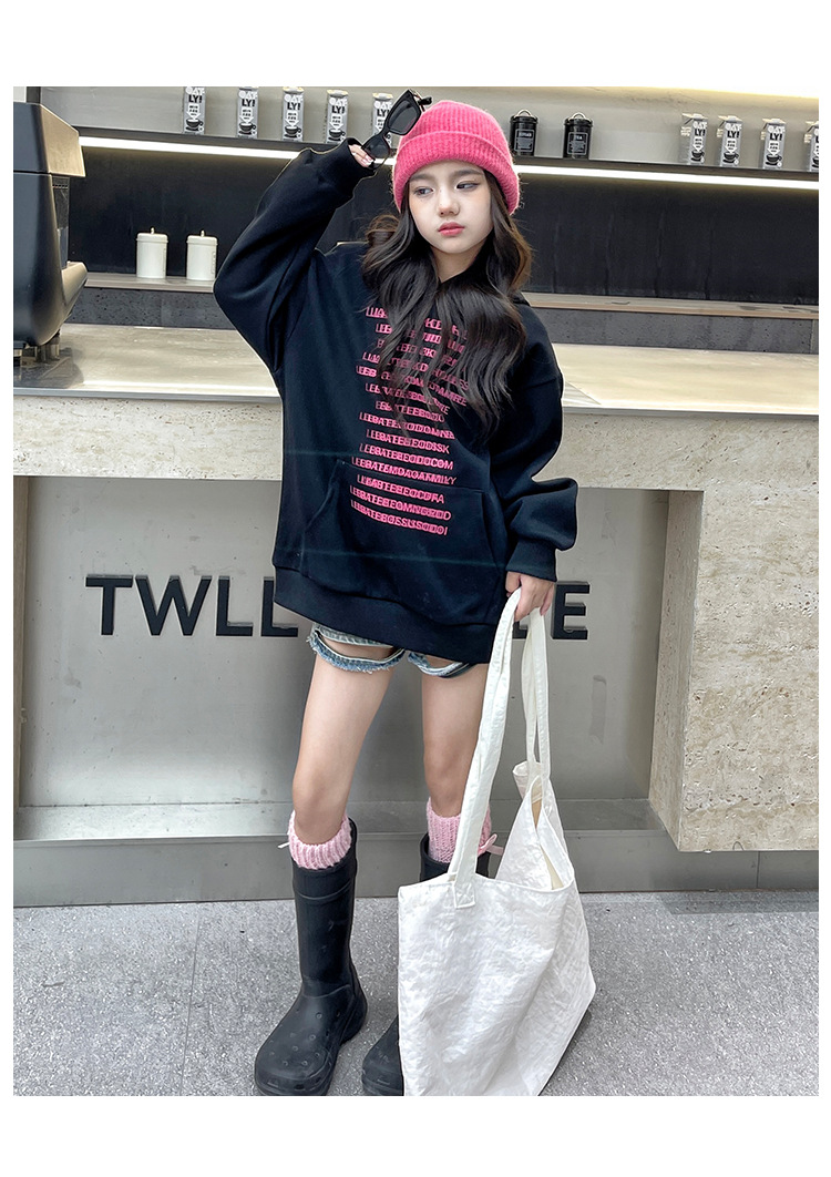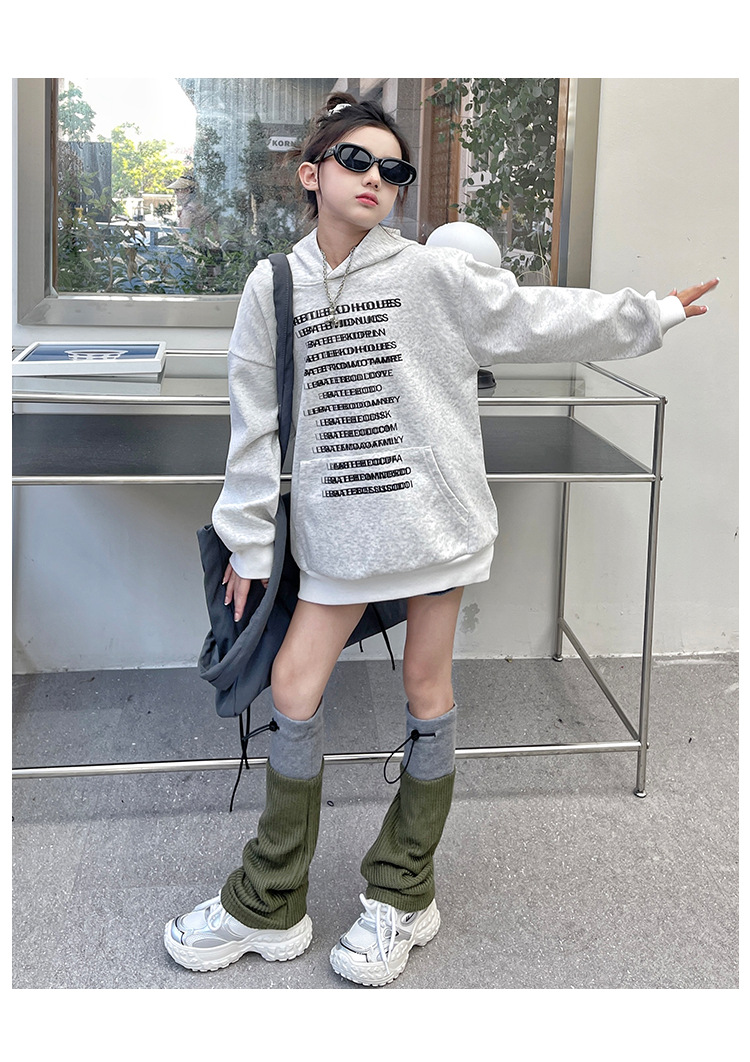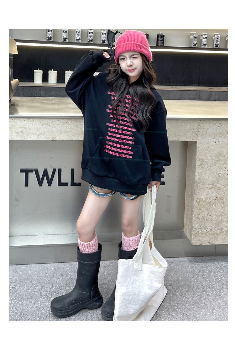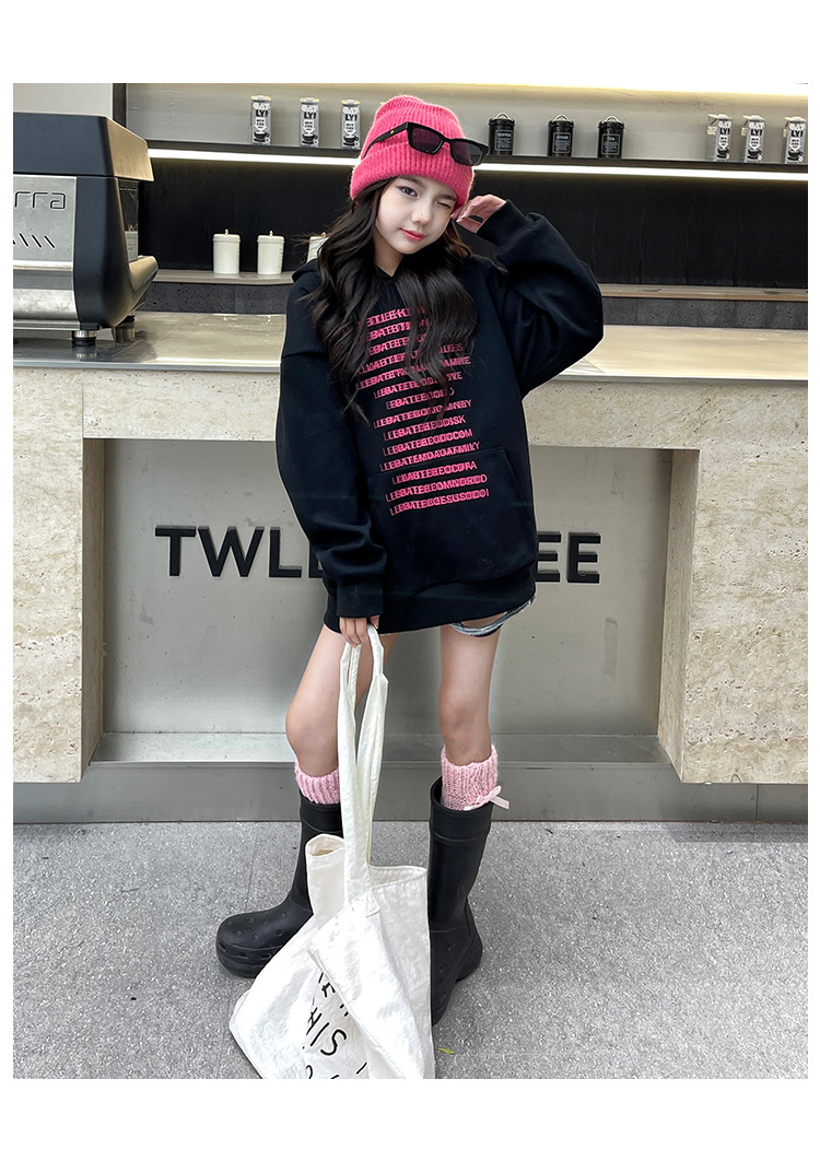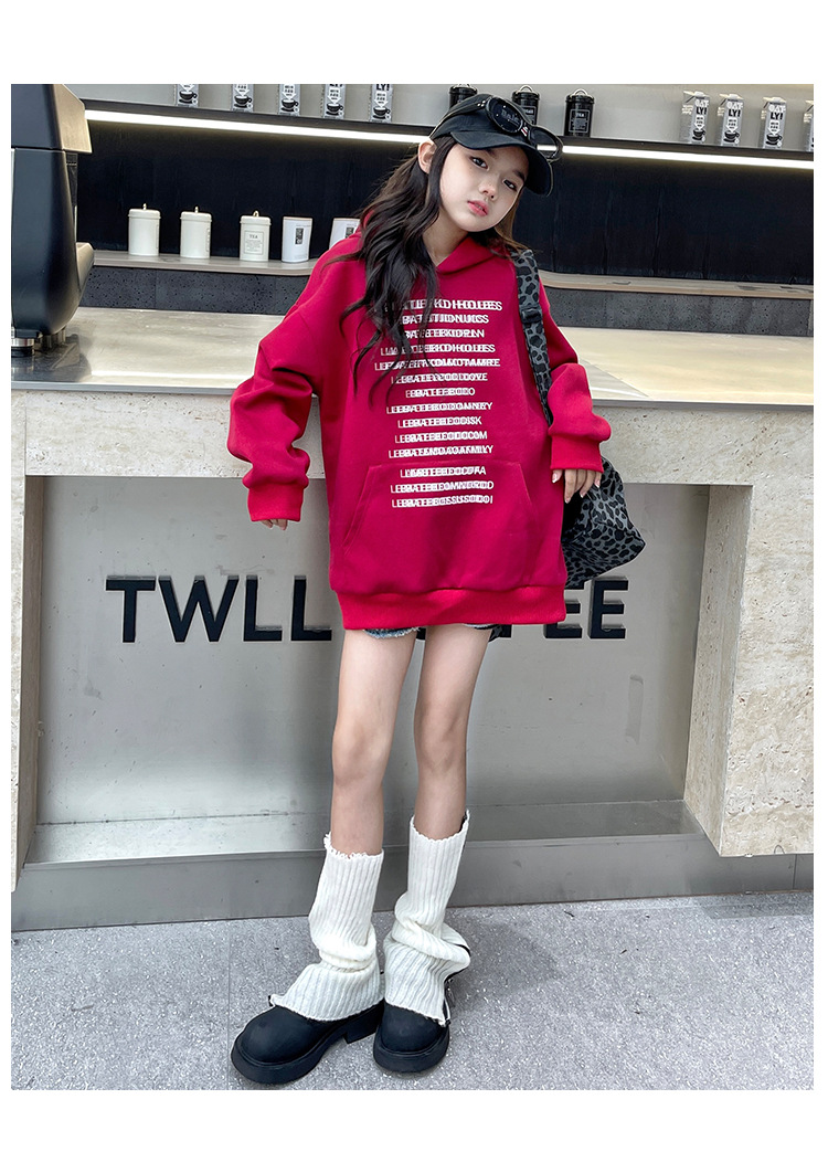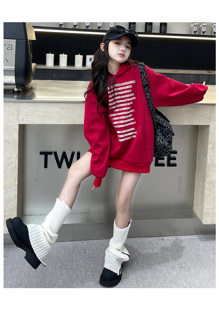 봄과 가을을위한 소녀 스웨터 2024 새로운 스타일 어린이 서양식 긴팔 가을 옷 어린이 가을 중간 길이 후드 탑스토어 가기