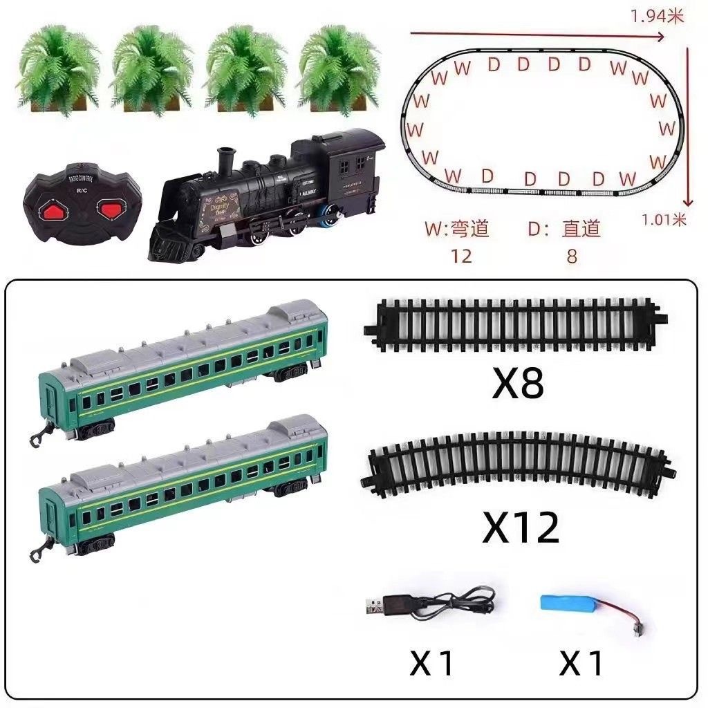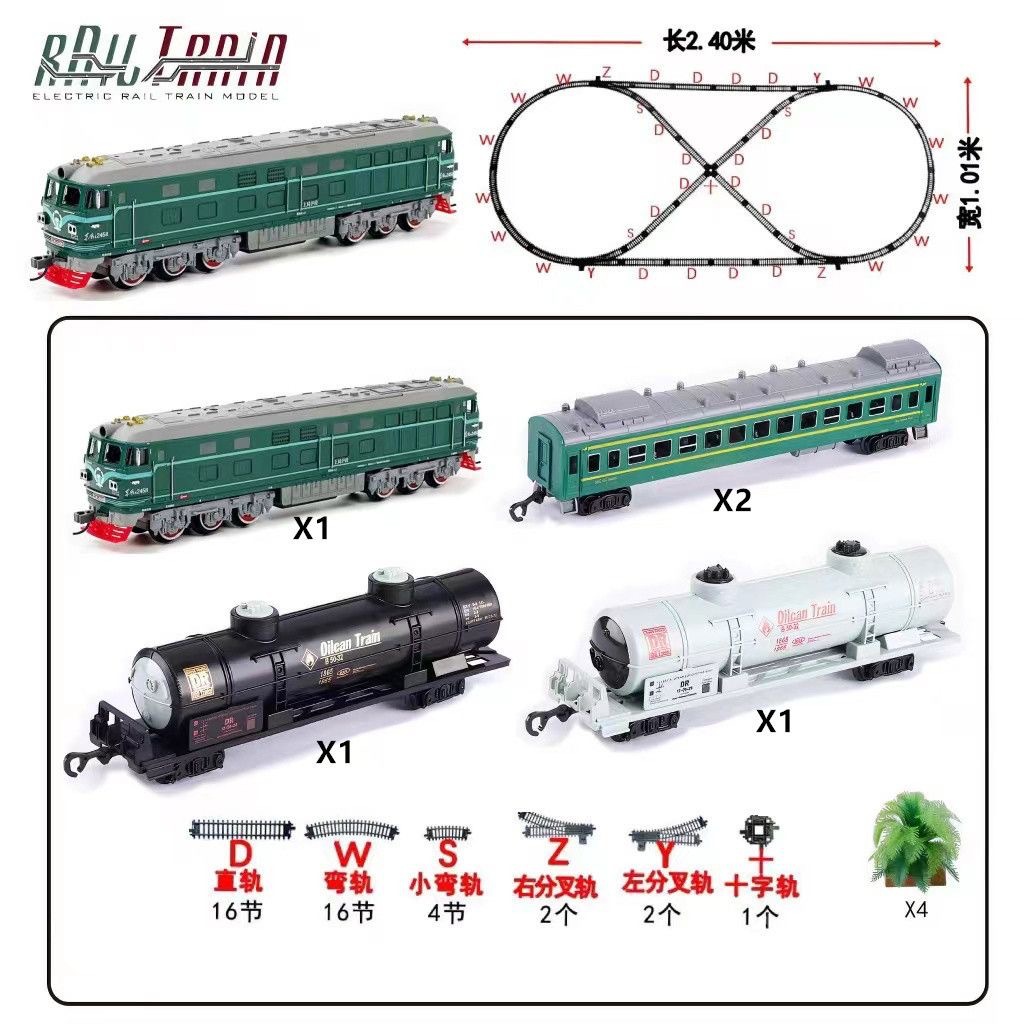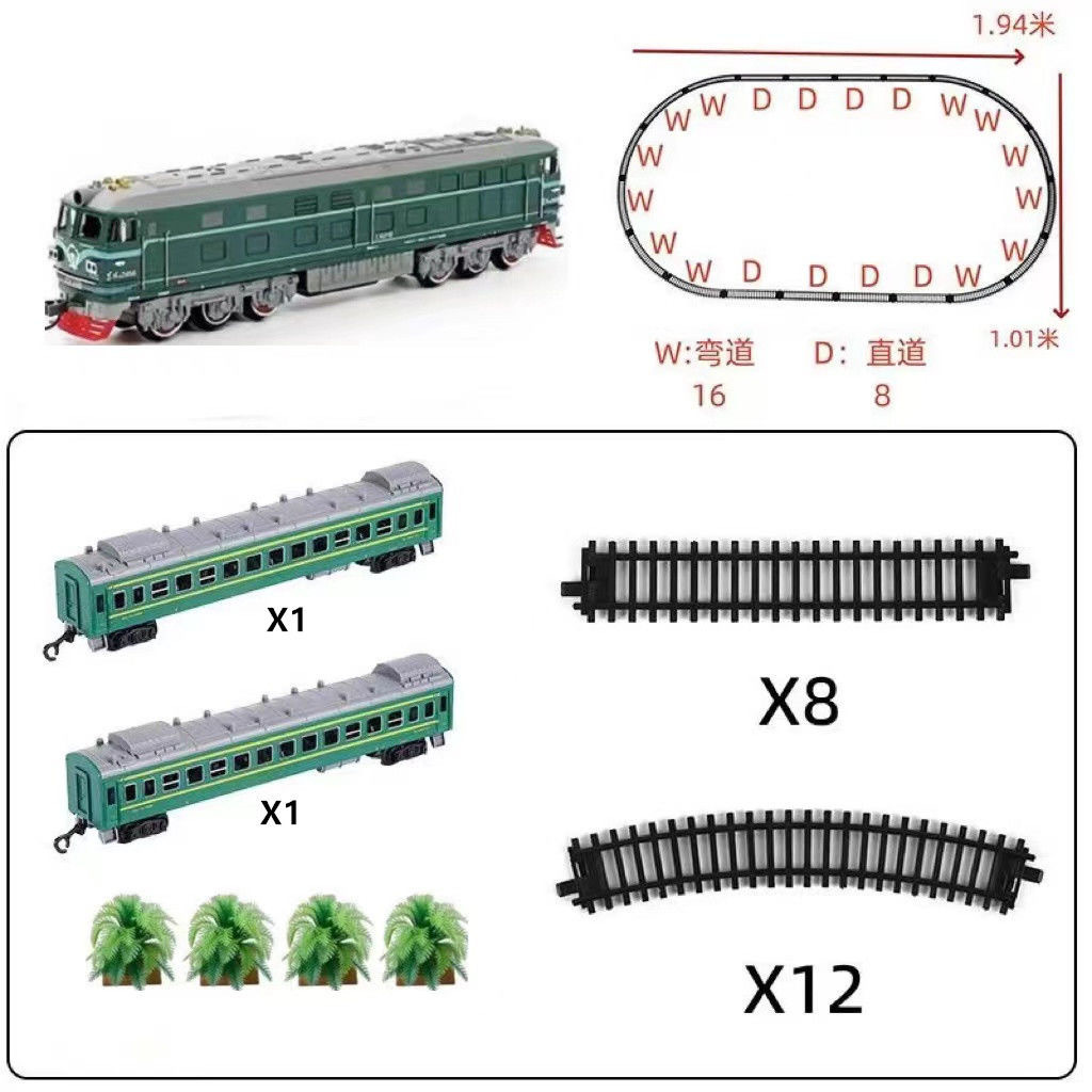 녹색 가죽 Dongfeng 4B 기차 전기 작은 기차 트랙 세트 고속 철도 수송 신칸센 마차 소년 장난감