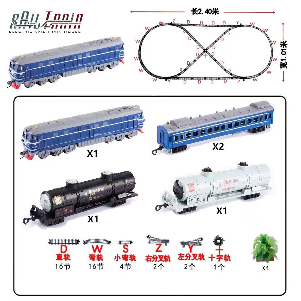 • 원격 제어 기관차 + 파란색 승용차 2개 + 트랙 5.5m