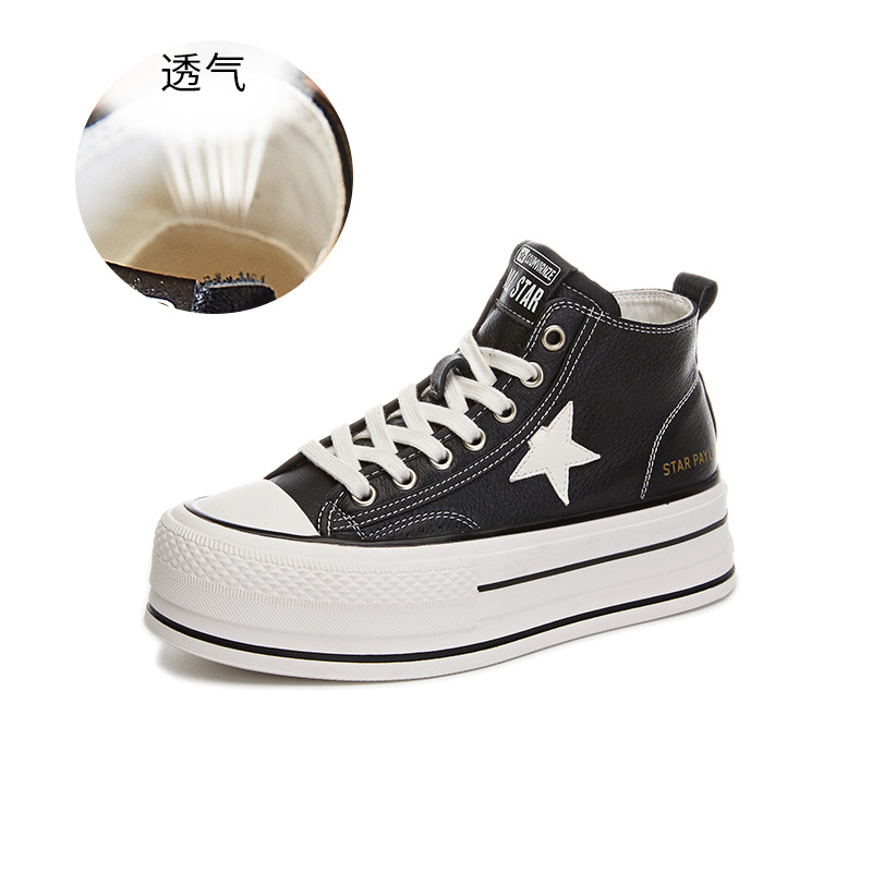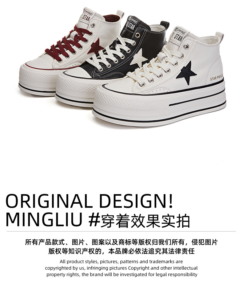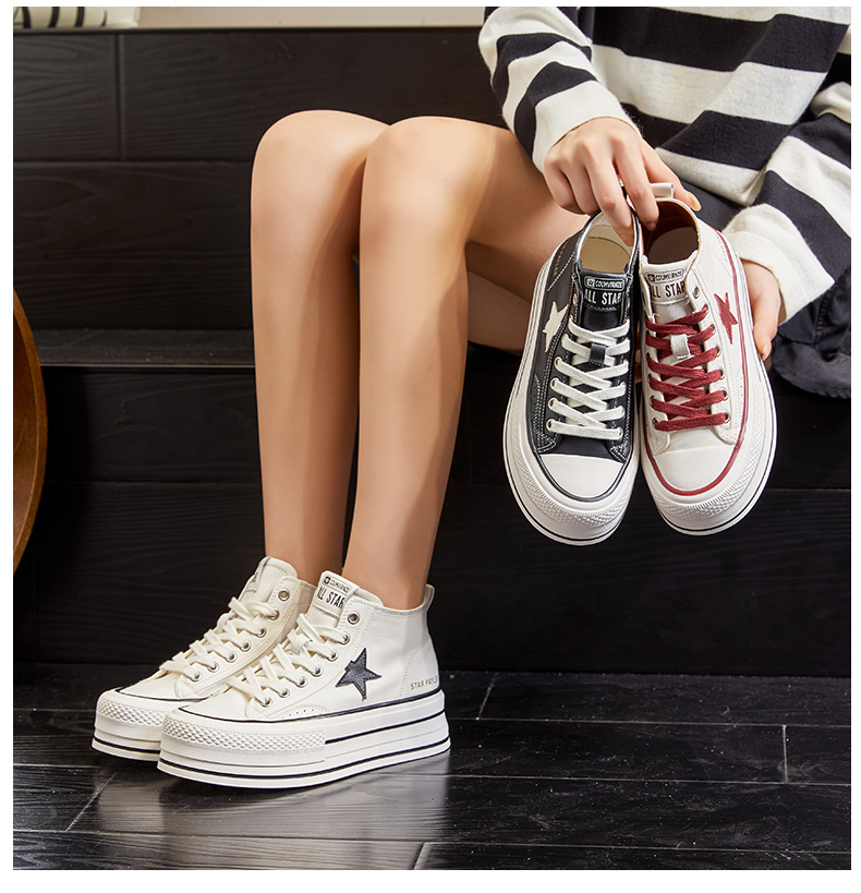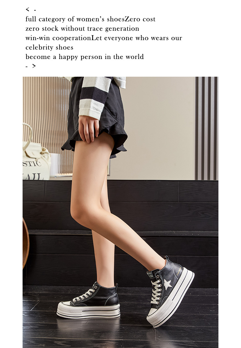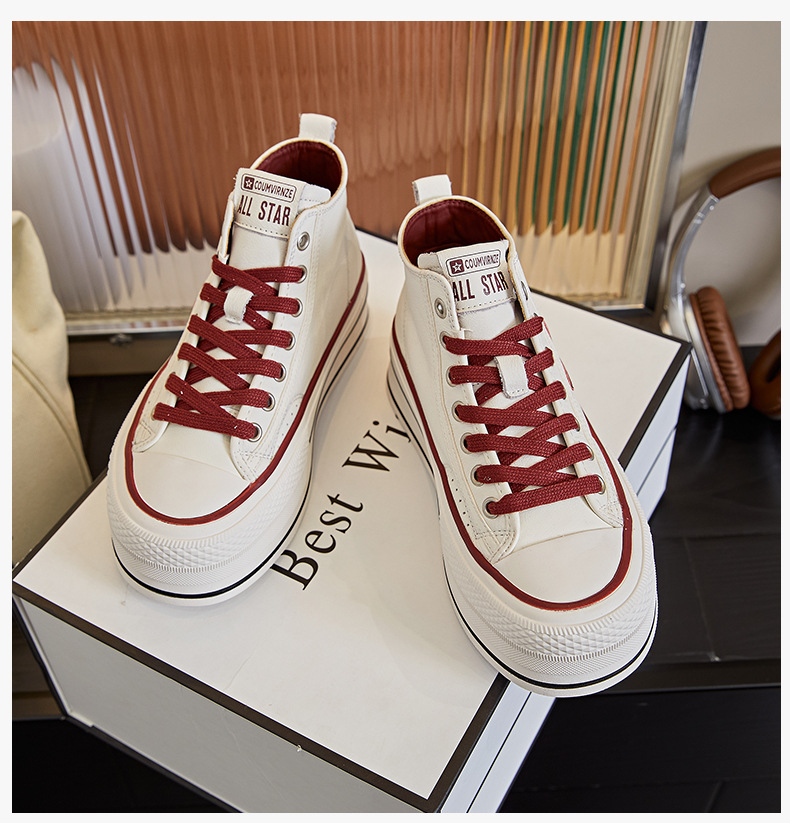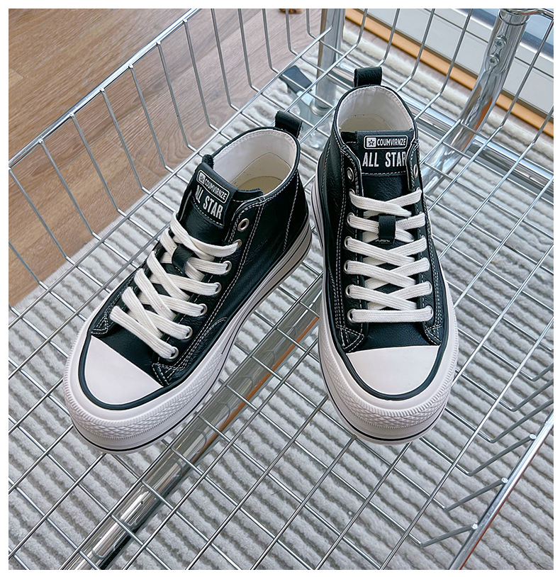 여성용 1층 소가죽 하이탑 화이트 슈즈, 2025 봄 신상 두꺼운 밑창 다용도 캐주얼 슈즈, 여성 패션 키높이 슈즈스토어 가기