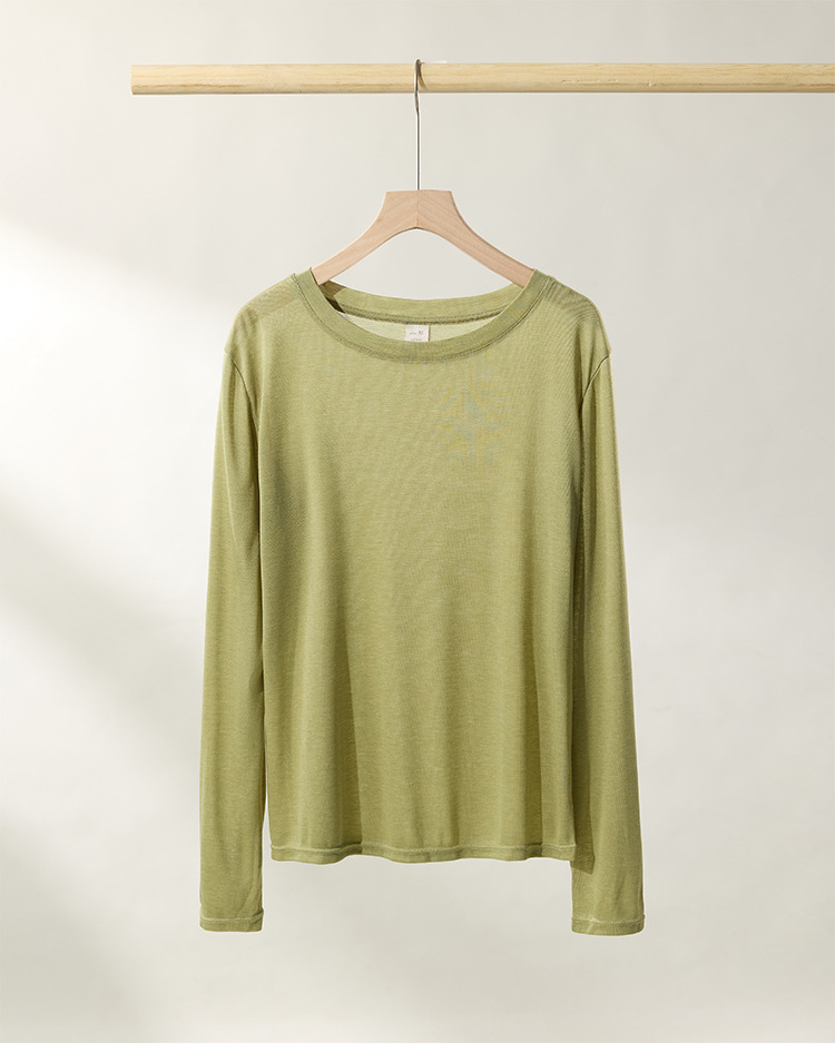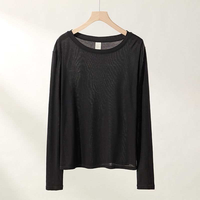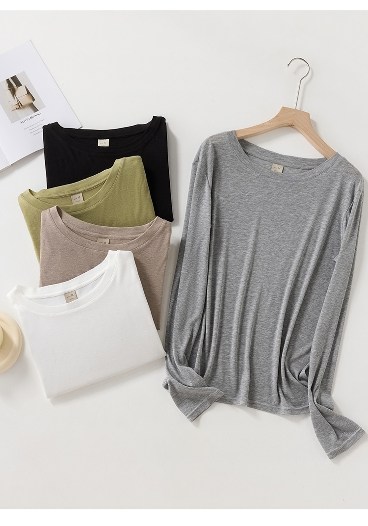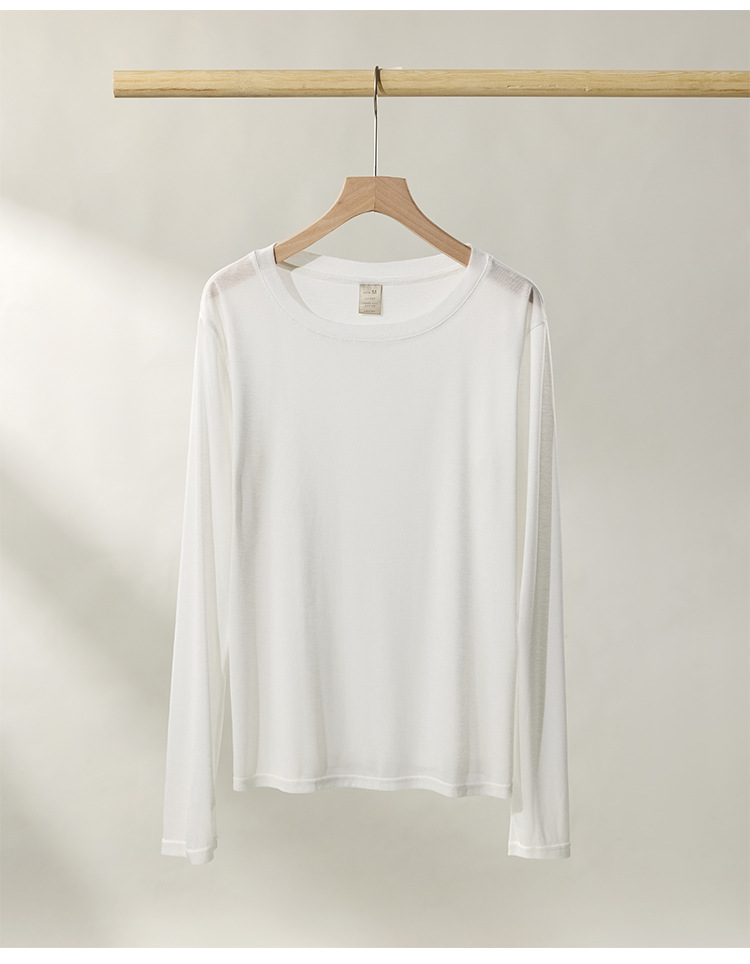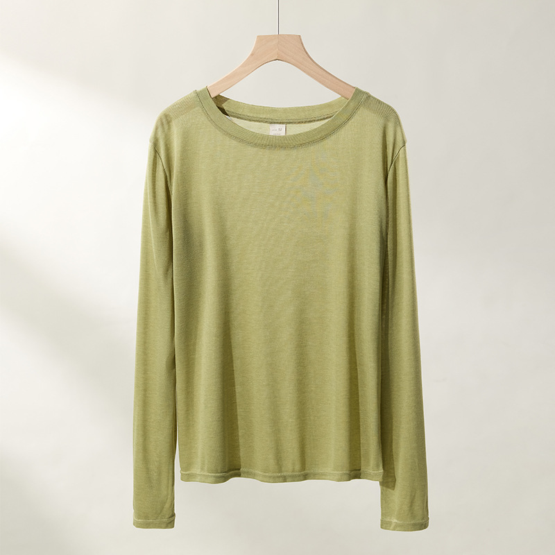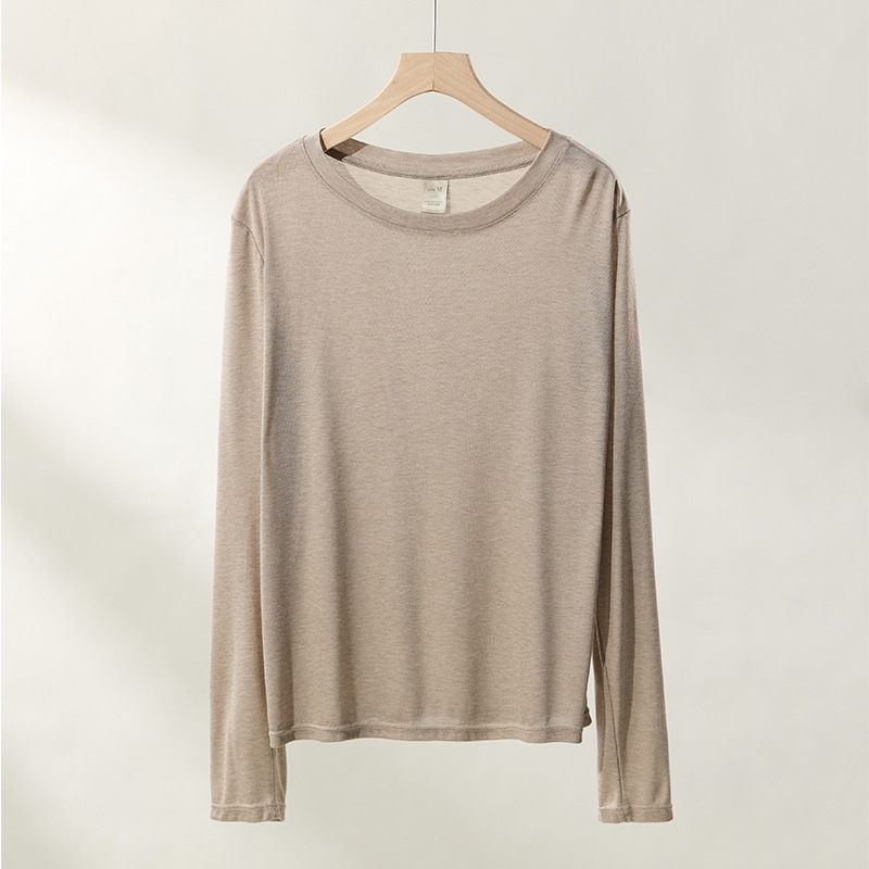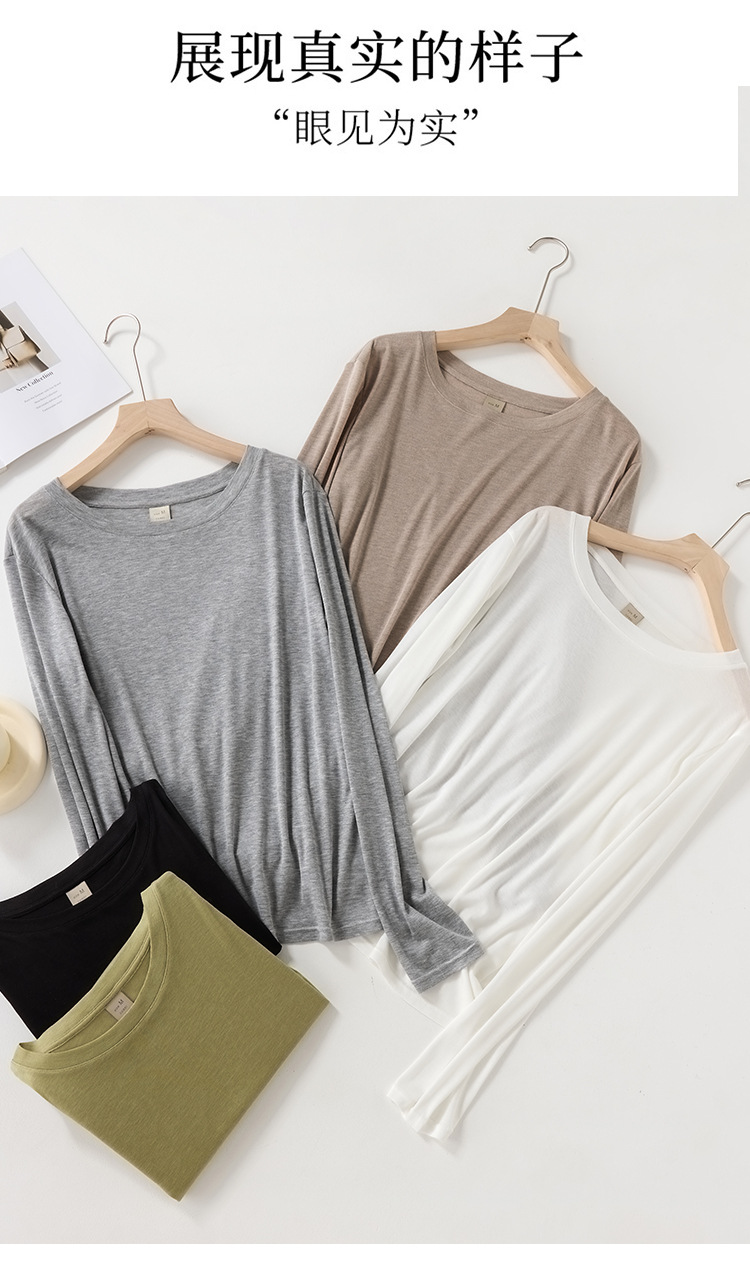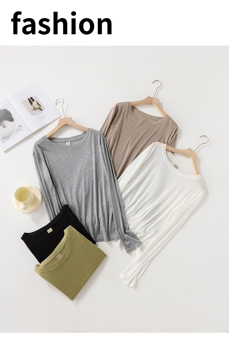 Lyocell Tencel 긴팔 티셔츠 여성용 봄과 가을 캐주얼베이스 탑 올 매치 슬림베이스 셔츠스토어 가기