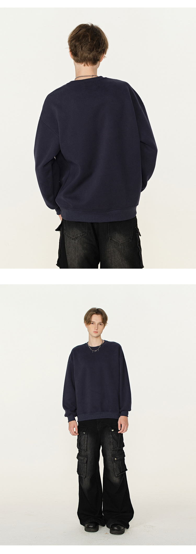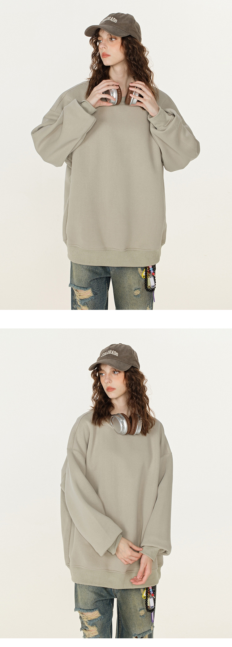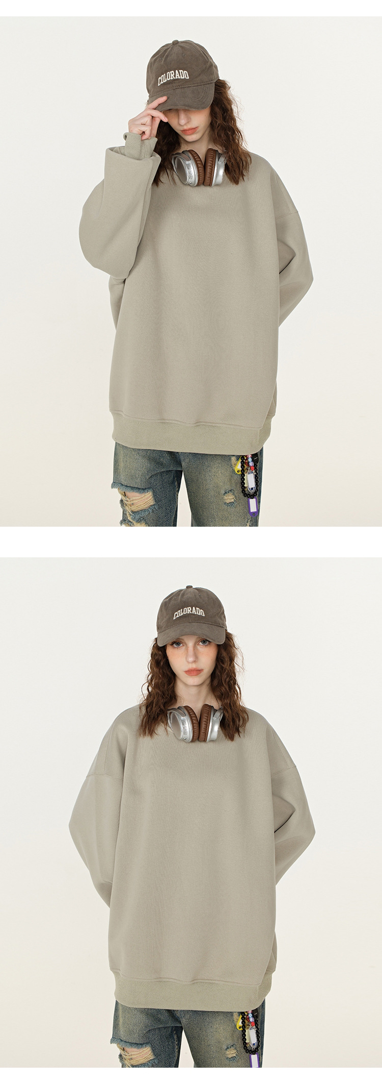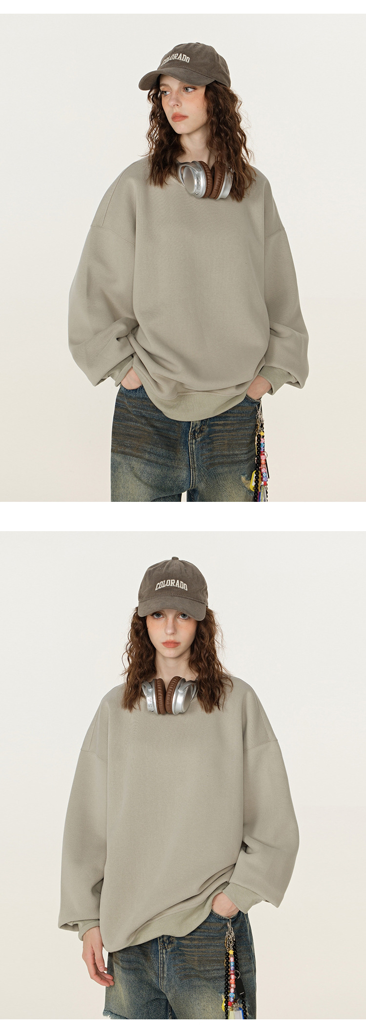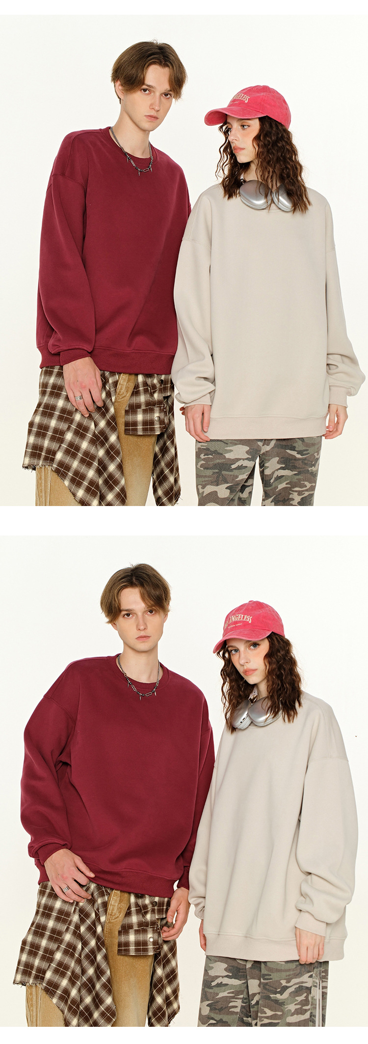 윤엔 아메리칸 레트로 라운드넥 스웨트셔츠 남녀공용 봄 가을 트렌디 만능 풀오버 단색 캐주얼 자켓스토어 가기