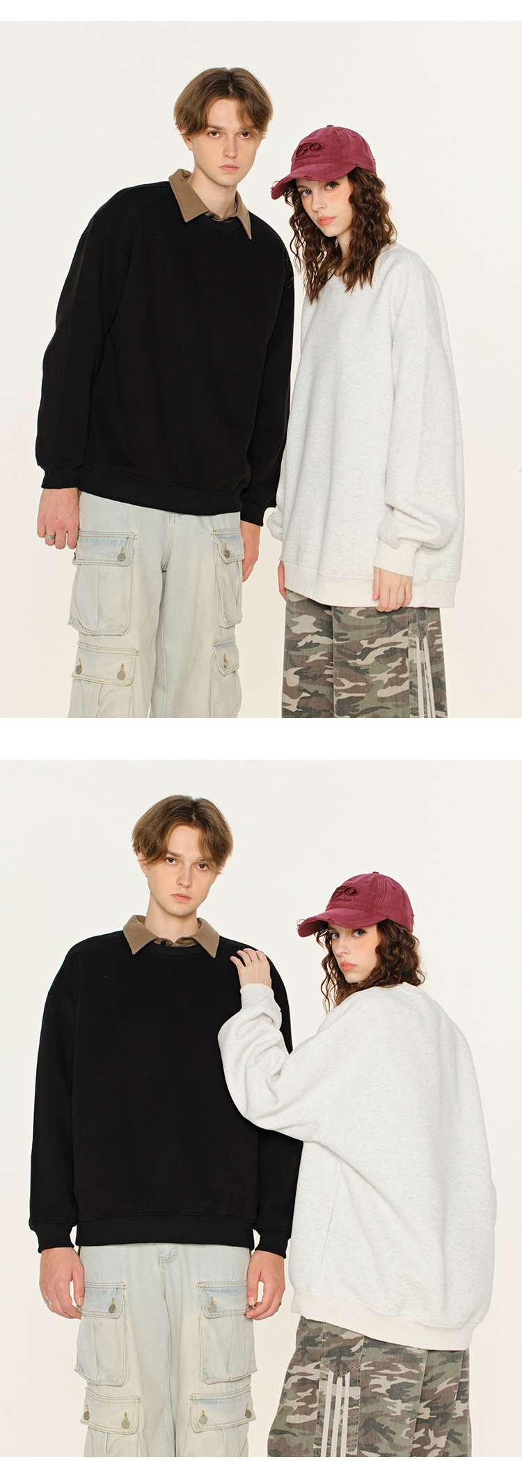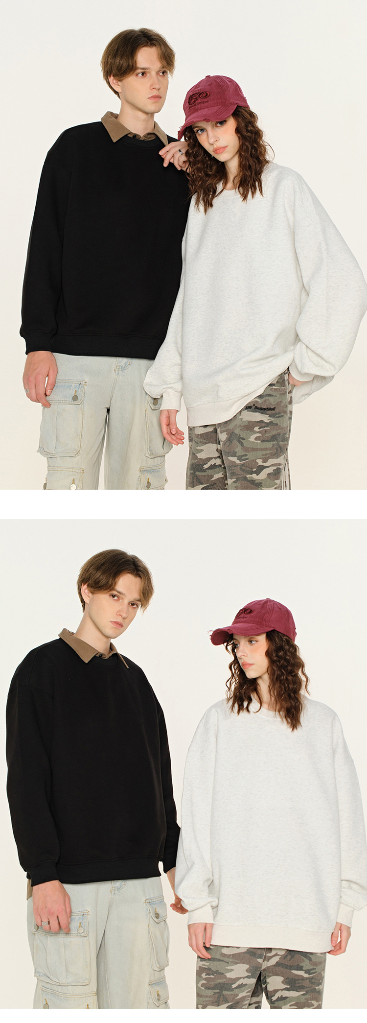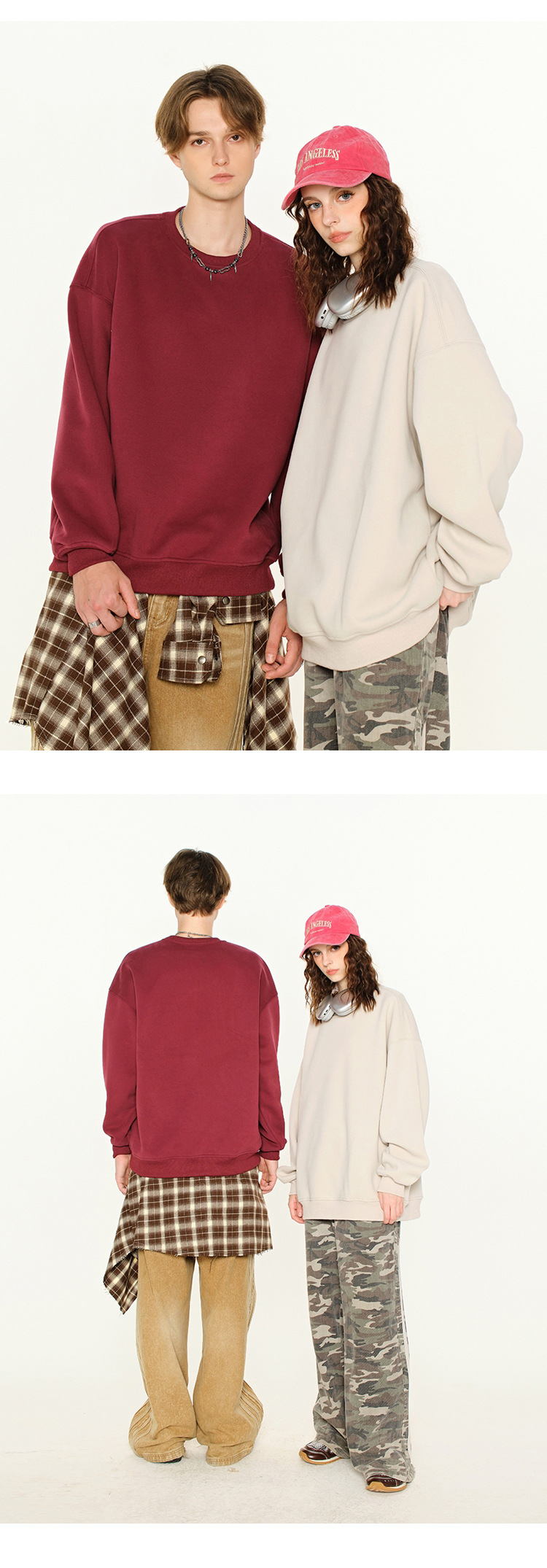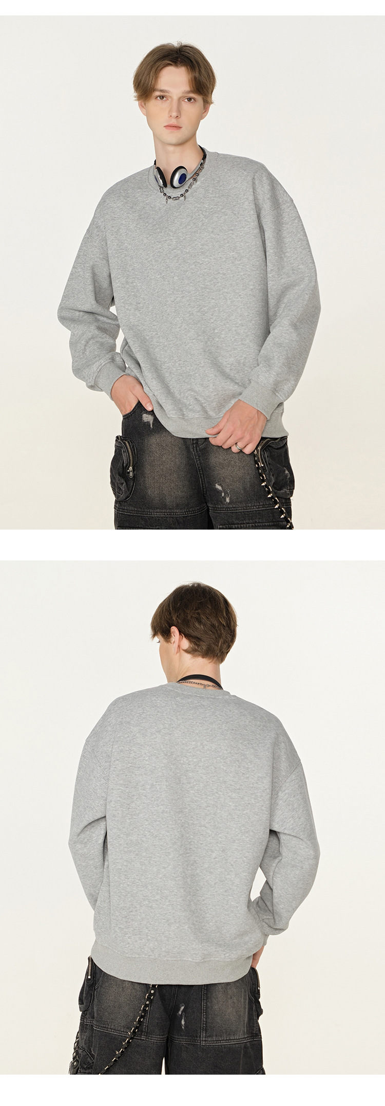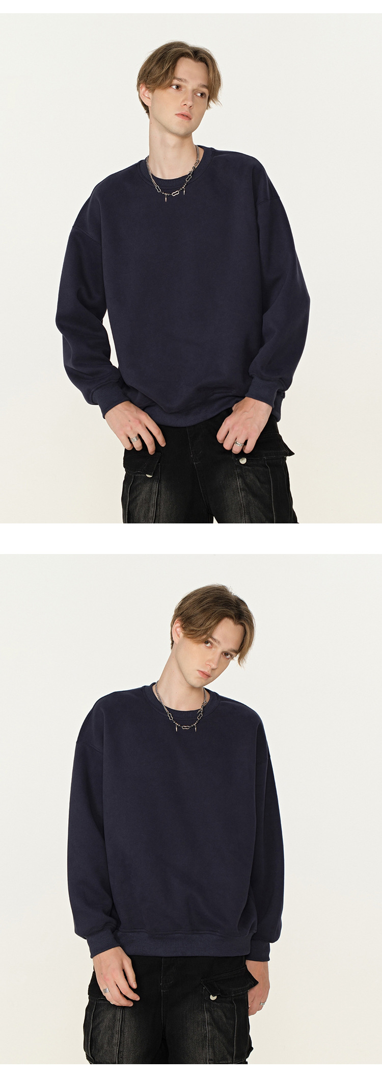 윤엔 아메리칸 레트로 라운드넥 스웨트셔츠 남녀공용 봄 가을 트렌디 만능 풀오버 단색 캐주얼 자켓스토어 가기
