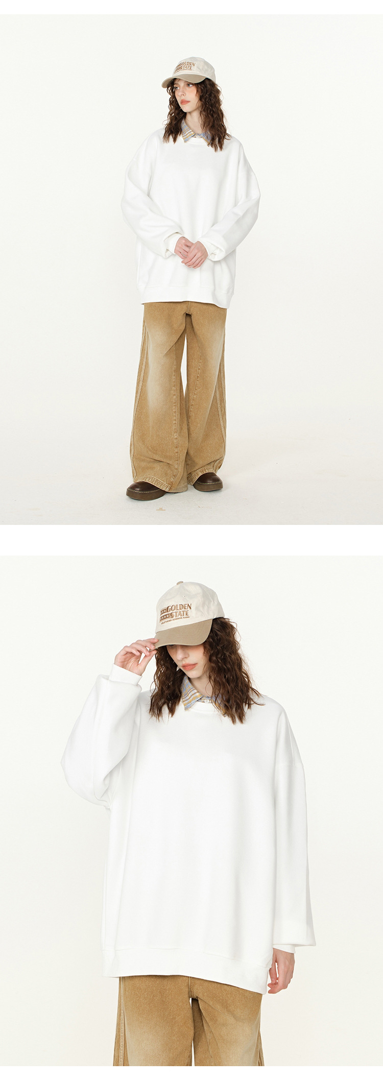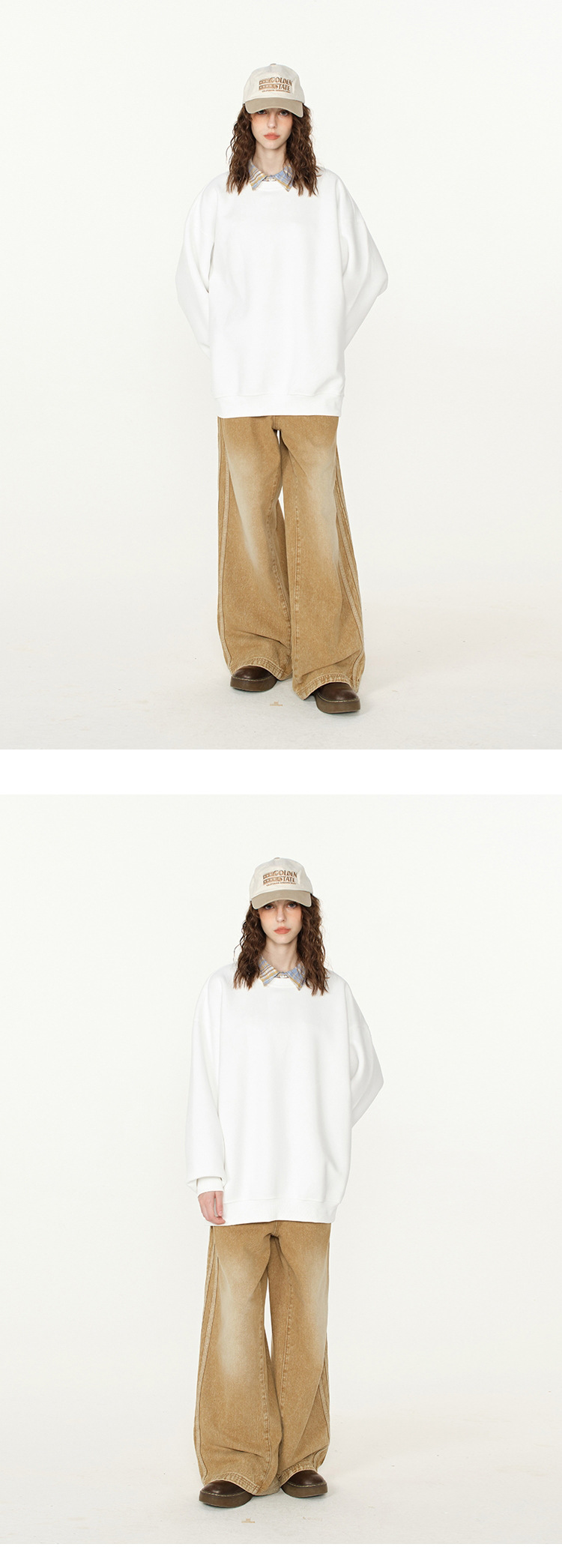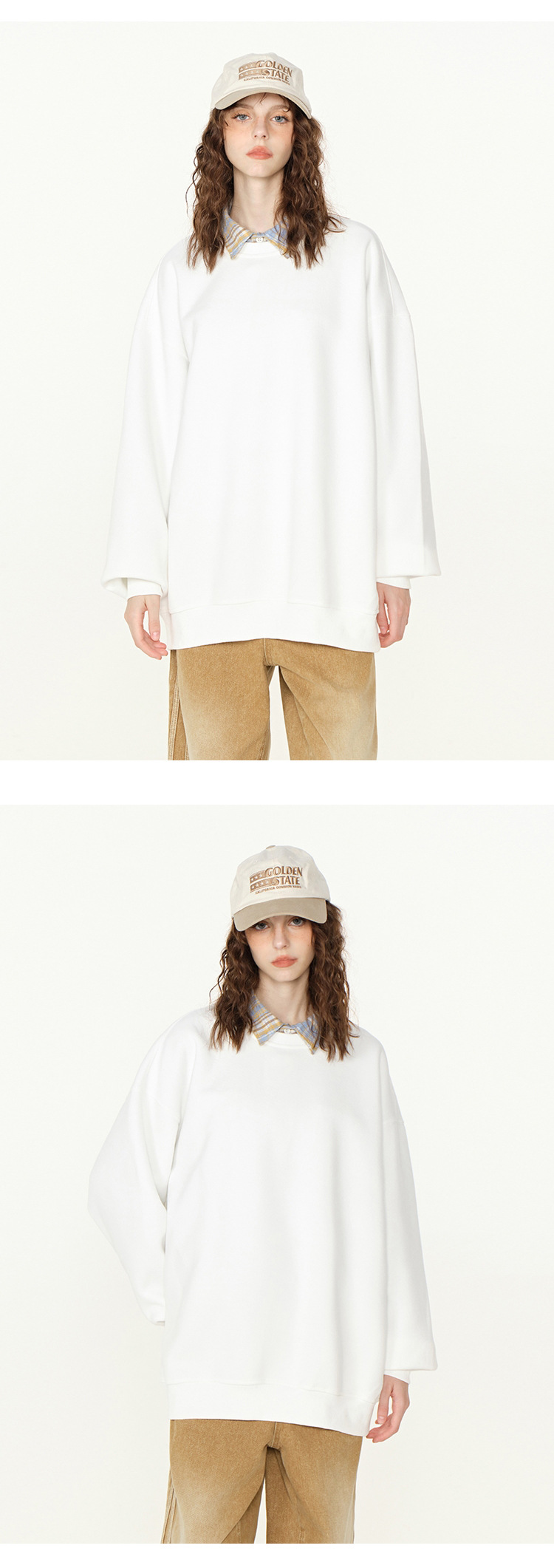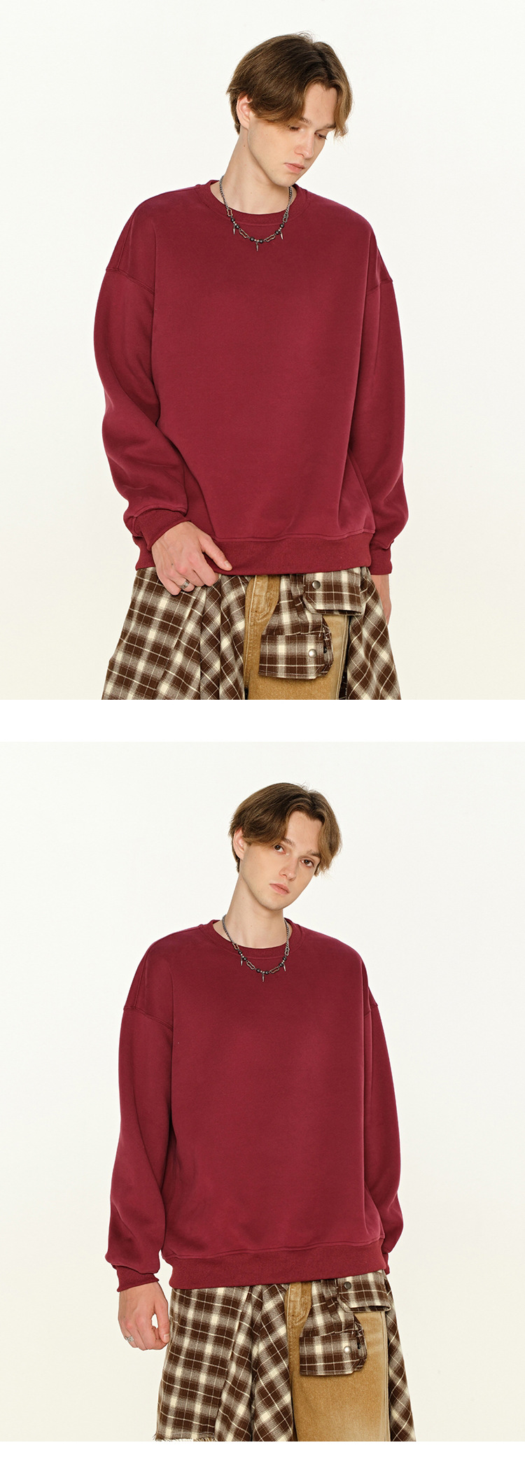 윤엔 아메리칸 레트로 라운드넥 스웨트셔츠 남녀공용 봄 가을 트렌디 만능 풀오버 단색 캐주얼 자켓스토어 가기