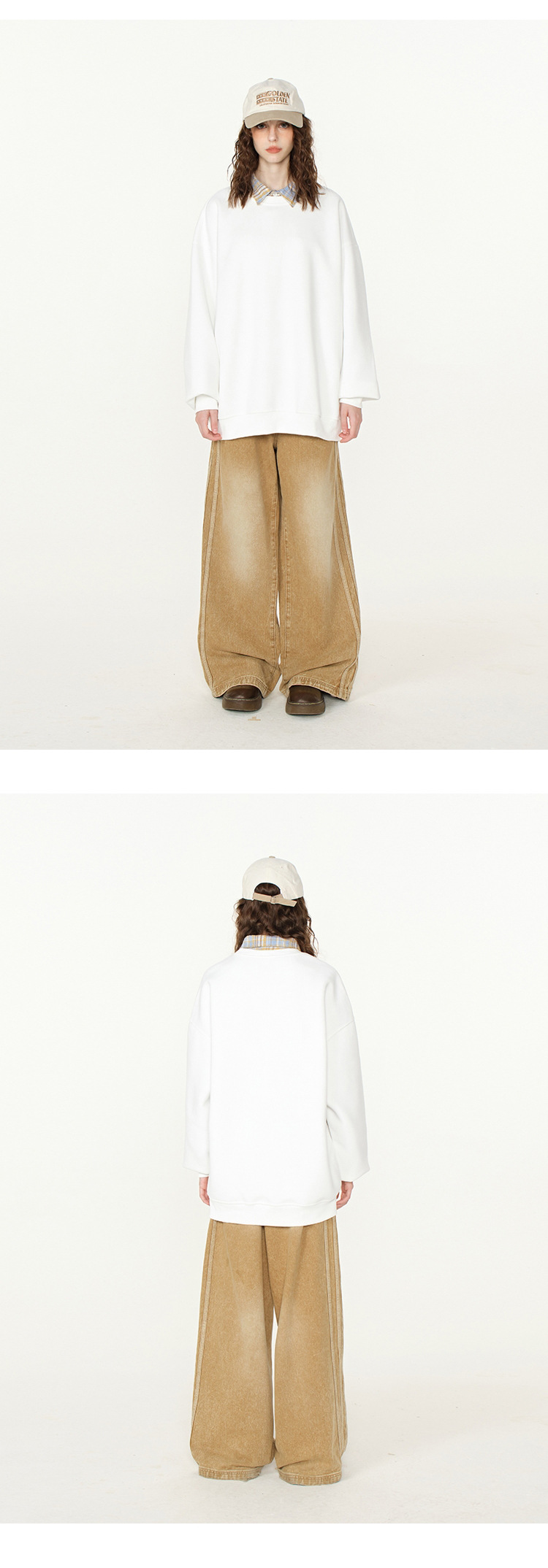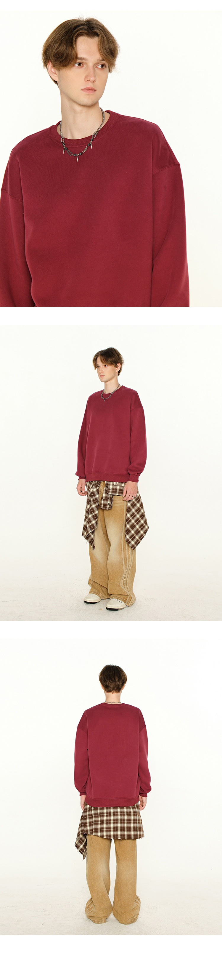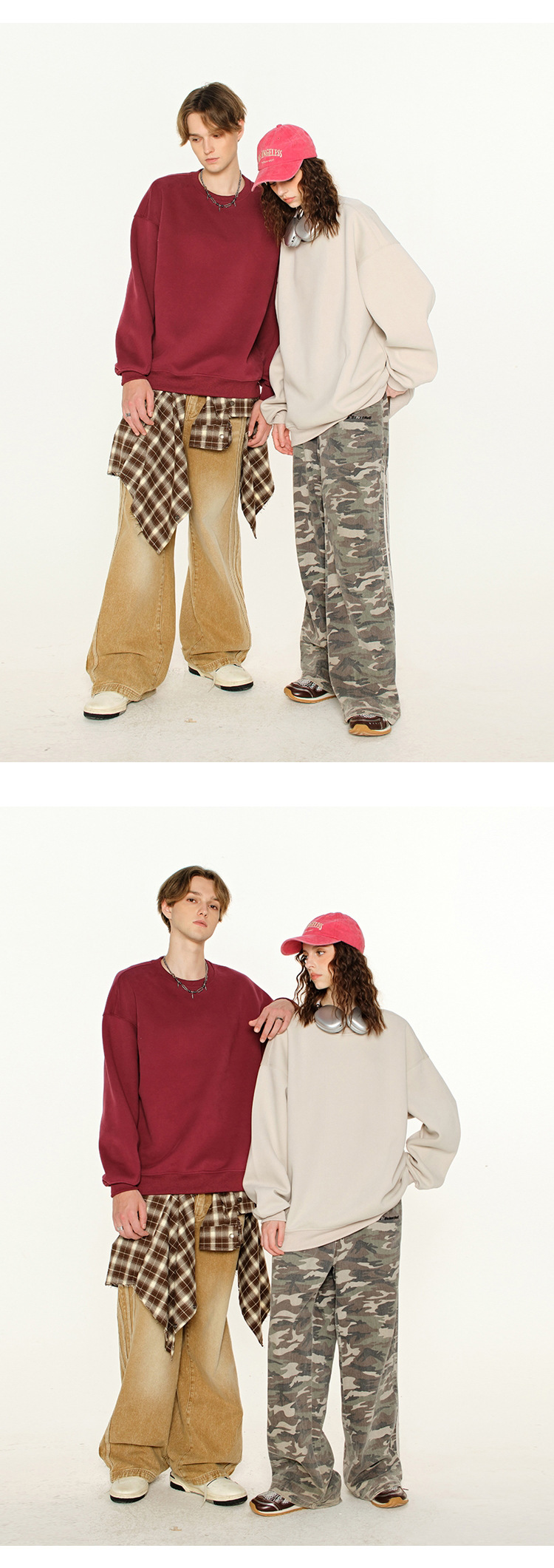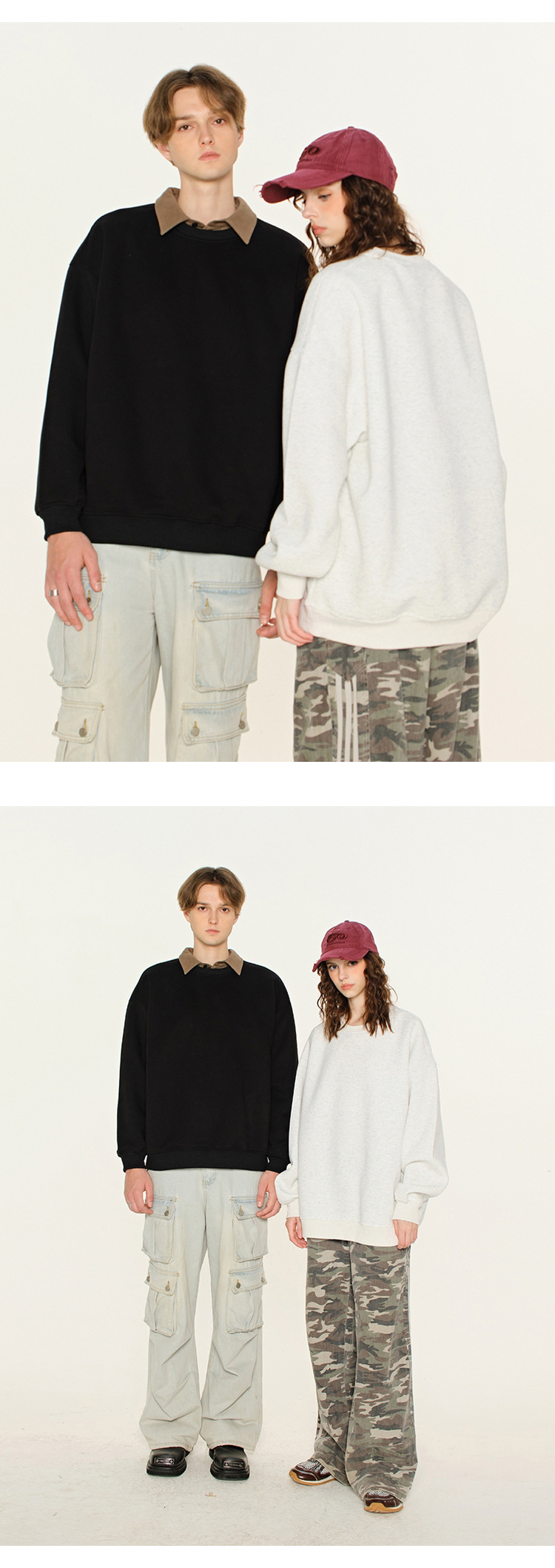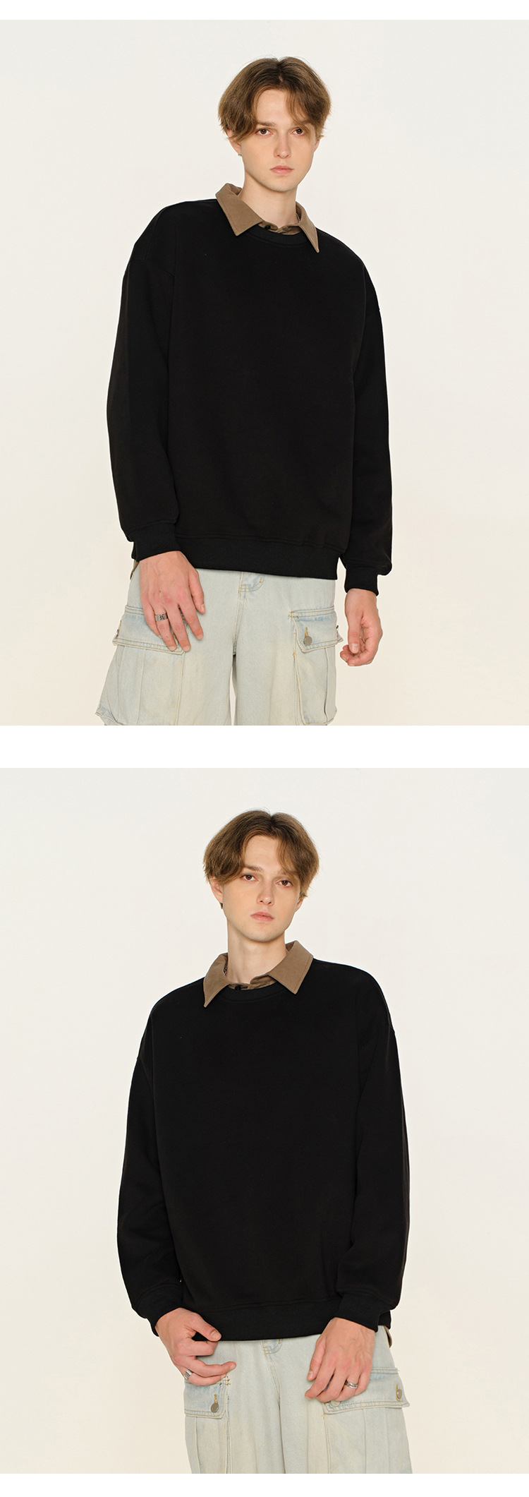 윤엔 아메리칸 레트로 라운드넥 스웨트셔츠 남녀공용 봄 가을 트렌디 만능 풀오버 단색 캐주얼 자켓스토어 가기