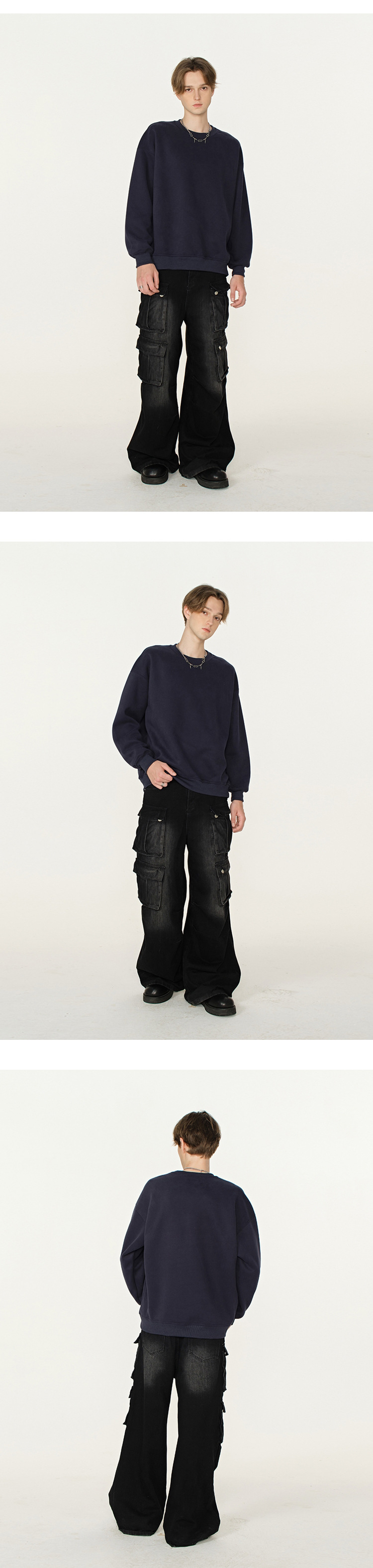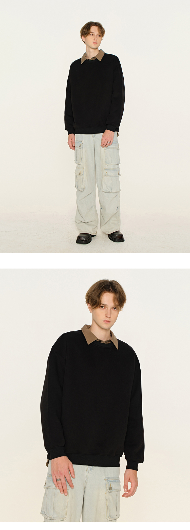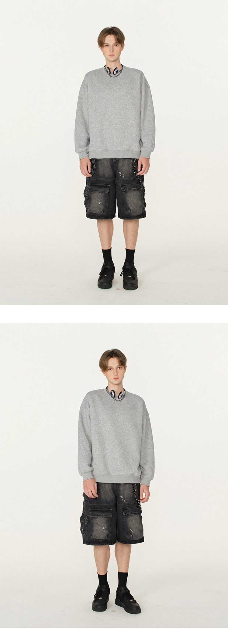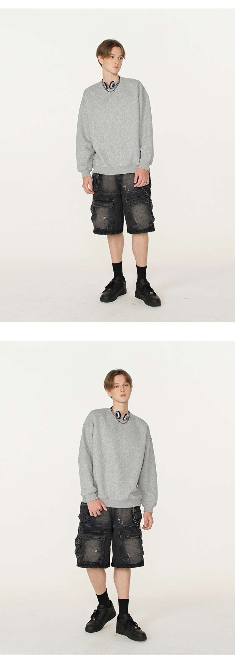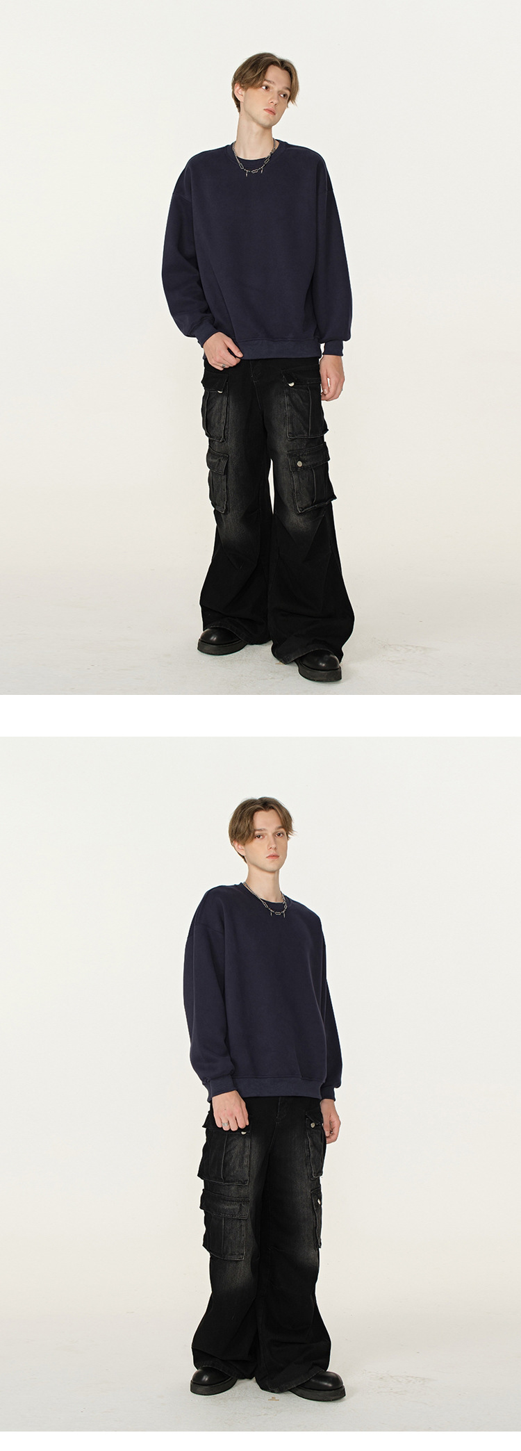 윤엔 아메리칸 레트로 라운드넥 스웨트셔츠 남녀공용 봄 가을 트렌디 만능 풀오버 단색 캐주얼 자켓스토어 가기