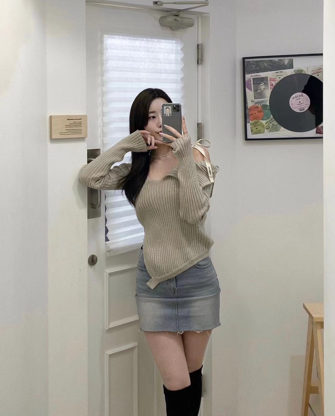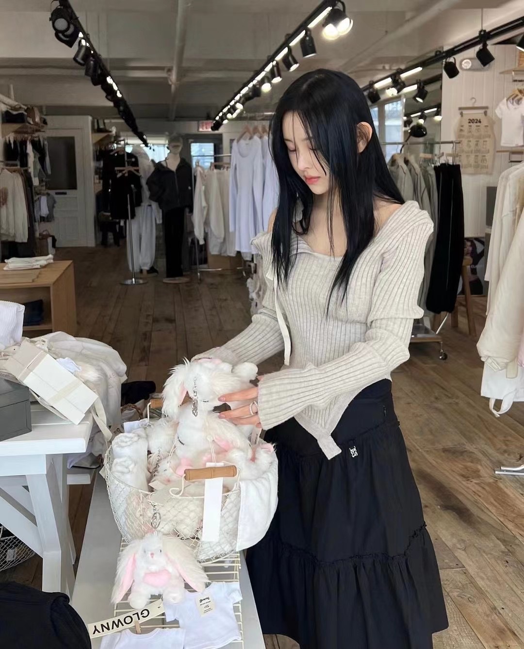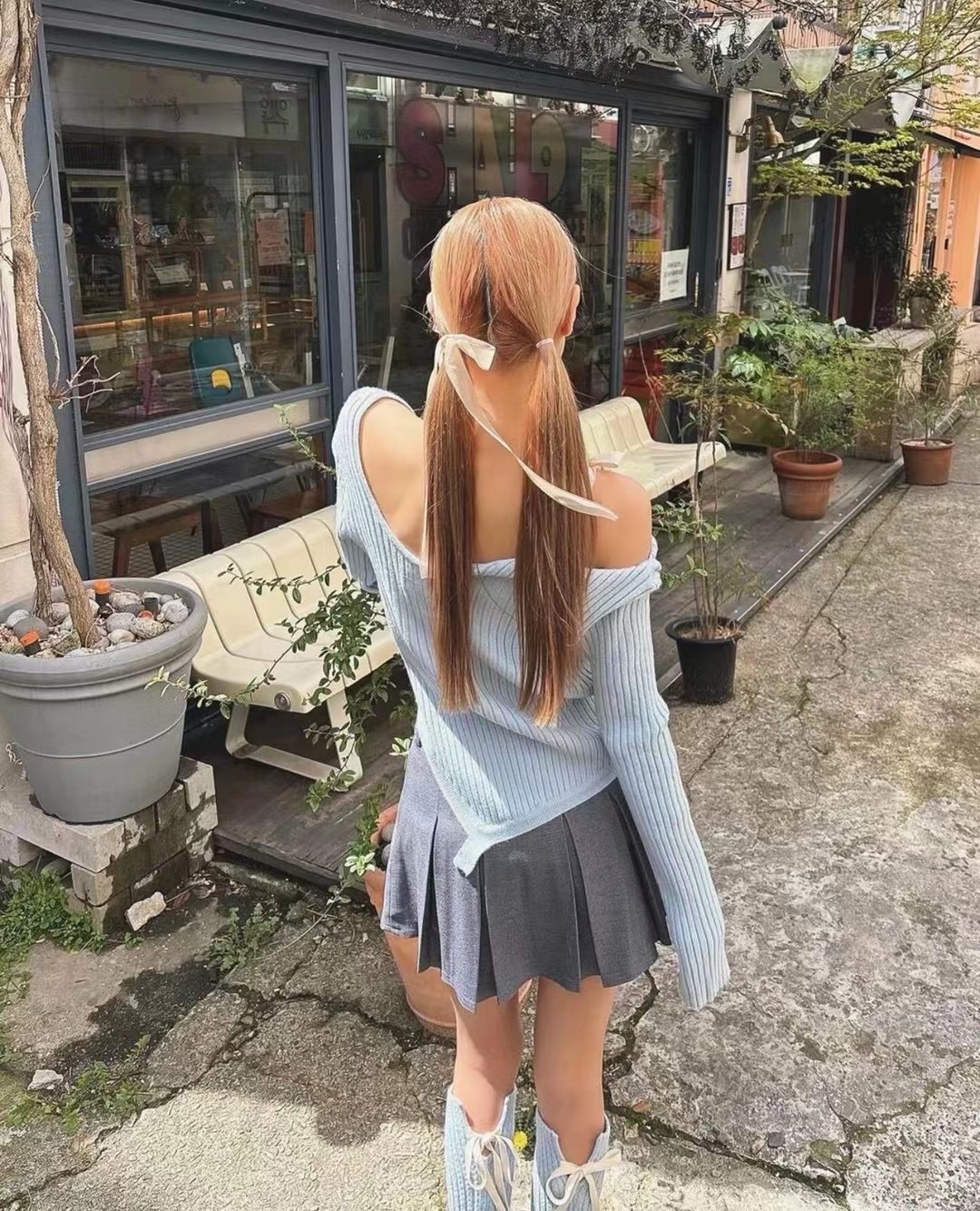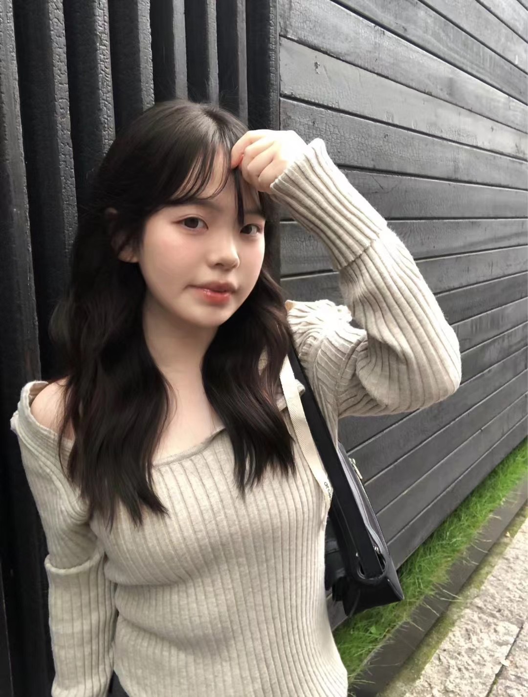 Zhao Meiyian의 한국 틈새 Glowny 오프 숄더 레이스 업 비대칭 스웨터 여성용 긴팔 스웨터 탑스토어 가기