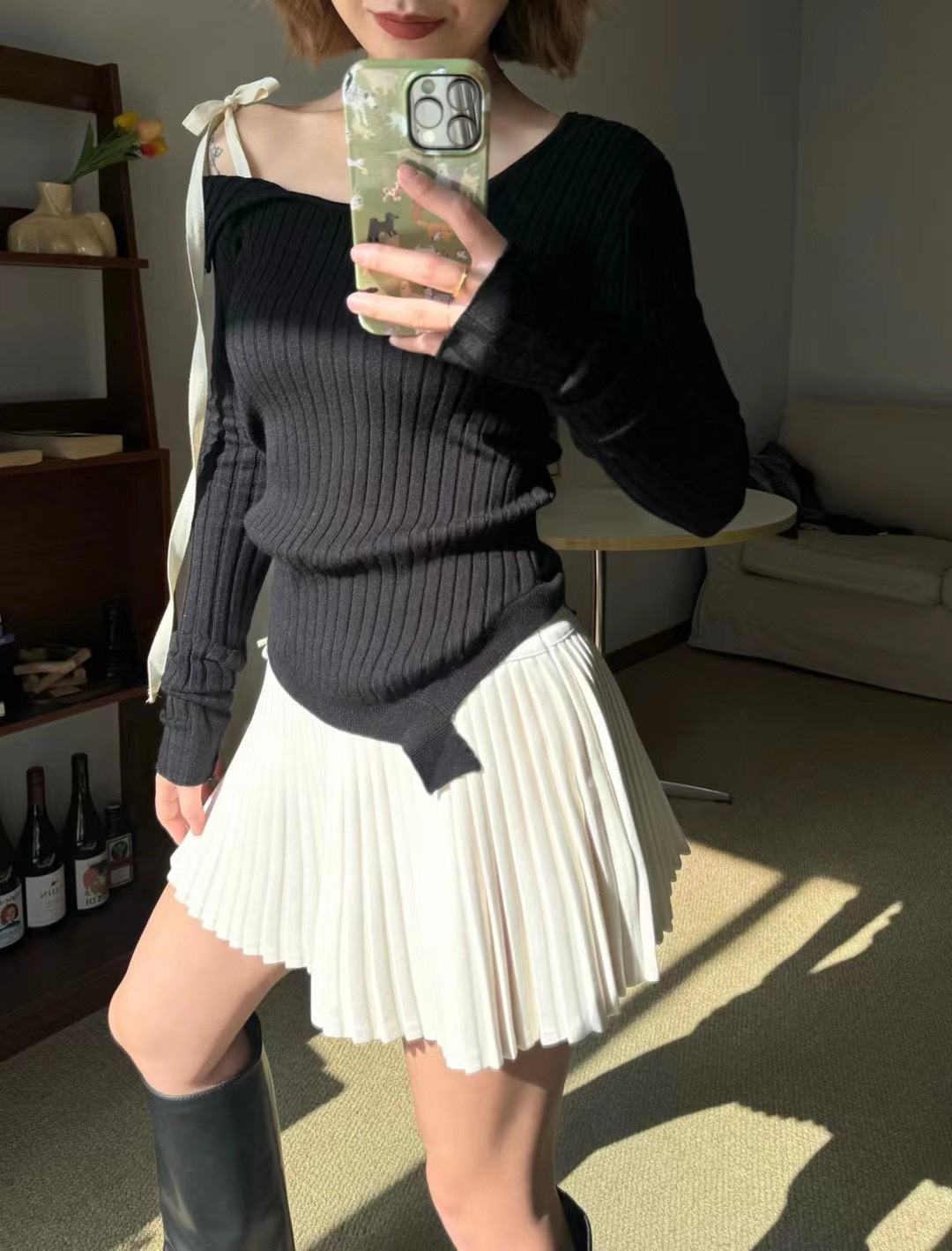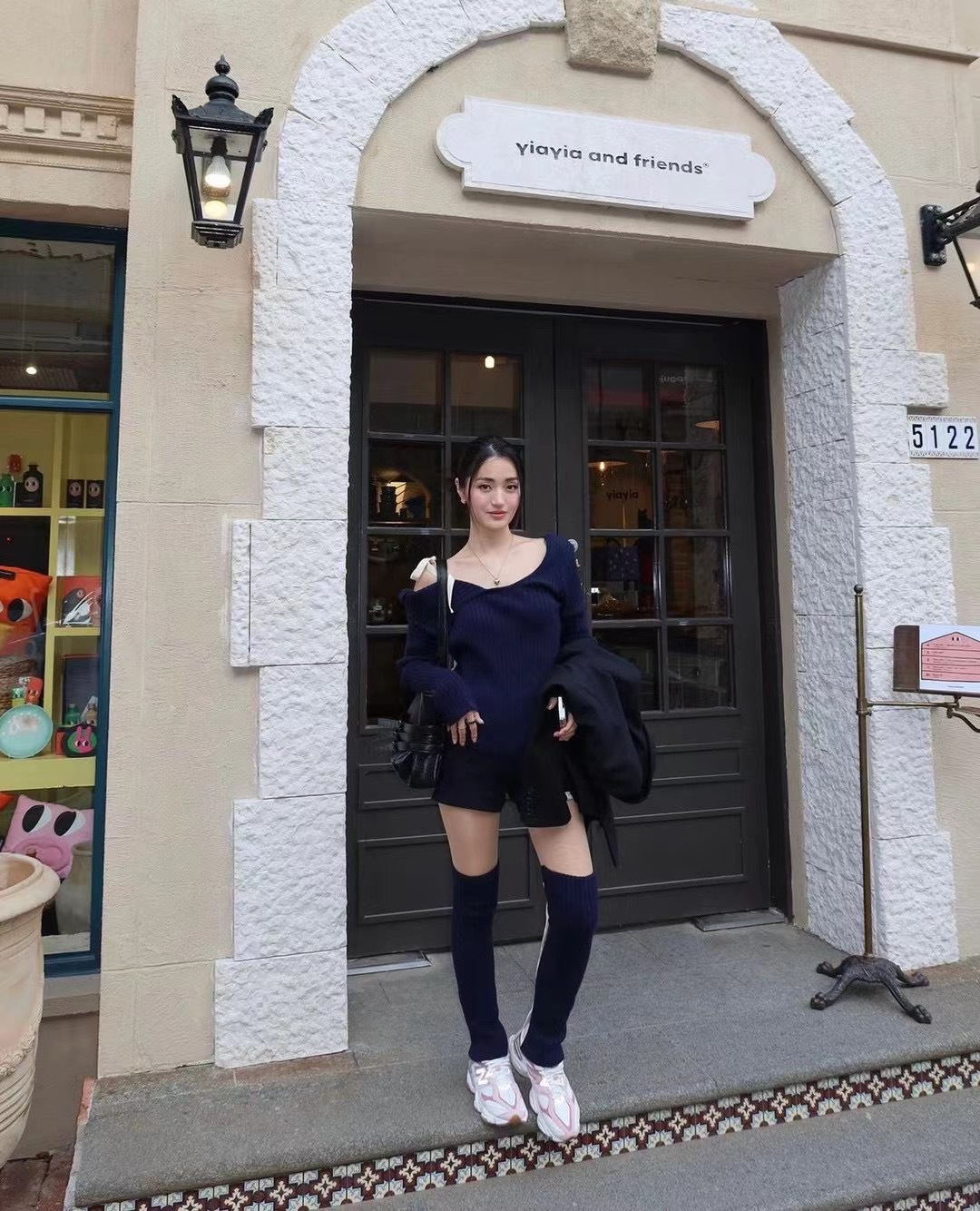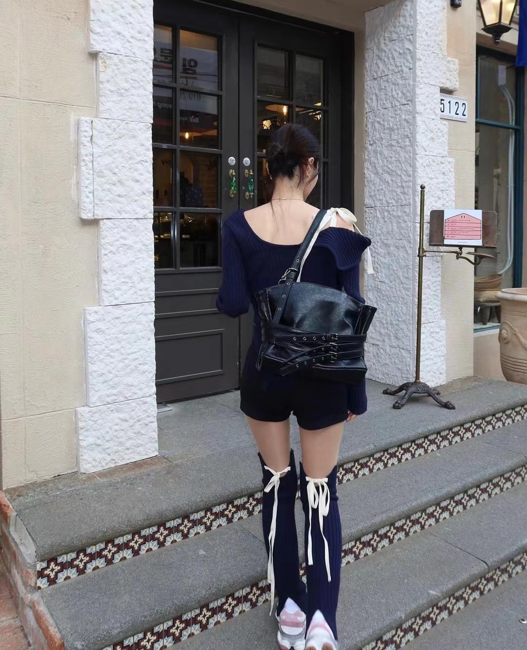 Zhao Meiyian의 한국 틈새 Glowny 오프 숄더 레이스 업 비대칭 스웨터 여성용 긴팔 스웨터 탑스토어 가기