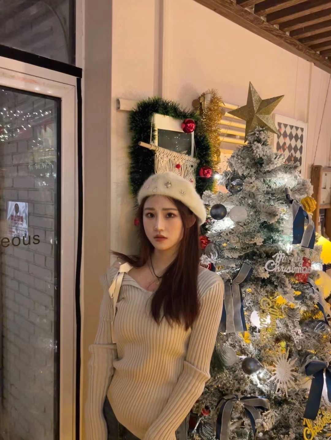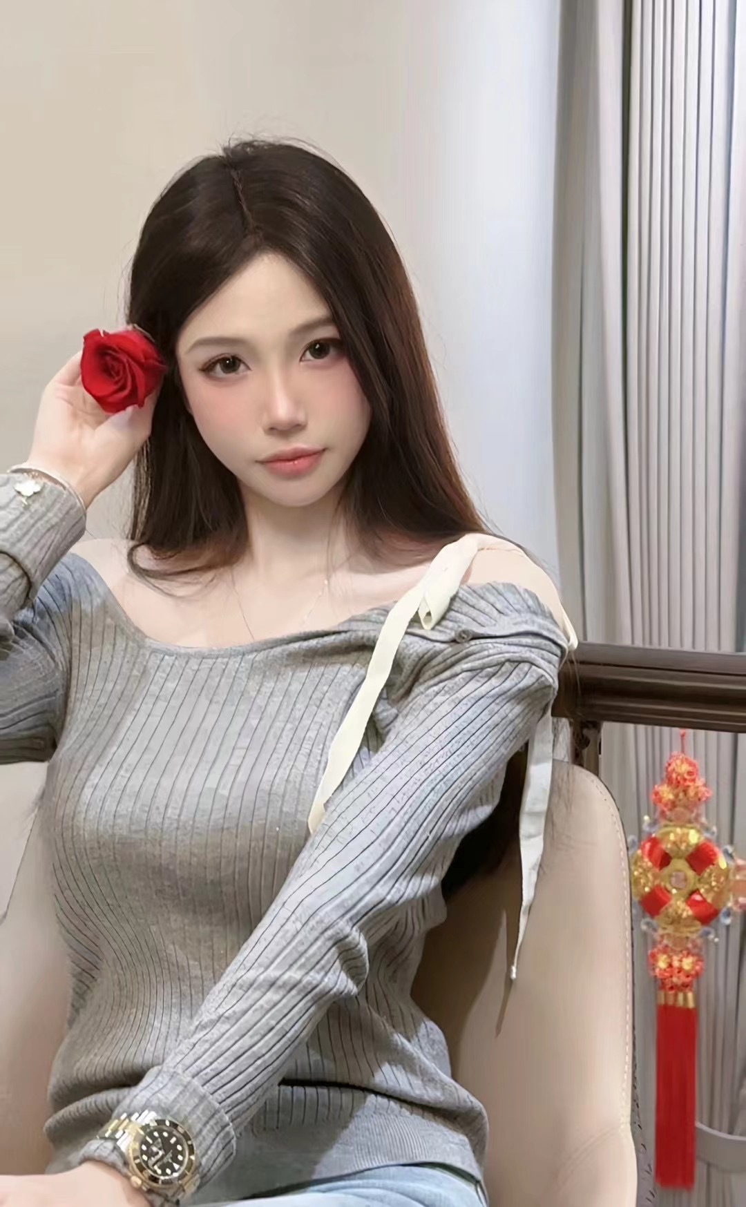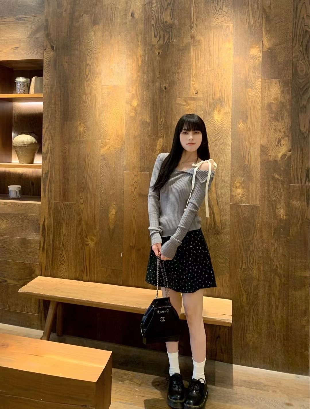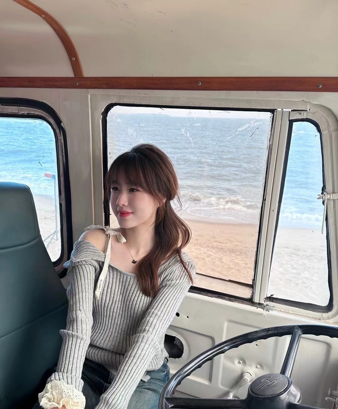 Zhao Meiyian의 한국 틈새 Glowny 오프 숄더 레이스 업 비대칭 스웨터 여성용 긴팔 스웨터 탑스토어 가기