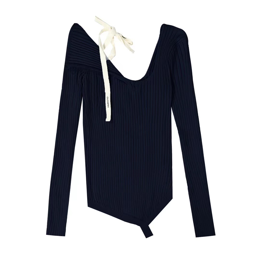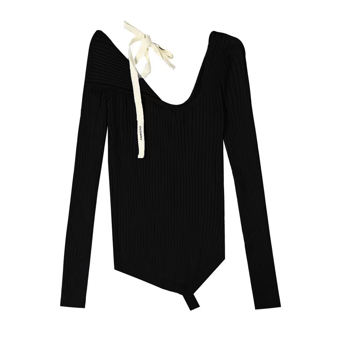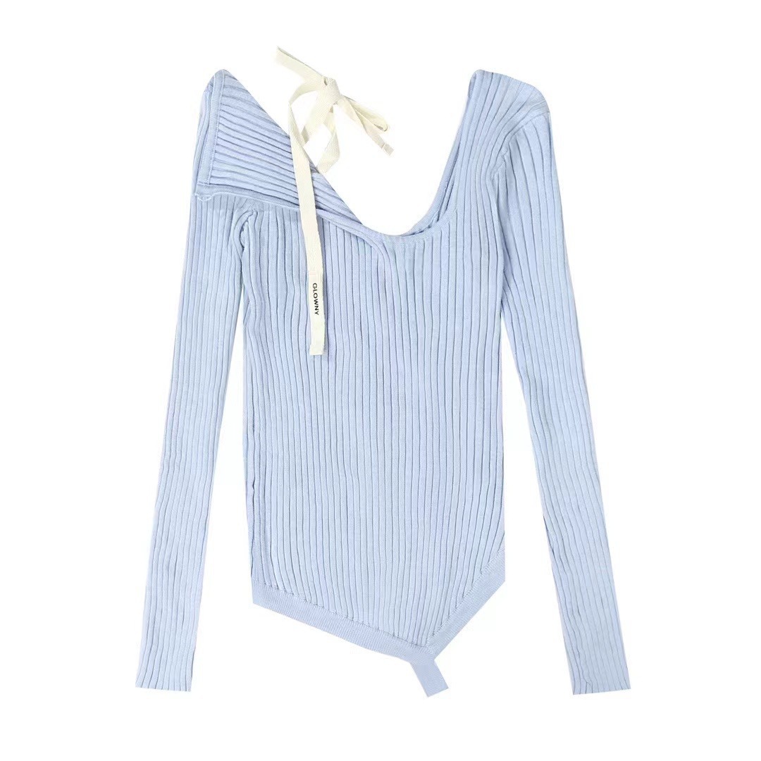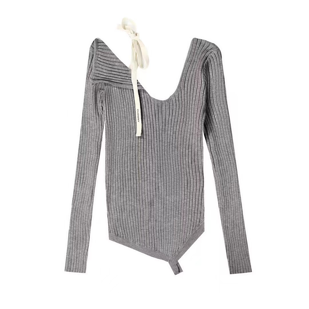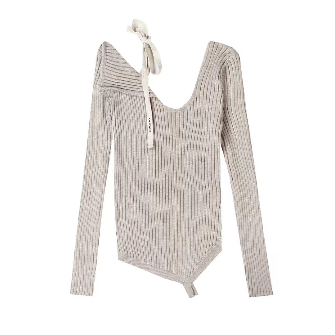Zhao Meiyian의 한국 틈새 Glowny 오프 숄더 레이스 업 비대칭 스웨터 여성용 긴팔 스웨터 탑