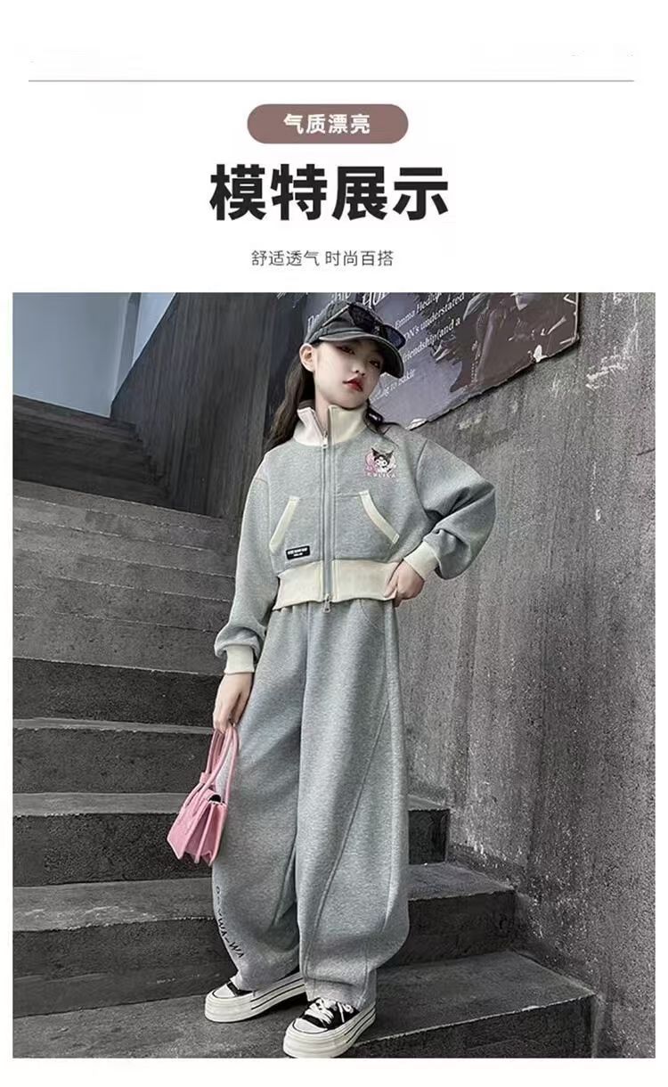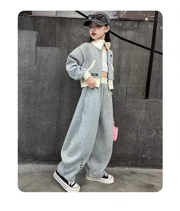 소녀의 봄 세트 어린이 스포츠 세트 2024 새로운 유행 서양식 베이비 팩 그물 연예인 프라이드 스트리트 2 피스 세트