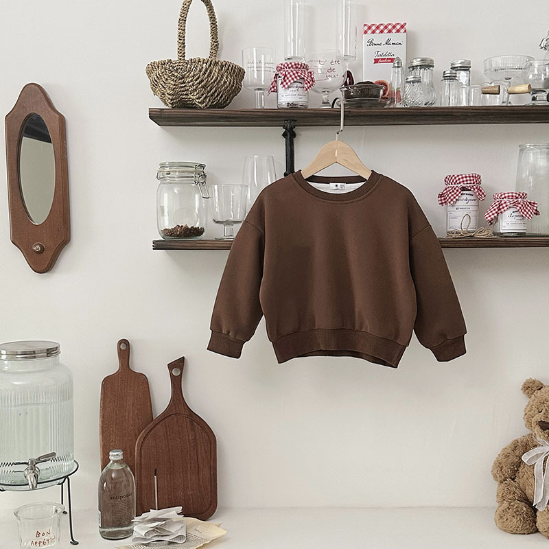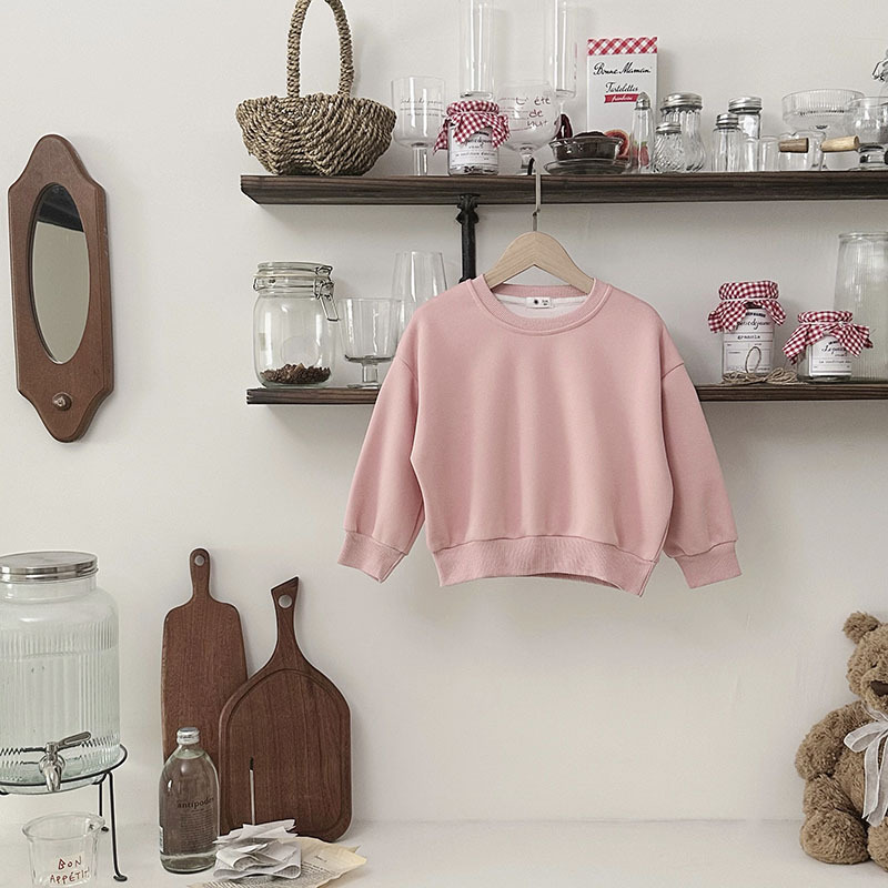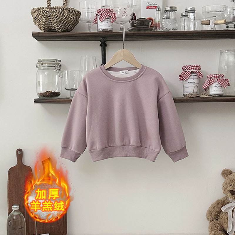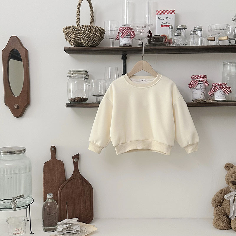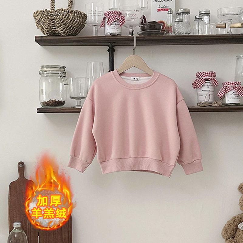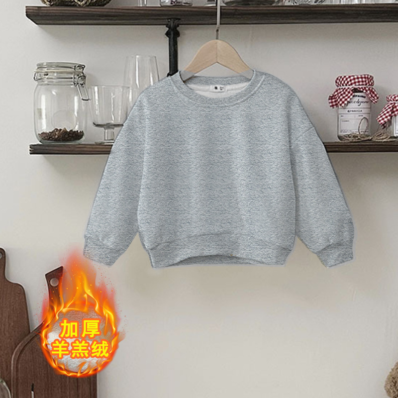 여자 라운드 넥 스웨터 코튼 봄 2025 새로운 소년 솔리드 컬러 아동 의류 탑 화이트 아동 가을 의류 대외 무역스토어 가기